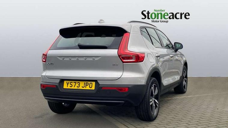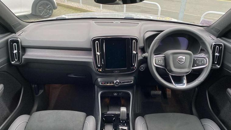 12.3" Progressive Driver Display, 360 degree surround view parking camera with side proximity sensors, 9" centre console portrait touch screen, Adjustable steering wheel force, Bluetooth hands free telephone kit, Cruise control, E-call, Front park assist, Google automatic services - Nav with google maps, apple carplay/android auto, voice recognition with google assistant, Hands free power tailgate, Lane keep assist with driver alert control, Oncoming Lane Mitigation, Rear park assist, Speed limiter, Speed sensitive steering, Wireless/Inductive Mobile Phone Charging, Dynamic chassis, DAB Digital radio, High performance sound, 8 speakers/250W, front USB and 2 rear type C USB, Steering wheel mounted remote controls, Adaptive brake lights with high level LED brake lights, Auto dimming feature for exterior door mirrors, Auto dimming interior mirror, Automatic headlamp levelling, Automatic LED Headlights + Active high beam incorporating daytime running lights, Front aluminium tread plates, Front and rear electric windows, High gloss black front and rear skid plate, High gloss black mesh front grille with high gloss black surround, High gloss black window trim, Home safe and approach lighting, Integrated roof rails in high gloss black, LED front fog lights, Puddle lights, Rain sensor with automatic windscreen wiper activation, Rear side wing doors, Rear wiper, Roof antenna, Roof spoiler, Visible VIN plate, 12V socket in front tunnel console and luggage compartment, 2-Zone electronic climate control with CleanZone air quality system and pollen filter, 3 seat bench in 2nd row, 3 Spoke tailored steering wheel with chrome trim, 60/40 versatile split folding rear seat, A-pillar parking ticket holder, Centre console cupholders and storage, Flexible load floor and grocery bag holder, Floor mats, Front door pocket, front cupholder, ambient front door, rear reading, rear courtesy, instrument panel and tailgate lighting, Front footwell illumination, Front headrests, Front reading light and theatre lighting, Front seat cushion extensions, Front tunnel pocket, Glovebox bag hook, Heated front seats, Height adjustable passenger seat, Height/reach adjustable steering column, High gloss centre tunnel deco, Illuminated glovebox, Illuminated luggage compartment, Illuminated vanity mirrors, Integrated waste bin, Isofix attachments on outer rear seats, Load protection net, Multi directional lumbar support, Power driver seat with memory + exterior mirrors memory, Rear armrest / integral cup holders / storage tray, Rear headrests, Single front passenger seat, Underfloor cargo storage, Climate pack without heated front seats - XC40, 3x3 point rear seatbelts, City safety with steering support with Pedestrian + cyclist + front collision warning with full auto brake and rear auto brake, Drivers knee airbag, Dual stage driver/passenger airbags, Electronic parking brake with auto hold, First aid kit, Front and outer rear seatbelt reminder and pretensioners, Front seats SIPS airbags, Hill descent control, Hill start assist, Inflatable curtain, Passenger airbag cut-off device, Power child locks on rear doors, Road sign information display, Run off Road Mitigation, Run off Road Protection, SIPS (Side Impact Protection System), Slippery road and hazard light alert, Stability and Traction Control with Spin control, Engine Drag Control and Corner Traction Control, Tyre pressure monitoring system, Vehicle deceleration control with Anti-lock Brake System, Electronic Brake Distribution and Emergency Brake Assist, Warning triangle, WHIPS whiplash protection system - front, Anti-theft alarm including immobiliser/volume sensor + level sensor, Key integrated remote control central locking + fuel flap with deadlocking system and auto open/close power windows, Keyless drive includes keyless entry and keyless start, Locking wheel nuts,