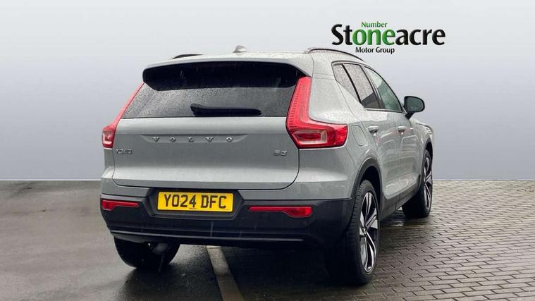 12.3" Progressive Driver Display, 360 degree surround view parking camera with side proximity sensors, 9" centre console portrait touch screen, Adjustable steering wheel force, Apple carplay (wired), Bluetooth handsfree system, Driver alert control, Driver assistance (pilot assist and adaptive cruise control), Driver awareness - Blind spot information system with steer assist, cross traffic alert with autobrake and rear collision warning and mitigation, E-call, Google automotive services - Enabled entertainment apps, navigation with google maps, voice recognition with google assistant, Hands free power tailgate, Intelligent speed assistance, Lane keeping aid, Oncoming Lane Mitigation, Speed sensitive steering, Volvo cars services with app - Driving journal, emergency and breakdown call, engine remote start, remote door locking/unlocking and vehicle dashboard, Wireless/Inductive Mobile Phone Charging, Automatic transmission with start/stop and manual change functions, Dynamic chassis, DAB Digital radio, Premium Sound by Harman Kardon, Dolby Pro Logic II Surround Sound, Dirac Unison, 12 speakers/600W and subwoofer, Steering wheel mounted remote controls, Active bending pixel LED headlights with adaptive shadow technology, Active high beam incorporating daytime running lights, Adaptive brake lights with high level LED brake lights, Auto dimming feature for exterior door mirrors, Auto dimming interior mirror, Automatic headlamp levelling, Dark tinted windows - rear side windows and rear screen, Front aluminium tread plates, Front and rear electric windows, Headlight cleaning system, High gloss black front and rear skid plate, High gloss black front bumper deco, High gloss black mesh front grille with high gloss black surround, High gloss black window trim, Home safe and approach lighting, Integrated roof rails in high gloss black, LED front fog lights with cornering function, Power glass tilt and slide panoramic sunroof with sun curtain, Puddle lights, Rain sensor with automatic windscreen wiper activation, Rear side wing doors, Rear wiper, Roof antenna, Roof spoiler, Visible VIN plate, 12V socket in front tunnel console and luggage compartment, 2-Zone electronic climate control with CleanZone air quality system and pollen filter, 3 seat bench in 2nd row, 3 Spoke tailored steering wheel with chrome trim, 60/40 versatile split folding rear seat, A-pillar parking ticket holder, Centre console cupholders and storage, Flexible load floor and grocery bag holder, Floor mats, Front cabin courtesy lights, Front door pocket, front cupholder, ambient front door, rear reading, rear courtesy, instrument panel and tailgate lighting, Front footwell illumination, Front headrests, Front reading lights, Front seat cushion extensions, Front side step illumination (under door), Glovebox bag hook, Heated front seats, Height/reach adjustable steering column, High gloss centre tunnel deco, Illuminated glovebox, Illuminated luggage compartment, Illuminated vanity mirrors + ticket holder, Integrated waste bin, Isofix attachments on outer rear seats, Load cover, Load protection net, Multi directional lumbar support for driver and passenger seat, Power driver seat with memory + exterior mirrors memory, Power folding rear headrests, Power passenger seat, Rear armrest with cupholders, Single front passenger seat, Underfloor cargo storage, Climate pack without heated front seats - XC40, 3x3 point rear seatbelts, City safety with steering support with Pedestrian + cyclist + front collision warning with full auto brake and rear auto brake, Driver and passenger airbags, Drivers knee airbag, Electronic parking brake with auto hold, First aid kit, Front and outer rear seatbelt reminder and pretensioners, Front seats SIPS airbags, Hill descent control, Hill start assist, Inflatable curtain, Passenger airbag cut-off device, Power child locks on rear doors, Road sign information display, Run off Road Protection, SIPS (Side Impact Protection System), Slippery road and hazard light alert, Stability and Traction Control with Spin control, Engine Drag Control and Corner Traction Control, Tyre pressure monitoring system, Vehicle deceleration control with Anti-lock Brake System, Electronic Brake Distribution and Emergency Brake Assist, Warning triangle, WHIPS whiplash protection system - front, 2 x Key integrated remote control central locking including with deadlocking system and auto open/close windows and sunroof, Anti-theft alarm including immobiliser/volume sensor + level sensor, Keyless drive includes keyless entry and keyless start, Locking wheel nuts,