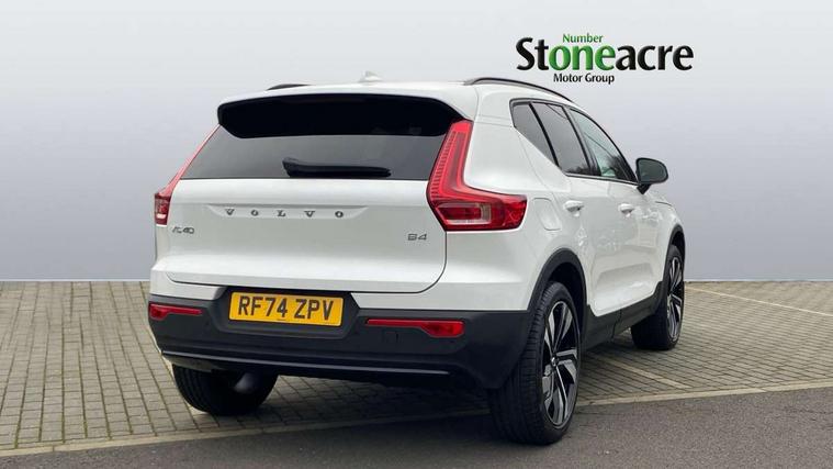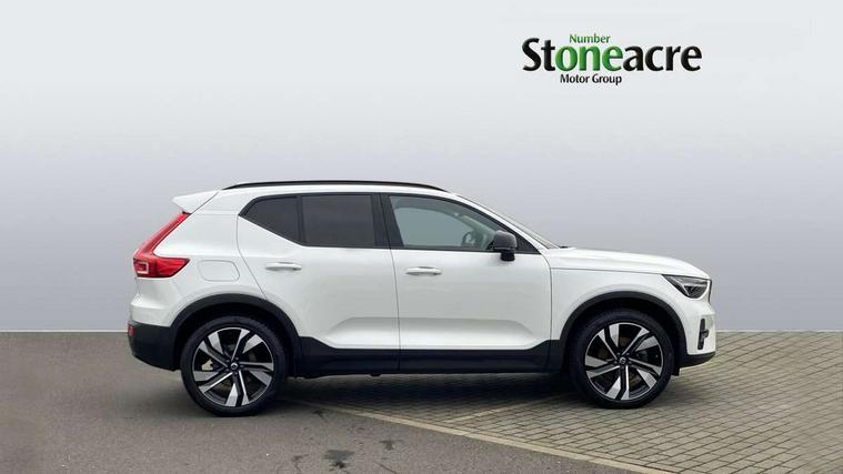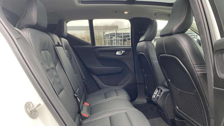12.3" Progressive Driver Display, 360 degree surround view parking camera with side proximity sensors, 9" centre console portrait touch screen, Adjustable steering wheel force, Android auto (Wired), Apple carplay (wired), Bluetooth handsfree system, Driver alert control, Driver assistance (pilot assist and adaptive cruise control), Driver awareness - Blind spot information system with steer assist, cross traffic alert with autobrake and rear collision warning and mitigation, E-call, Front park assist, Google automotive services - Enabled entertainment apps, navigation with google maps, voice recognition with google assistant, Hands free power tailgate, Intelligent speed assistance, Lane keeping aid, Oncoming Lane Mitigation, Rear park assist, Speed sensitive steering, Volvo cars services with app - Driving journal, emergency and breakdown call, engine remote start, remote door locking/unlocking and vehicle dashboard, Wireless/Inductive Mobile Phone Charging, Automatic transmission with start/stop and manual change functions, Dynamic chassis, DAB Digital radio, Premium Sound by Harman Kardon, Dolby Pro Logic II Surround Sound, Dirac Unison, 12 speakers/600W and subwoofer, Steering wheel mounted remote controls, Active bending pixel LED headlights with adaptive shadow technology, Active high beam incorporating daytime running lights, Adaptive brake lights with high level LED brake lights, Auto dimming feature for exterior door mirrors, Auto dimming interior mirror, Automatic headlamp levelling, Dark tinted windows - rear side windows and rear screen, Front aluminium tread plates, Front and rear electric windows, Headlight cleaning system, High gloss black front and rear skid plate, High gloss black front bumper deco, High gloss black mesh front grille with high gloss black surround, High gloss black window trim, Home safe and approach lighting, Integrated roof rails in high gloss black, LED front fog lights with cornering function, Power glass tilt and slide panoramic sunroof with sun curtain, Puddle lights, Rain sensor with automatic windscreen wiper activation, Rear side wing doors, Rear wiper, Roof antenna, Roof spoiler, Visible VIN plate, 12V socket in front tunnel console and luggage compartment, 2-Zone electronic climate control with CleanZone air quality system and pollen filter, 3 seat bench in 2nd row, 3 Spoke tailored steering wheel with chrome trim, 60/40 versatile split folding rear seat, Centre console cupholders and storage, Flexible load floor and grocery bag holder, Floor mats, Front cabin courtesy lights, Front door pocket, front cupholder, ambient front door, rear reading, rear courtesy, instrument panel and tailgate lighting, Front footwell illumination, Front headrests, Front reading lights, Front seat cushion extensions, Front side step illumination (under door), Glovebox bag hook, Heated front seats, Height/reach adjustable steering column, High gloss centre tunnel deco, Illuminated glovebox, Illuminated luggage compartment, Illuminated vanity mirrors + ticket holder, Integrated waste bin, Isofix attachments on outer rear seats, Load cover, Load protection net, Multi directional lumbar support for driver and passenger seat, Power driver seat with memory + exterior mirrors memory, Power folding rear headrests, Power passenger seat, Rear armrest with cupholders, Single front passenger seat, Underfloor cargo storage, Climate pack without heated front seats - XC40, 3x3 point rear seatbelts, City safety with steering support with Pedestrian + cyclist + front collision warning with full auto brake and rear auto brake, Driver and passenger airbags, Drivers knee airbag, Electronic parking brake with auto hold, First aid kit, Front and outer rear seatbelt reminder and pretensioners, Front seats SIPS airbags, Hill descent control, Hill start assist, Inflatable curtain, Passenger airbag cut-off device, Power child locks on rear doors, Road sign information display, Run off Road Protection, SIPS (Side Impact Protection System), Slippery road and hazard light alert, Stability and Traction Control with Spin control, Engine Drag Control and Corner Traction Control, Tyre pressure monitoring system, Vehicle deceleration control with Anti-lock Brake System, Electronic Brake Distribution and Emergency Brake Assist, Warning triangle, WHIPS whiplash protection system - front, 2 x Key integrated remote control central locking including with deadlocking system and auto open/close windows and sunroof, Anti-theft alarm including immobiliser/volume sensor + level sensor, Keyless drive includes keyless entry and keyless start, Locking wheel nuts,
