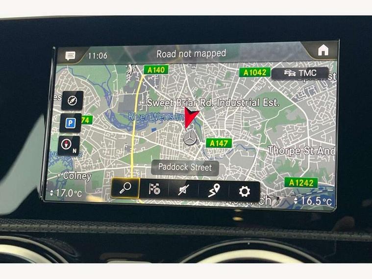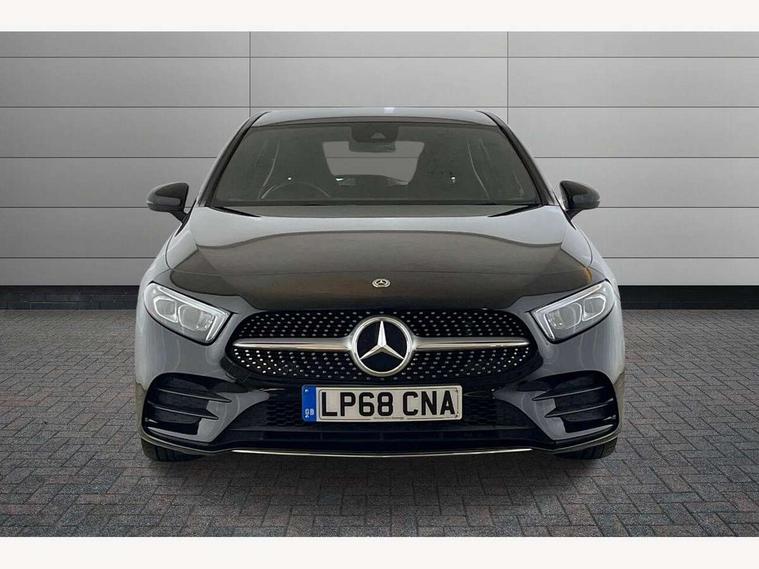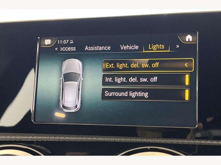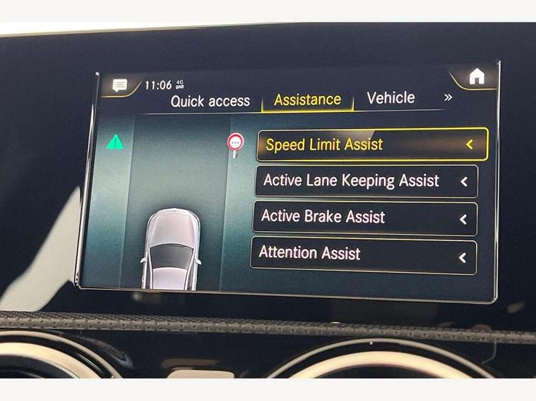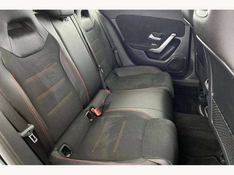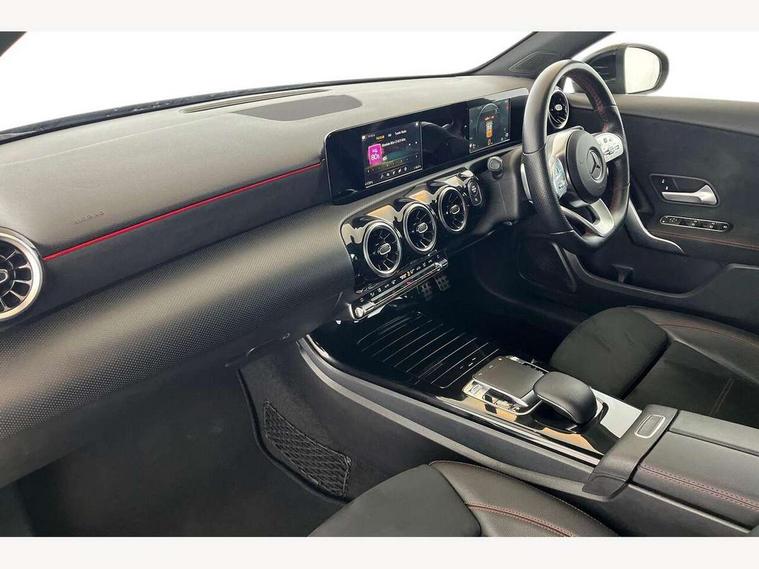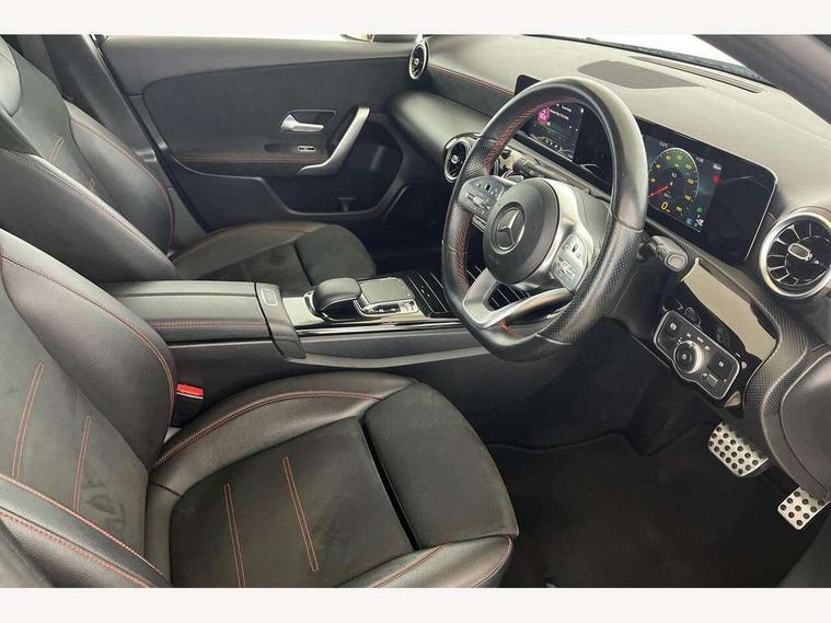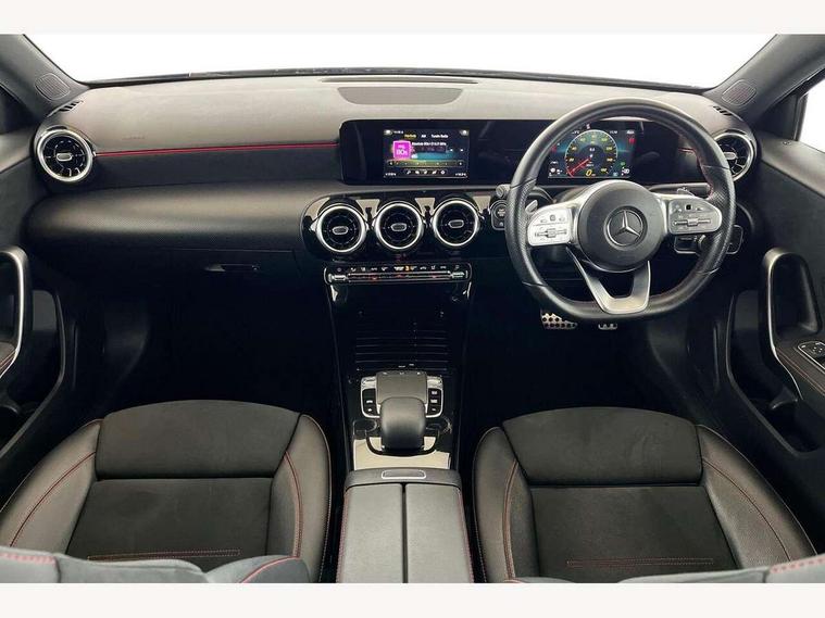 180 degree rear view camera with parking guidelines, 7" colour screen in instrument panel, 7" touchscreen media display, Active lane keep assist, Attention assist, Brake pad wear indicator warning light, Cruise control + speed limiter, Direct steering, Direction indicators with lane change function, DYNAMIC SELECT with a choice of driving modes (ECO, Comfort, Sport, Sport+ and Individual), Fluid level warning indicator for fuel, oil, coolant and washer fluid, Hard-disk navigation, Lamp failure indicator, Mercedes me connect including emergency call system, accident recovery, breakdown and maintenance management, Outside temperature gauge, Radio aerial integrated into roof spoiler, Service indicator (ASSYST), Speed sensitive power steering, Stop/start system, Trip computer, Voice activation, Lowered comfort suspension, DAB Digital radio, Dual bluetooth interface, 2 USB ports (type C), MBUX multimedia system with DAB digital radio and touchpad including satellite navigation, Adaptive brake lights, AMG front, rear apron and side skirts, Blue tinted glass, Body colour bumpers, Body colour door handles, Body colour side skirt, Body coloured door mirrors, Chrome beltline trim, Diamond radiator grille with chrome pins and silver louvre + chrome insert, Electric adjustable and heated door mirrors with integrated LED side indicators, Electric front windows, Electric rear windows, Exhaust system - Twin trapezoidal tailpipes in polished stainless steel, Headlamp assist automatic headlamp activation, Heated glass rear windscreen + timer control, LED high performance headlamps with integrated LED daytime running lights, LED tail lamp, LED third brake light, Rain sensor windscreen wipers, Rear fog lights, Rear wiper, 12V socket, 3 Spoke flat bottom leather multi function steering wheel with perforated leather in grip area, 40:20:40 split folding rear seats, Air vents surround and cruciform nozzle in silver chrome, AMG floor mats with red stitching, Artico man-made leather/Microfibre Dinamica upholstery with red contrast stitching, Auto Mercedes-Benz child seat recognition sensor, Black roof lining, Brushed stainless steel sports pedals with rubber studs, Controller on centre console with chrome surround, Cup holder and stowage compartment lighting, Front centre armrest with storage compartment, Front door sills with Mercedes Benz lettering, Front doors with ambient and signal light, Front footwell lights, Front reading lamps, Front seat backs luggage nets, Front seat cushion length adjustment, Front signal exit lamp, Front vanity lights, Gearshift paddles on steering wheel, Handle recess/closing light, Height/reach adjustable steering column, Illuminated glovebox, ISOFIX Child seat top tethers and anchor fixings, Load securing rings in luggage compartment, Luggage compartment cover, Manual height adjustable front seats, Oddments tray lighting, Rear head restraints, Rear Reading Lamps, Seat occupancy sensor for front passenger seat, Sports seats with integrated headrests, Storage compartment under load area floor, Sunvisors with illuminated vanity mirrors, Touchpad, Touchpad illumination, Twin front cupholders, Two zone thermotronic luxury automatic climate control, Seat comfort pack - A Class, 3 rear 3 point seatbelts, ABS with Brake Assist, Active bonnet, Active brake assist includes forward collision warning system with autonomous braking, Adaptive brake assist with hold function and hill start assist, Black seatbelts, Brake calipers with Mercedes-Benz lettering + perforated brake discs, Childproof locks manually operated for rear doors and electrically operated for rear power windows, Crash responsive emergency lighting, Driver and passenger head and side airbags, Drivers knee airbag, Dual stage driver/passenger airbags, Electronic parking brake, ESP curve dynamic assist, ESP with ASR, Front and rear seatbelt reminder, Tyre pressure monitoring system, Warning triangle and first aid kit, Window airbags, Alarm system/interior protection/immobiliser, Keyless Go, Remote central locking and crash sensor with emergency opening function, 18" AMG 5 twin spoke light alloy wheels in titanium grey with highsheen finish, Tirefit sealant kit,