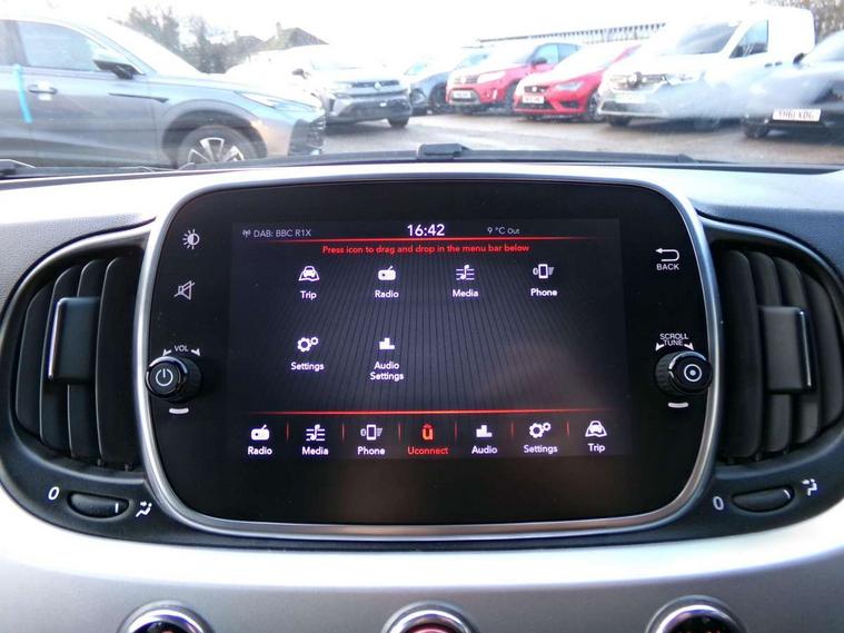 Adhesive skin for nest hub customized with 500 logo, Apple car play/Android Auto, Cruise control, E-call, External temperature gauge, Google nest hub with 7" smart display integrated with Google Assistant, digital portrait, smart home control, connected and controllable by voice, Google specific splash screen, Google welcome letter, Mopar connect services, Power assist steering, Rear parking sensor, Speed limiter, Stop/start system, Trip computer, 4 speakers, Rear speakers, 3rd brake light, Auto headlights, Body colour electric adjustable door mirrors with defrosting / external temperature sensor, Body colour sports bumpers, Chrome plated exterior door handles, Dusk and rain sensors, Electric front windows, Front fog lights, Google specific exterior details with B-Pillar Google themed decal and Hey Google logo on fender, Halogen headlamps, Heat insulated glass, Heated rear windows with wash wipe, LED daytime running lights, Rear wiper, 1 passenger grab handle, 2 seat bench in second row, 50/50 split folding rear seats with height adjustable rear headrests, Auxilliary 12V power socket, Black door panel, Black pillars cover colour, Black techno leather steering wheel with audio controls, Front headrests, Google bag, Google key cover customized with 500 logo, Google specific interiors unique fabric seats upholstery, Google themed centre inserts, Height adjustable drivers seat, Height adjustable steering wheel, Isofix child seat preparation, Radio unit bezel in black, Single front passenger seat, Sports kit with top rear spoiler, side skirts and chrome exhaust, 7 airbags - Driver, passenger, side, window and drivers knee airbags, ABS/EBD, ESC + ASR/MSR + HBA + Hill holder, Manual passenger airbag deactivation function, Traction control, Tyre pressure monitoring system, Automatic door locking, Immobiliser, Locking fuel filler cap, Remote central locking, Silver matt dashboard with 500 logo silver,