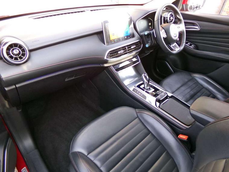 10.1" colour touchscreen, 12.3" Full digital driver information display, Adaptive cruise control, Android Auto, Apple CarPlay, Blind Spot Detection (BAS), Bluetooth connectivity, Driving modes, Emergency call service, Intelligent speed assist, Lane keep assist system (LAS) with Lane departure warning system (LDWS), PAS, Power tailgate, Rear cross traffic alert, Rear parking camera, Rear parking sensors, Satellite navigation system, Traffic jam assist, Trip computer, USB mobile phone charging function, 6 speaker audio system, DAB audio, Auto dimming rear view mirror, Automatic headlights, Body colour electric adjustable heated door mirrors, Electric folding door mirrors, Follow me home headlights, Front and rear aero wiper, Front and rear electric windows with one-touch up/down, Front fog lights, Intelligent high beam, LED Bi-Function headlights, LED centre brake light, LED daytime running lights, LED front and rear sequential indicators, Panoramic sky roof, Rain sensing wipers, Rear side wing doors, Silver roof rails, 12V power sockets, 2nd row 60/40 split fold seat, 2nd row seat with 2 stage incline adjustment, 3 rear headrests, 3 seat bench in 2nd row, 4 way electric adjustable passenger seat, 6 way electric adjustable drivers seat + lumbar support, Ambient lighting, Dual zone automatic air conditioning, Front centre sliding armrest with storage compartment, Front headrests, Heated front seats, Height and reach adjustable steering wheel, ISOFIX restraints on outer rear seats x2, Leather steering wheel, Metal sports pedals, Single passenger seat, Sports Style Front Seats with One-Piece Back, Steering wheel paddle shift, 3x3 point rear seatbelts, ABS/EBD, Active emergency braking with pedestrian/Bicycle detection, Anti rolling protection, Cornering brake control (CBC), Driver, passenger and 2nd row rear seat belt reminder, Dual front airbags, Electric parking brake with auto hold function, ESP, Front passenger airbag deactivation switch, Front seat belt height adjuster, Front seatbelts (3-point + pretensioner + load limiter), Front side airbags, Hill descent control, Hill launch assist, Manual rear child locks, Rear outer seatbelt pretensioner and load limiter, Side curtain airbags, Tyre pressure monitoring system, Alarm system and engine immobiliser, Keyless entry and push button start system, Remote central locking, Speed sensing door locks, 18" Hurricane diamond cut alloy wheels, Tyre repair kit,
