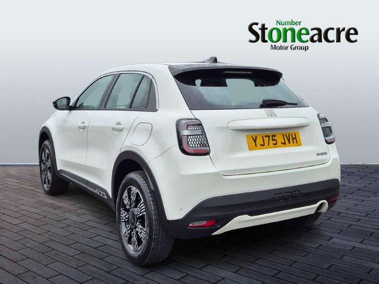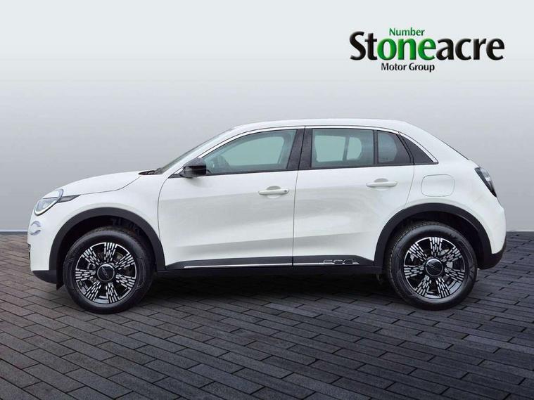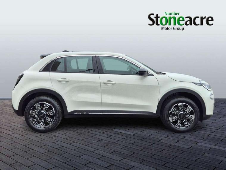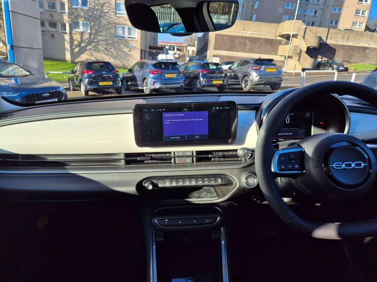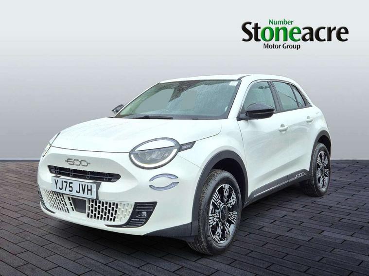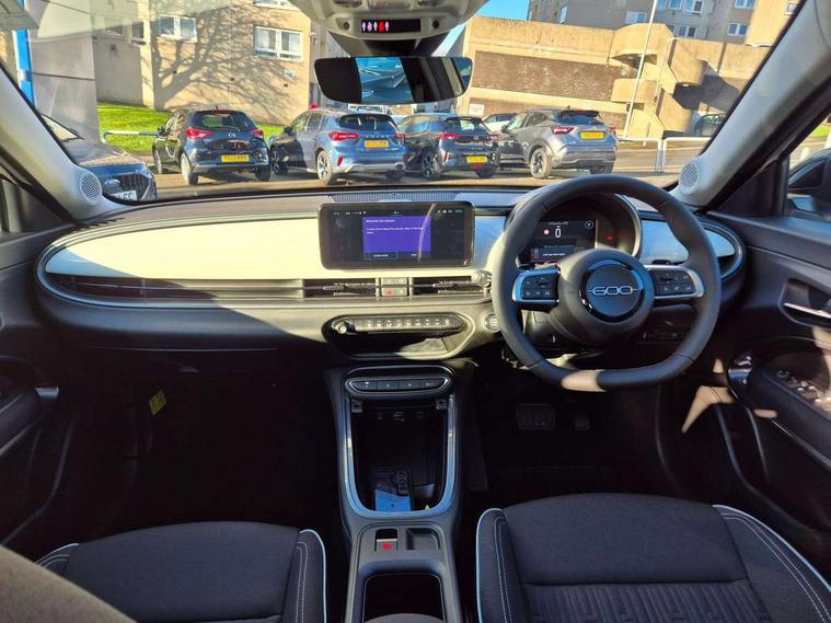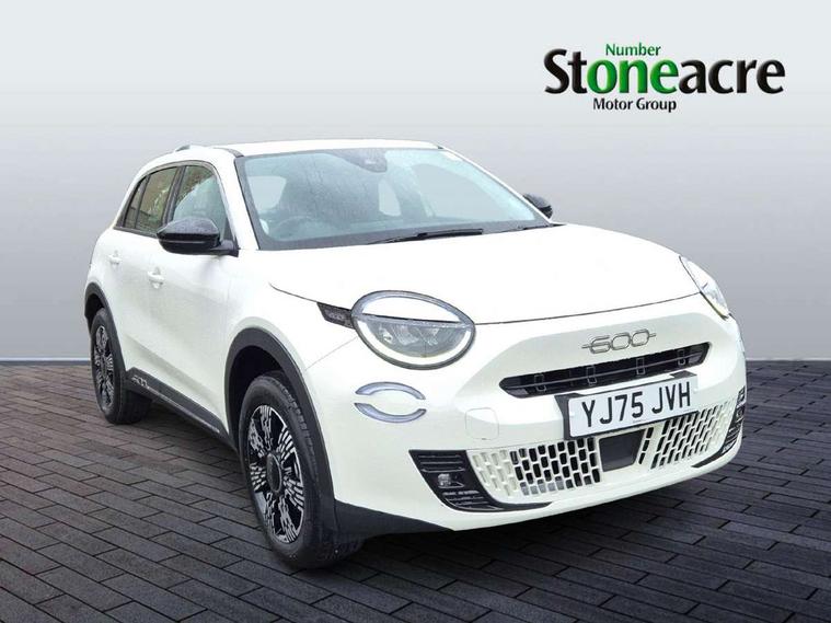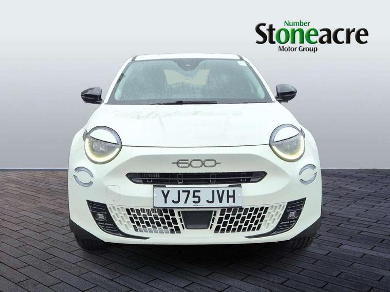 7" TFT digital cluster, Bluetooth connectivity, BSRF connectivity box, Connected services, Cruise control, Drowsy driver detection, Emergency E-call assist, Engine emission level default, GSR II step 1, Intelligent speed assist, Lane keeping assistant (LKA), Odometer, Power assist steering, Rain and dusk sensors, Rear parking sensors, Traffic sign recognition, Wireless apple car play/android Auto, Without drive mode selector, L2-AGM 12V battery, 1st Row USB type-A and USB type-C, 4 speaker audio system, Radio, Uconnect infotainment 10.25" touchscreen with DAB, All power windows express Up/Down, Auto dimming frameless rear view mirror, Automatic headlights, Body coloured door handles, Chrome day light openings, Electric adjustable door mirrors, Exterior chrome accents, Front and rear Chromed 600 logo, Gloss black finish B pillar, Gloss black shark fin antenna, Glossy black door mirrors, Heated windscreen wiper blade area, LED 3rd brake light, LED daytime running lights, LED Fog lamps with cornering function, LED front signature lighting, LED front turn indicators and position lights, LED rear lights, LED rear signature lighting, LED reflector headlamps, Matt black side skirts with 600 chromed logo, Rear bumper embossed 600 logo, Rear roof spoiler, Rear side wing doors, Rear wiper, 2 Spoke synthetic leather steering wheel with audio control, 3 rear headrests, 3 seat bench in 2nd row, 4 way manually adjustable passenger seat, 6 way manually adjustable drivers seat, Auxilliary 12V power socket, Body colour dashboard fascia, Chrome interior door handles, Dark metachrome dashboard ring, English handbook, Front centre armrest, Front headrests, Front passenger grab handle, Front seatback pockets, ISOFIX attachment on front passenger and rear passenger seats, Manual climate control, Metachrome central compartment bezel, Monogram fabric upholstery, Paddle shifts, Partial body cover for shipment, Predisposal for accessory upgrade to default tunnel pad cover (dedicated prnd bezel), Rear seat 40/60 split, Single front passenger seat, Smart 15L storage central tunnel with tunnel pad cover, Sunvisor label ciao Fiat, Sunvisors with vanity mirrors, 3x3 point rear seatbelts, 6 airbags, ABS, Autonomous Emergency Brake (AEB) & Vulnerable Road User (VRU) Protection, Child locks on rear doors, Electronic parking brake with auto hold, ESC (Electronic Stability Control), Front passenger airbag deactivation, Seatbelt reminder and pretensioners for all seats, Anti-theft volumetric alarm, Anti-theft wheel bolts, Keyless Go, 17" Diamond cut alloy wheels, Fix and go puncture repair kit,
