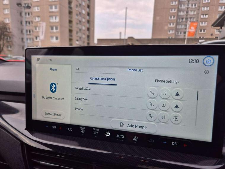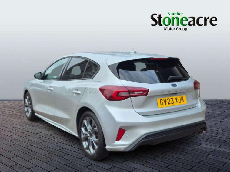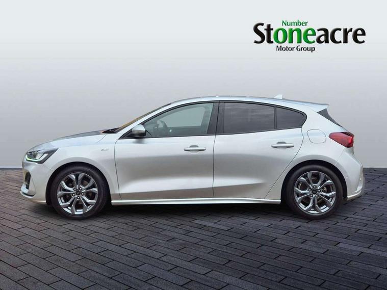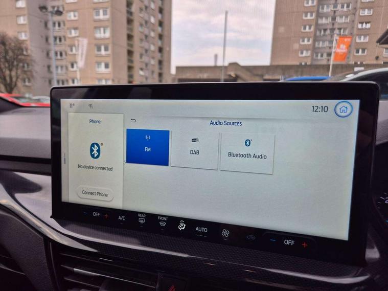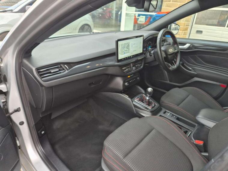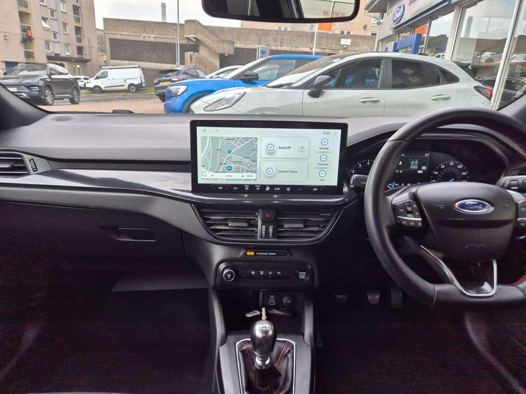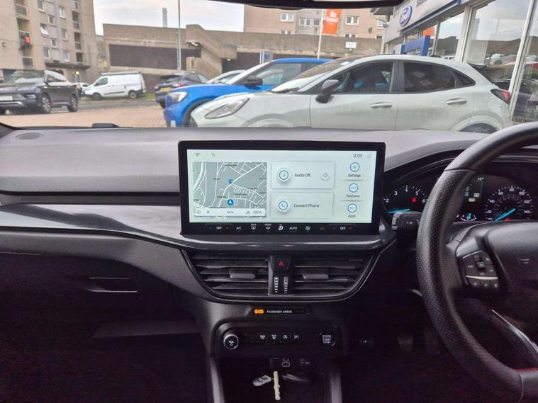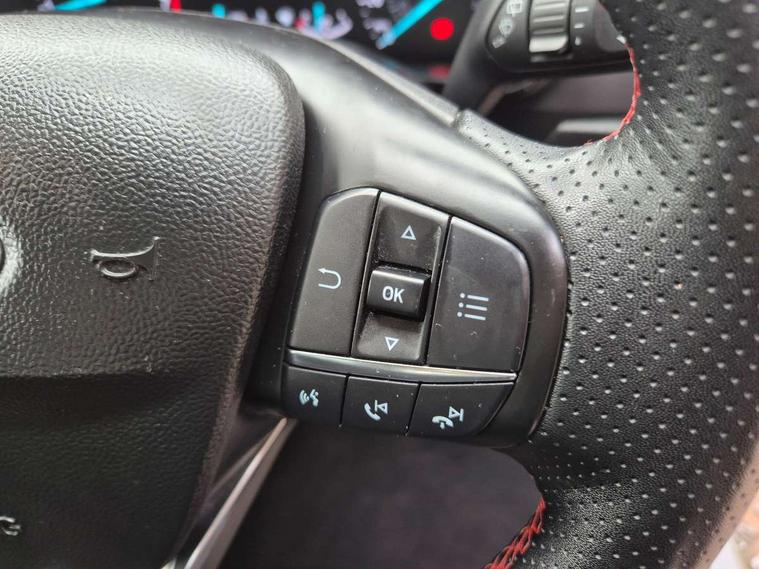 4.2" Colour TFT Ice blue illumination analogue cluster with trip computer, Bluetooth system, Digital clock, Easy fuel capless refuelling system, Eco mode, Ford SYNC 4 Navigation with 13.2'' touchscreen, DAB radio, Emergency Assistance, Apple Carplay & Android Auto, 6 speakers & FordPass Connect, Lane keeping system - lane keeping alert and lane keeping aid, PAS, Rev counter, Selectable drive mode, Service interval indicator, Sports tuned suspension, 2 USB ports, Auto headlamps (on/off), Body coloured door handles, Electrically operated front and rear windows with one touch opening and closing, Electrically operated heated power fold door mirrors with puddle lamp with side indicators, Front variable intermittent wipers with electric wash, Full fixed LED headlamps, Heated rear window, LED daytime running lamp, LED rear lamps, LED third brake light, Polished twin tailpipe, Privacy glass, Quickclear heated windscreen, Rain sensor, Rear side wing doors, Tailgate wash/wipe, Unique ST-Line grille, full bodystyling kit, and large body coloured rear spoiler, 3 rear headrests, 3 seat bench in 2nd row, Cloth upholstery, Dual zone electronic air temperature control, Height adjustable front headrests, Isofix child seat preparation, Reach + rake adjustable steering column, Single front passenger seat, 3x3 point rear seatbelts, ABS+Electronic Brake force Distribution, Auto hold function, Driver airbag, EDL traction control, Electronic parking brake, Electronic stability control, Front and rear seatbelt reminder, Front inertia reel height adjustable seatbelts with pre-tensioners, Front passenger airbag, Front side airbags, Passenger airbag deactivate switch, Post collision braking, Pre collision assist with autonomous emergency braking and pedestrian/cyclist detection, Remote/power child rear door locks, Side curtain airbags, Three rear inertia reel lap/diagonal seatbelts, Tyre pressure monitoring system, Keyless entry and keyless start, MyKey system, Remote central locking & engine immobiliser, Thatcham alarm with power door dead locks, 17" 5 spoke Rock mettalic finish alloy wheels with mini spare wheel,