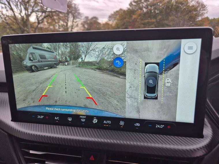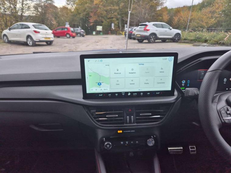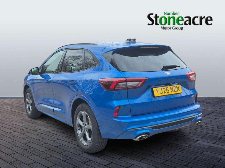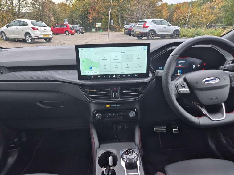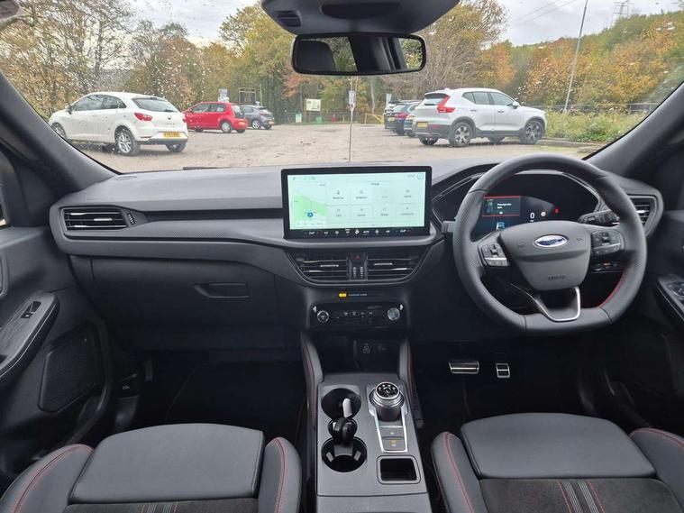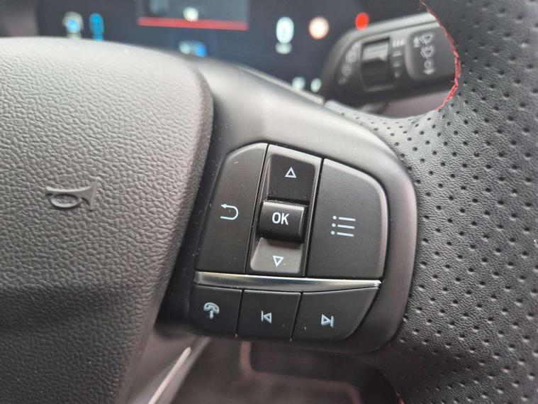 12.3" digital colour instrument cluster, 360 degree camera, e-Call (emergency call), Ford easy fuel, Ford SYNC 4 Navigation with 13" touchscreen, DAB radio, emergency assistance, Andriod Auto/Apple CarPlay, 5G modem & Ford Pass connect, Front and rear parking sensors, Hands free power tailgate, Lane centering assist, Lane keeping aid with lane departure warning, Power assist steering, Selectable drive modes, Service interval indicator, Sports suspension, Twist beam rear suspension, B&O premium audio system with 10 speakers, subwoofer and 2 USB ports, Auto headlamps with high and low beam, Black roof rails, Body colour bumpers, Front LED fog lamps, Large rear spoiler, LED daytime running lights, LED rear lights, Pop out door edge protectors, Power front/rear windows with global close, Power heated folding door mirrors with puddle lights, memory function and camera, Quickclear heated windscreen, Rain sensing wipers, Rear privacy glass, Rear side wing doors, Rear wiper, ST-Line body styling kit, Third brake light, 12 way ergonomic power adjust driver's seat with memory (AGR certified), 12 way ergonomic power adjust passenger seat (AGR certified), 2nd row sliding seats, Electronic automatic temperature control (EATC), Front and rear head restraints, Partial premium touch sensico upholstery, Rear centre head restraint, Single front passenger seat, Sports seats, Driver assistance pack with intelligent adaptive cruise control - Kuga FHEV/PHEV, 3x3 point rear seatbelts, Airbags - front driver/passenger, front and rear curtain, Drivers knee airbag, Dynamic brake support, Electronic stability control (ESC) and ABS, Evasive steering assist, Ford MyKey Gen 2 safety system, Manual child proof rear door locks, Pre collision assist with autonomous emergency braking, Rear seat Occupancy alert, Red brake calipers, Tyre pressure monitoring system, Engine immobiliser, Keyless entry and Ford power start button (Keyless start), Locking wheel nuts, Remote powered central double locking doors, Thatcham category 1 alarm,