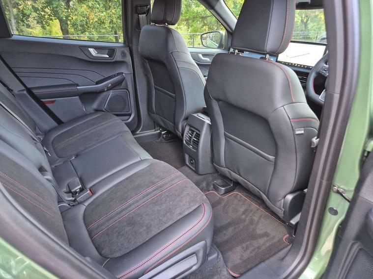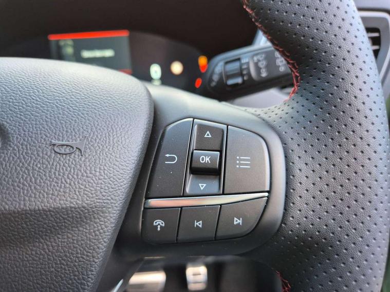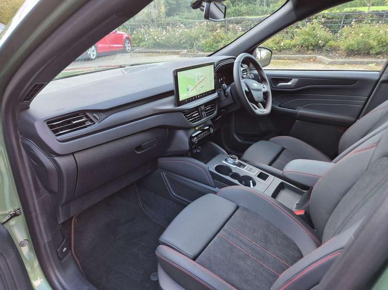 12.3" digital colour instrument cluster, 360 degree camera, Clear exit assist, Cross traffic alert with active braking, e-Call (emergency call), Ford easy fuel, Ford SYNC 4 Navigation with 13" touchscreen, DAB radio, emergency assistance, Andriod Auto/Apple CarPlay, 5G modem & Ford Pass connect, Front and rear parking sensors, Hands free power tailgate, Lane centering assist, Lane keeping aid with lane departure warning, Power assist steering, Selectable drive modes, Service interval indicator, Sports suspension, B&O premium audio system with 10 speakers, subwoofer and 2 USB ports, Auto headlamps with high and low beam, Black roof rails, Body colour bumpers, Front LED fog lamps, Large rear spoiler, LED daytime running lights, LED rear lights, LED third brake light, Pop out door edge protectors, Power front/rear windows with global close, Power heated folding door mirrors with puddle lights, memory function and camera, Quickclear heated windscreen, Rain sensing wipers, Rear privacy glass, Rear side wing doors, Rear wiper, ST-Line body styling kit, 2nd row sliding seats, Electronic automatic temperature control (EATC), Front and rear head restraints, Partial premium touch sensico upholstery, Rear centre head restraint, Single front passenger seat, Sports seats, Driver assistance pack - Kuga Auto, 3x3 point rear seatbelts, Airbags - front driver/passenger, front and rear curtain, Drivers knee airbag, Dynamic brake support, Electronic stability control (ESC) and ABS, Evasive steering assist, Ford MyKey Gen 2 safety system, Manual child proof rear door locks, Pre collision assist with autonomous emergency braking, Rear seat Occupancy alert, Red brake calipers, Tyre pressure monitoring system, Engine immobiliser, Keyless entry and Ford power start button (Keyless start), Locking wheel nuts, Remote powered central double locking doors, Thatcham category 1 alarm,