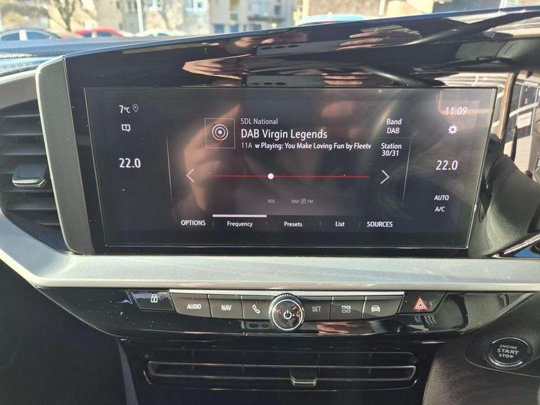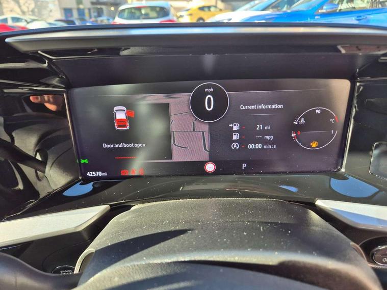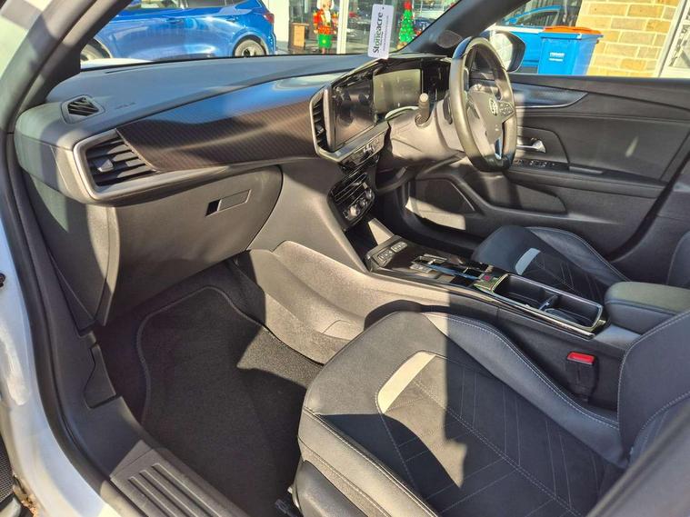 12" digital instrument cluster, Adaptive cruise control with speed limiter, Advanced Park Assist, Digital instrumentation with digital speedometer, rev counter, fuel and water temperature gauge, Driver drowsiness alert system, Driver information display with multi function trip computer, audio info, digital clock and outside air temperature with ice warning function, Engine start/stop button, EV information display, Extended traffic sign recognition, Front and rear parking distance sensors, Front camera and radar system, Lane keep assist system (LAS) with Lane departure warning system (LDWS), Lane positioning assist, Lights on audible warning, Panoramic rear view camera, Power assisted speed sensitive steering, RDS with traffic programme, Side blind spot alert and flank guard, Smartphone integration compatible with Apple CarPlay and Android Auto, Sports switch with engine sound enhancement, Start/stop system, Vauxhall connect with e-Call, Wireless charging for smartphone, 8 speed automatic transmission, 6 speakers, AM/FM stereo radio with 36 station presets, DAB Digital radio, Flexible Roof Mounted Radio Aerial, Front USB connection, Mobile phone portal - bluetooth connect, vehicle microphone, handsfree calls, SMS read out and reply, phone book access, Multimedia Navi Pro with 10" colour touchscreen, Steering wheel mounted controls, Two rear USB sockets, Adaptive brake lights, Automatic headlamp levelling, Automatic lighting control with tunnel detection, Automatically dimming anti dazzle rear view mirror, Black door mirror housings, Black front and rear bumper inserts, Black Griffin logo and vizor frame, Black upper window moulding, Body colour door handles, Body colour front and rear bumpers, Dark tinted rear side windows + tailgate window, Electric adjustable/heated/folding door mirrors + puddle lights, Electrically operated front and rear windows with safety auto reverse and one touch up/down facility, Hazard warning lights, Heated rear window+rear wash/wipe, High beam assist with anti glare, Integrated black tailgate spoiler, IntelliLux Matrix LED headlights with adaptive forward lighting, LED 3rd brake light, LED daytime running lights, LED front fog lamps, LED side repeat indicators, LED tail lights, Rear foglight, Rear side wing doors, Reversing light, Solar heat absorbing windscreen and windows, Two speed rain-sensitive windscreen wipers with variable intermittent wipe, Windscreen and side window demist vents, 12V Accessory socket, 3 seat bench in 2nd row, 3 spoke flat bottomed leather steering wheel with satin chrome bezel, 4 speed fan with illuminated controls, 6 way manual adjustable driver fore/aft, up/down with reclining seatback, 6 way manual adjustable front passenger fore/aft, up/down with reclining seatback, 60/40 split folding rear seat, Air recirculation system, Alcantara/leather upholstery, Alloy sports pedals, Black headliner, Cabin particulate filter - removes dust, airborne particles and pollen, Centre console with two cup holders at front and one in rear, Chrome effect interior door handles, Door pockets with two litre capacity, Driver and passenger sun visors with vanity mirror, Driver seat lumbar support and massage function, Electronic climate control (ECC), Four adjustable facia vents, Four load restraint lashing eyes, Front centre armrest with storage, Front head restraints, Front map reading lights, Front seat back storage pockets, Fully carpeted load area, Heated front seats, Heated steering wheel, Interior courtesy light, Interior tailgate handle, Luggage compartment cover, Luggage compartment lighting, Movable boot floor, Reach + rake adjustable steering column, Single front passenger seat, Steering wheel mounted paddle shift, Three height adjustable rear seat head restraints, Twin gas assisted tailgate struts, Black Pack with badge - Mokka, 2x Isofix child seat fitting on outer rear seats, 3x3 point rear seat belts, Anti-lock braking system (ABS), Child proof locks on rear doors, Cornering brake control, Deactivation switch for front passenger front and side impact airbags, Drag torque control, Driver and front passenger airbags, front seat side impact airbags, full size curtain airbags, Electronic brake force distribution, Electronic Stability Programme (ESP), Emergency brake assist, Enhanced automatic emergency braking with pedestrian detection, Forward collision alert at all speed, Hill start assist, Inertia reel lap and diagonal seatbelts for all seats, Seatbelt unfastened audible warning and warning light, Straight line stability control, Traction control, Tyre pressure monitoring system, Electronically protected audio equipment, Engine deadlock immobiliser, Freewheeling door locks, Key left in ignition audible warning, Keyless entry and start, Locking wheel nuts, Remote control central locking, Remote control ultrasonic security alarm system, Visible vehicle identification number, Atlantis black trim inserts of front doors, Black facia with silver trim insert, Instrument panel bar in polar silver, 18" bi colour alloy wheels,