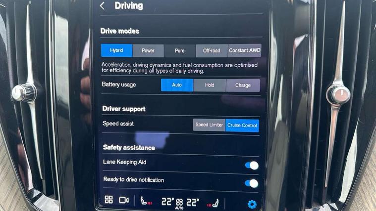 12.3" Progressive Driver Display, 9" centre console touch screen, Adjustable steering wheel force, Bluetooth handsfree system, Drive mode settings, Driver alert control with lane keeping aid, Emergency services call system, Front and rear park assist, Google Automotive Services, Oncoming Lane Mitigation, Power tailgate, Rear park assist camera, Service interval indicator, Speed limiter, Speed sensitive steering, Trip computer, Volvo on call with App, Wireless/Inductive Mobile Phone Charging, 3.7 kW monophase on board charger, 7m 10amp Charge Cable with 3 Pin Plug and 7m 1-Phase 16amp Type 2 / Mode 3 Charge Cable, 8 speed automatic transmission with start/stop + manual change functions, Dynamic chassis, Electric rear axle drive, Recharging port located in nearside front wing, DAB Digital radio, Fresh air subwoofer, High performance sound, connected service booking, 2x USB Type A in front and 2x USB Type C in rear, 10 speakers/220W output, Low speed exterior sound speaker, Steering wheel remote infotainment controls, Adaptive brake lights with high level LED brake lights, Auto dimming interior + exterior mirrors, Automatic headlight levelling system, Automatic LED Headlights + Active high beam incorporating daytime running lights, Chrome front and rear bumper decoratives, Chrome lower side moulding trim with Recharge logo, Chrome window surround, Colour co-ordinated door mirrors, Electric adjustable/heated/auto power folding door mirrors, Electric front+rear windows, High gloss black grille with chrome inserts, Home safe and approach lighting, Integrated roof rails in Chrome, Power glass tilt and slide panoramic sunroof with sun curtain, Rain sensor with automatic windscreen wiper activation, Rear side wing doors, Rear wiper, Roof antenna, Roof spoiler, Tinted windscreen, Visible VIN plate, 12V socket in front tunnel console and luggage compartment, 2 zone electronic climate control with Clean zone air quality system and pollen filter, 3 seat bench in 2nd row, A-pillar parking ticket holder, B Pillar ventilation, Blond headlining, Bright metal luggage threshold, Centre console cupholders and storage, Charcoal floor mats, Front and rear courtesy lights, Front cupholder illumination, Front footwell illumination, Front reading lights, Glovebox compartment with illumination, Head restraints for all seats, Heated front seats, Height/reach adjustable steering column, Illuminated luggage compartment, Illuminated vanity mirrors + ticket holder, ISOFIX attachment on outer rear seats, Leather upholstery, Load cover, Load protection net, Power passenger seat with lumbar support, Rear armrest with cupholder, Rear seat concealed storage, Recharge aluminium tread plates, Single front passenger seat, Synthetic leather sport gear knob, Underfloor stowage compartment, Versatile split folding rear seat - 60/40, 5 three point seatbelts, City safety with steering support with Pedestrian + cyclist + large animal detection + front collision warning with full auto brake, Drivers knee airbag, Dual stage driver/passenger airbags, Electronic parking brake with auto hold, First aid kit, Front seats SIPS airbags, Hill descent control - Off-road drive mode, Hill start assist, IC (Inflatable Curtains) - Full Length, Passenger airbag cut-off device, Power child locks on rear doors, Road sign information display, Run off Road Mitigation, Run off Road Protection, Seatbelt reminder and pretensioners, SIPS (Side Impact Protection System), Slippery road and hazard light alert, Stability and Traction Control with Spin control, Engine Drag Control and Corner Traction Control, Tyre pressure monitoring system, Vehicle deceleration control with Anti-lock Brake System, Electronic Brake Distribution and Emergency Brake Assist, Warning triangle, WHIPS whiplash protection system - front, Anti-theft alarm including immobiliser/volume sensor + level sensor, Care key with user defined top speed, Key integrated remote control central locking + fuel flap with deadlocking system and auto open/close power windows, Keyless start, Locking wheel nuts, Private locking for tailgate, Tyre sealant kit + 12v compressor,