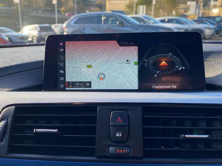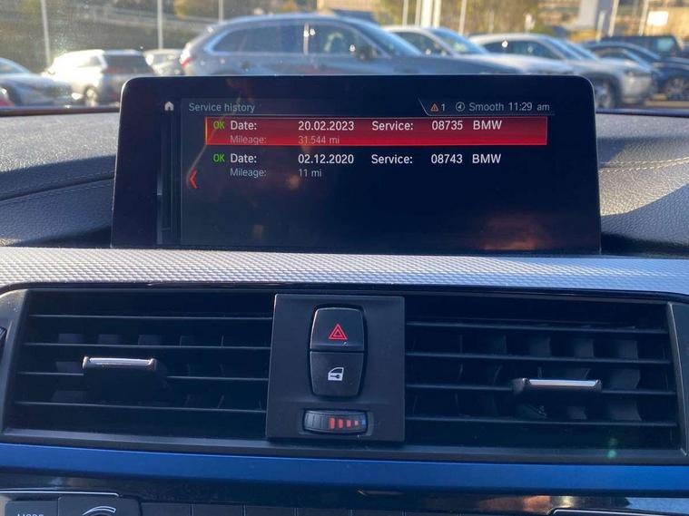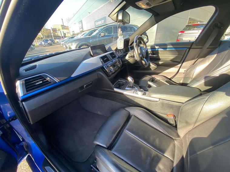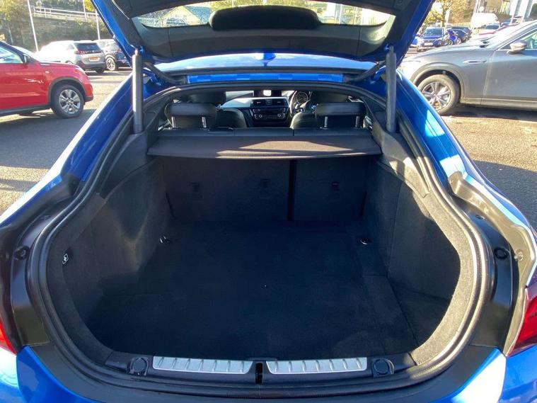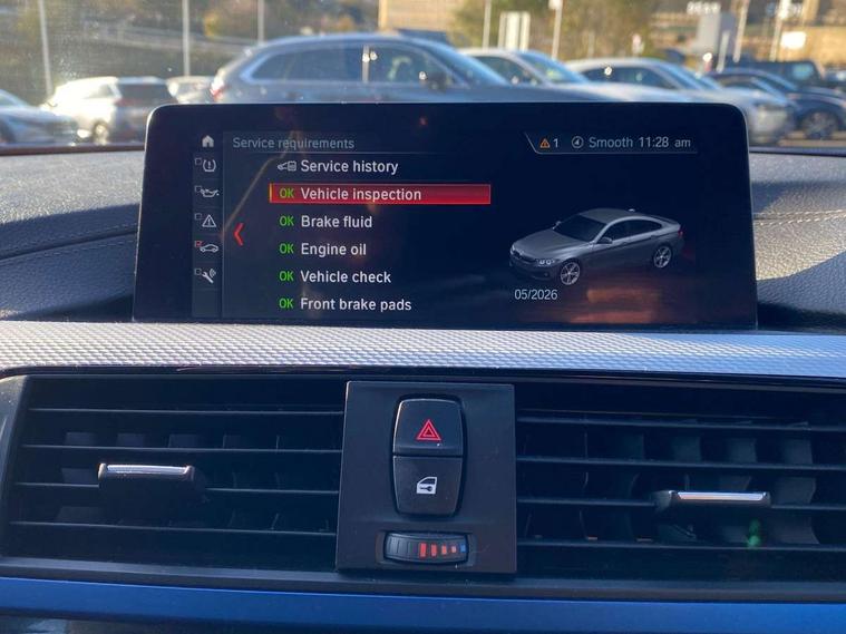 Auto start-stop, Automatic tailgate operation, BMW Online services, BMW remote services, BMW Teleservices, Brake pad wear indicator in front and rear, Check Control warning system for monitoring of lights and door/luggage compartment open warning, Condition based service, Control display - 6.5" colour display screen, Front/rear park distance control (PDC), iDrive Controller with 8 favourite buttons, Instrument cluster with speedometer with mph readout, tachometer, fuel gauge and oil temperature gauge, Lights on warning by audio warning signal when ignition is switched off, M Sport instrument cluster, Oil sensor for level and grade, warning by check control system, On board computer - average speed, fuel consumption, outside temp display with acoustic warning, clock/date, service interval, odometer/trip meter, Optimum shift indicator, Personal Profile - automatic lock when driving away selectable, Professional multimedia navigation system, Run flat indicator, Aluminium front suspension, Drive performance control with ECO PRO comfort + sport mode, Electronic differential lock, Five link rear suspension, Sport automatic transmission with steering-wheel mounted gearshift paddles and launch control, VALVETRONIC engine management, DAB tuner, Auto dimming rear view mirror, Body colour door handles, Body colour front bumper, Body colour mirror caps, Body colour rear bumper, Body colour roof mouldings, Chrome kidney grille with extra wide black, high gloss black vertical slats, Direction indicator, side repeaters, integrated in exterior mirrors, Door sill finishers with M designation, Dual exhaust tailpipes in left with chrome finisher, Dynamic brake lights, Electric front windows with fingertip open/close + anti-trap facility, Follow me home headlights, Front air inlet with high gloss black finish, Front and rear bumper system, Green tinted heat protection glazing, Heated windscreen washer jets, Heated, electrically adjustable exterior mirror aspheric on driver side, convex on passenger side, High gloss black air breather, High gloss black rear bumper insert, High gloss shadow line exterior trim, High level third brake light, LED daytime running lights, LED direction indicator lenses, LED eyebrow light, LED front fog lights, LED tail lights with 3D L-shaped LED light design, Lightweight engineering, M aerodynamic bodystyling, Model designation, Rain sensor including auto headlights activation, Shark fin antenna, Two speed adjustable intervals windscreen wipers, Visible VIN plate, Welcome lighting, Windscreen with grey shadeband, 12V sockets in front centre console and passenger footwell, 2 Rear seat headrests, 3 spoke leather M sport multifunction sports steering wheel, 4 grab handles, Air conditioning and radio control panel in high gloss black, Ambient lighting - switchable BMW classic orange/ cold white LED, Anthracite headlining, Automatic air conditioning with two zone control, Bottle holders integrated into front door trim storage compartments, Chrome centre console panel highlight, Driver and front passenger seat heating, Front and rear side armrests integrated into door trim, Front folding sliding armrest with storage compartment, Front head restraints, Front sports seats, Full black panel display, Glove compartment, Interior lighting, front centre over interior mirror and rear centre automatic interior light activation when door is opened, Leather gearknob and handbrake lever, Load lashing eyes in luggage compartment, Reach + rake manual adjustable steering column, Rear child seat isofix attachment with passenger airbag deactivation, Rear coded belt buckles, Storage compartment in rear centre console, Sunvisors with vanity mirrors and ticket pocket, Toolkit located in luggage compartment, Two front cup holders with a sliding lid, Velour floor mats, Extended lighting package - 4 Series Gran coupe, Non Smokers pack, 3 point seatbelts on all seats, Airbag - Front driver and passenger, front and rear head, front side, curtain head protection, manual deactivation of front passenger airbag possible, Anti lock braking system (ABS) with brake assist, Automatic Stability Control (ASC), Battery safety cut-off, BMW emergency call, Brake drying, Brake energy regeneration, Brake pretensioning, Cornering brake control (CBC), Crash sensor activating central locking release, hazard warning lights, Dynamic brake control, Dynamic stability control + (DSC+), Dynamic Traction Control - DTC, Front and rear ventilated brake disc, Front seatbelt force limiters, Hill start assistant, Pyrotechnically pre-tensioned front seatbelts, Seat belt security check for driver, Side impact protection, Twin horns, Tyre pressure monitoring with three level warning strategy, Variable torque distribution, Warning triangle and first aid kit, Alarm system (Thatcham 1) with electronic engine immobiliser, Central locking switch for all doors, fuel filler cap and luggage compartment, Remote control integrated key with blue inset, Start/stop button with Comfort Go keyless engine start and auto Start/stop deactivation button, Reduced rolling resistance tyres, Run flat tyres,