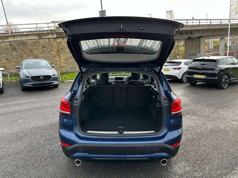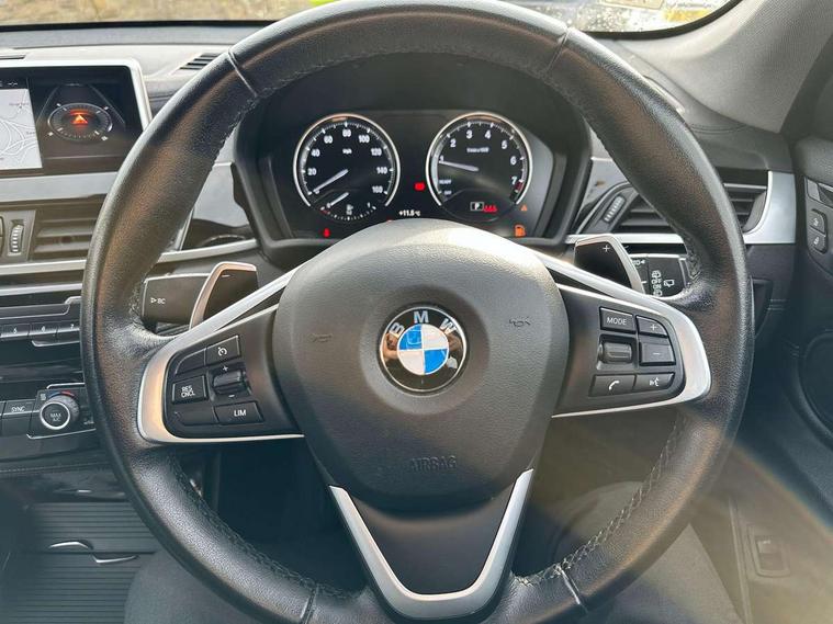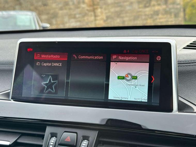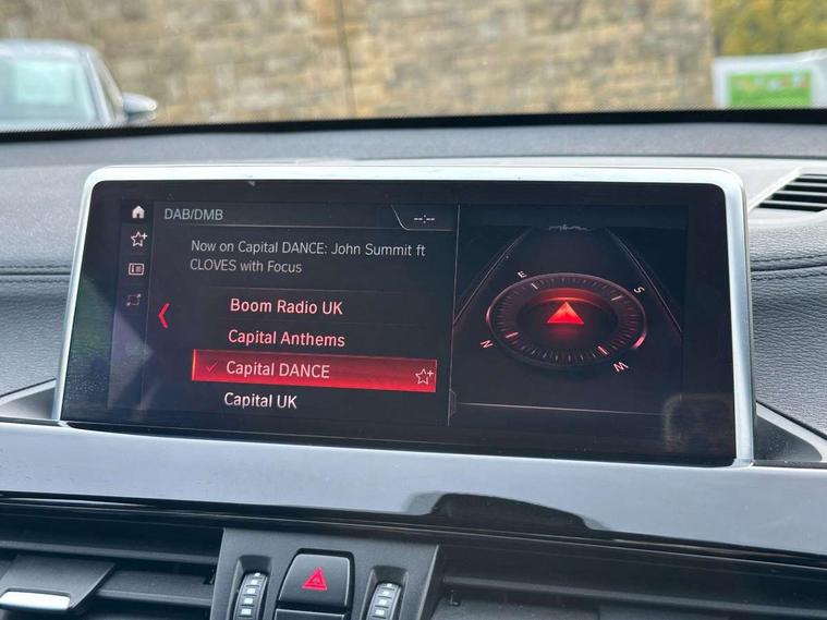 Ambient temperature display, Apple CarPlay, Arrow pointers, north up, direction of travel and perspective map displays, Attentiveness assist, Automatic tailgate opening, BMW ConnectedDrive, BMW Online services, BMW remote services, BMW Teleservices, Brake pad wear indicator in front and rear, Characteristic map controlled oil pump system, Electro hydraulically controlled multi plate clutch in rear axle, Energy efficient operating strategy, Front/rear park distance control (PDC), Instrument cluster with Black optic display featuring superimposed dials and 5.7" colour display, Instrument cluster with speedometer with miles per hour read out, tachometer and fuel gauge, Integrated hard drive with map data updates via USB interface, Lights on warning by audio warning signal when ignition is switched off, On board computer, Operation by iDrive with direct selection buttons and 8 programmable buttons, Optimum shift indicator, Outside temperature gauge, Park assist system, Personal Profile - automatic lock when driving away selectable, Real time traffic information, Rigidly mounted rear subframe - Multi link construction with separate spring / damper configuration and excellent driving characteristics, Service interval indicator, Servotronic PAS, Tyre puncture warning system, Variable and stepless distribution of drive torque between front and rear axle, 12V compressor with integrated sealant injection bottle and hose, Aluminium lightweight construction including crankcase, Anti-roll bars, Balancer shaft, Double VANOS, Drive performance control with ECO PRO comfort + sport mode, Eight speed sport automatic transmission, High precision injection, Larger fuel tank capacity (61 litres), Performance Control, Standard suspension, Stop/start function, Transmission of power to rear axle via front axle differential and two-part cardan shaft, Turbocharger with Valvetronic, Twin tube gas filled shock absorbers with degressive characteristic curve, BMW professional radio includes amplifier power 100w, Two mide range speakers in door trims and two woofers as central bass speaker under front seats, DAB Digital radio, Adjustable headlights, Aero curtain, Automatically dimming rear view mirror, BMW Icon design LED daytime driving lights, Body colour bumpers, Body colour door handles, Body colour door mirrors, Body colour front bumper underbody protection, Direction indicator side lights integrated exterior mirrors, Dynamic brake lights, Electric windows - front and rear, with open/close fingertip control, anti-trap facility and comfort closing, Electrically adjustable door mirrors with aspheric on driver side, convex on passenger side with integrated indicators, Exclusive front door sill finishers with BMW designation, Follow me home headlights, Front air guide finished in black silver, Front air inlets and centre air inlets with high gloss black finisher, Front and rear bumper system, Green tinted heat protection glazing glass, Headlight beam throw control, Heated door mirrors, Heated windscreen washer jets, High level third brake light, Kidney grille with 14 chrome high gloss black fronted with black matt sides vertical bars, LED direction indicator lights in headlight eyebrow, LED front fog lights, Lightweight engineering, Model designation, Rain sensor including auto headlights activation, Rear bumper underbody protection in body colour with high gloss black insert, Rear fog lights, Rear window aerial, Rear window wash/wipe, Reversing light in rear light cluster, Roof mouldings in matt black, Shark fin antenna, Sill cover finished in body colour and matt black, Twin chrome exhaust tailpipes x2, Two eye face design on light, Visible VIN plate, Welcome lighting, 12v power point in centre console, 2 cup holders in front, 3 rear headrests, 3 spoke sport leather steering wheel, 40:20:40 split folding rear bench seat, Boot light, Centre armrest in 20 degree part rear seat backrest, Child seat ISOFIX attachment for two outer rear seats and front passenger seat with anchorage points, Conditioned based service, Driver/front passenger seat backrest back with luggage net, Dual zone automatic air conditioning, Four grab handles integrated in roof linings, Front and rear side armrests integrated into door trim, Front centre armrest/sliding cover, Front centre interior light over interior mirror and rear centre automatic interior light when door is opened/ignition switched off or via remote key, Front sports seats, Front/rear adjustable head restraints, Illuminated glovebox, Leather gearknob/gaiter/handbrake grip, LED ambient lighting in door trim, Luggage area underfloor compartment, Luggage compartment access via recessed handle below tailgate, Luggage compartment lighting, Luggage compartment loading edge with stainless steel insert, Manually adjustment steering wheel column, Multifunction steering wheel, Rear coded belt buckles, Standing free front adjustable armrest and fixed in different positions, Steering wheel gearshift paddles, Velour floor carpets, Extended storage package - X1, ABS/EBD, Audio/visual collision warning system, Automatic Stability Control (ASC), Battery safety cut-off, BMW emergency call, Brake drying, Brake energy regeneration, Braking readiness, Cornering brake control (CBC), Crash Sensor - activates hazard/interior lighting + unlocks doors, Driver/Front Passenger airbags, Driver/front passenger side airbags, Dynamic brake control, Dynamic stability control + (DSC+), Dynamic Traction Control - DTC, Electronic differential lock control (EDLC), Electronic parking brake, Front and rear head airbags, Front passenger airbag deactivation, Front seatbelt force limiters, Front ventilated disc brakes, Hill start assist, Pyrotechnically pre-tensioned front seatbelts, Rear disc brakes, Rear door child safety locks, Seatbelt security check for driver and front passenger, Side impact protection, Three point seat belts in all seats, Twin horns, Tyre pressure monitor, Warning triangle and first aid kit, Cen