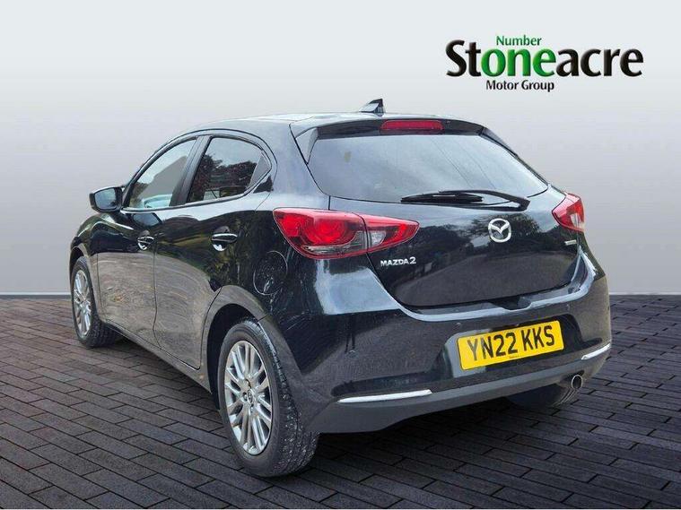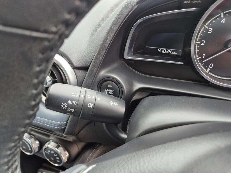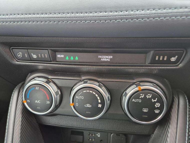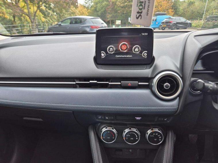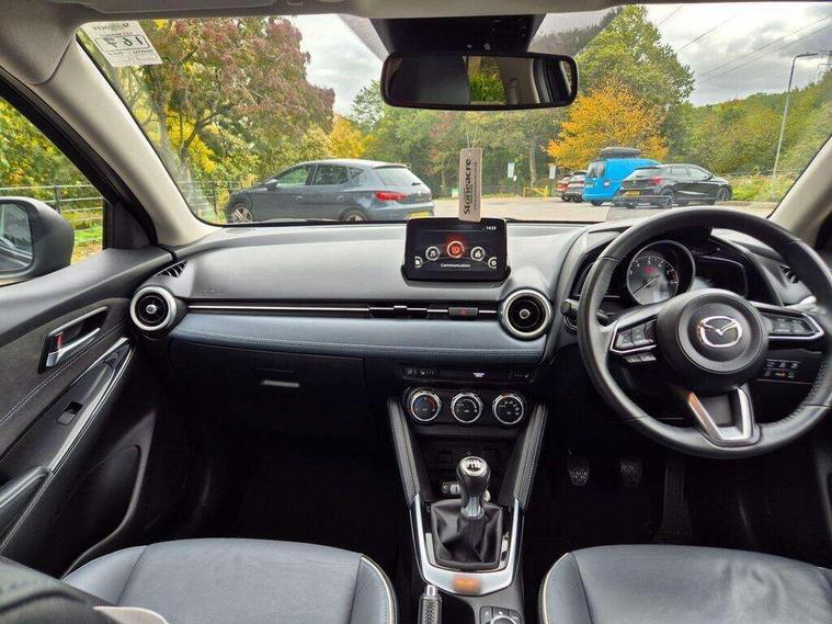 360 View Monitor, Adjustable speed limiter, Analogue rev counter, Blind spot monitoring with rear cross traffic alert, Cruise control, Digital instrument cluster, Digital speed display meter, Driver attention alert system, E-call, Emergency stop signalling system, Engine start/stop button, Front and rear parking sensors, Head up display - Colour active driving display, Integrated bluetooth, Mazda connect with 7" colour touch screen, Navigation system, PAS, Service indicator, Trip computer, Wireless Apple CarPlay and wired Android Auto, i-stop, AM/FM/DAB radio with 6 speakers with USB and AUX inputs, Multimedia Commander including separate volume dial, Steering wheel mounted audio/bluetooth controls, Adaptive LED Headlights, Auto dimming rear view mirror, Auto headlight levelling, Body colour door mirrors, Body coloured front bumper with bright lower bezel, Body coloured rear bumper with bright lower mouldings, Chrome exhaust tailpipes, Chrome finish signature wing on front grille, Chrome front lower bezel, Chrome rear lower bezel, Coming/leaving home lighting function, Dusk sensing headlights, Electric adjustable/heated/folding door mirrors, Electric front/rear windows with one touch auto up/down for driver's window, Gloss black front grille, LED indicator lights, LED third brake light, Privacy glass, Rain sensing front wipers with adjustable sensitivity and speed, Rear side wing doors, Rear wiper, Shark fin antenna, Signature LED daytime running lights, 3 seat bench in 2nd row, 60/40 split rear seats, Climate control air conditioning, Driver, Front passenger and two rear grab handles with coathooks, Drivers seat manual slide recline and height adjustment, Drivers/front passengers covered vanity mirrors and drivers ticket holder, Folding rear seats, Front centre storage with two cupholders, Front head restraints, Front passenger and driver door pockets, Front passenger seat manual slide, recline and height adjust, Front passenger seatback pockets, Gear shift indicator, Glovebox, Heated front seats with 3 stage setting, Heated leather steering wheel, Interior courtesy light with integrated spotlight, ISOFIX child seat anchorage points attached on outer rear seats, Leather gear knob, Leather handbrake, Leather upholstery with black granlux inserts, Luggage compartment light, Satin silver dials, Single front passenger seat, Three height adjustable rear head restraints, Tilt/telescopic adjustable steering wheel, 2x3 point front seatbelts with pre-tensioners, 3 point seatbelts on all rear seats, Anti-lock braking system (ABS), Collision mitigation braking system, Dynamic stability control + Traction control, ESP, Front and rear curtain airbags, Front driver, passenger and rear seat seatbelt warning, Front dual stage driver and single stage front passenger airbags, Front side airbags, G-Vectoring control plus, Hill launch assist, Manual child lock in rear doors, Passenger airbag cut-off switch, Rear smart city brake support, Tyre pressure monitoring system, Alarm, Deadlocking system, Immobiliser, Power door locks, Remote central locking, Smart keyless entry, Blue/grey soft touch dashboard, 16" Bright finish alloy wheels, Emergency tyre repair kit,