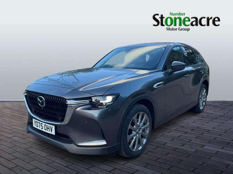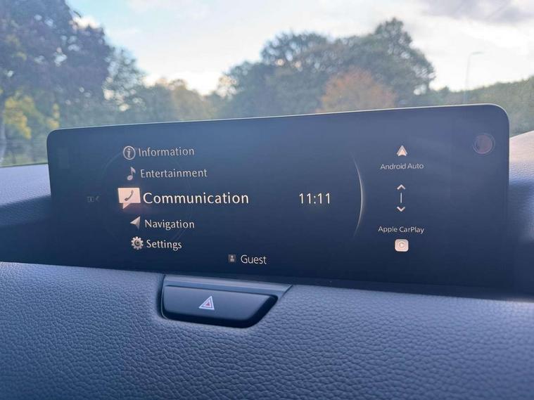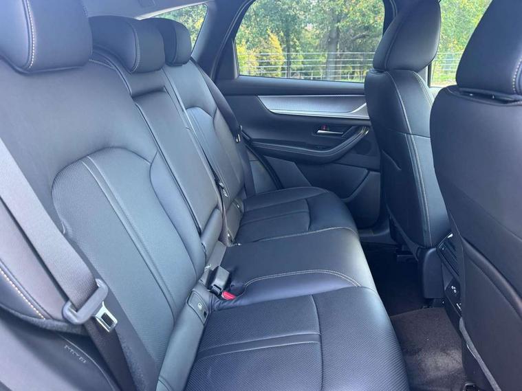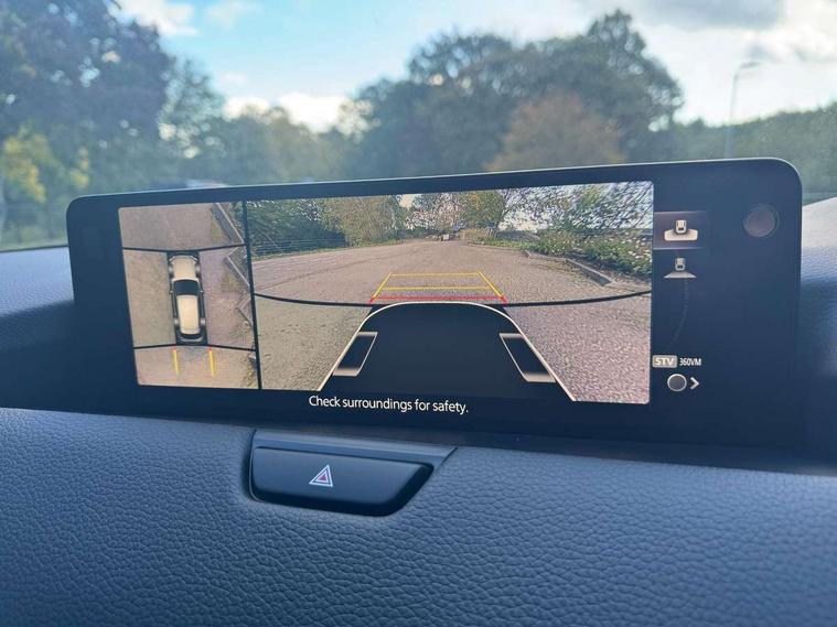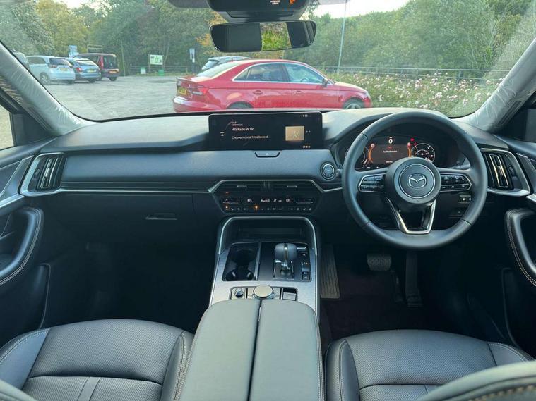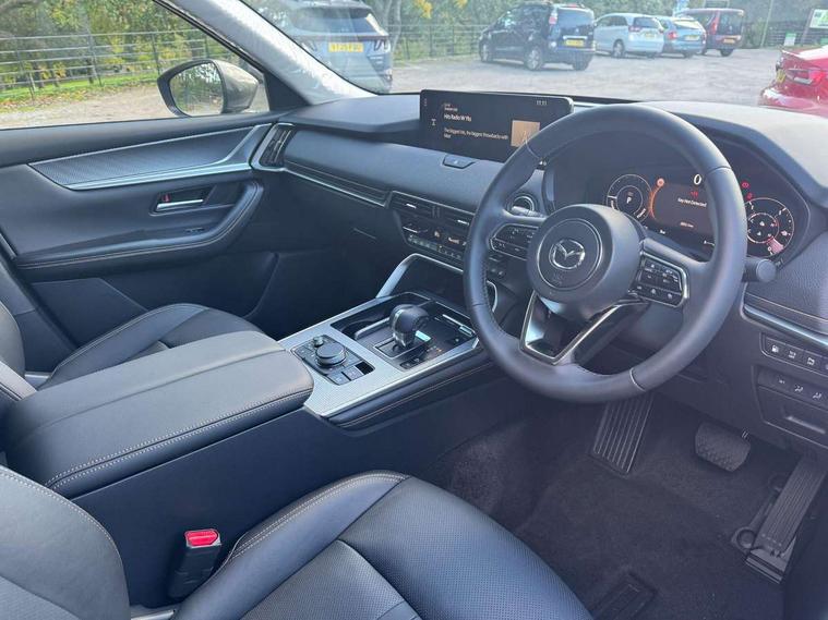Emergency lane keeping with blind spot assist, Low washer fluid warning light, 12.3" Colour entertainment centre display with mazda connect infotainment, 12.3" TFT Colour display, Adjustable speed limiter, Blind spot assist, Blind spot monitoring with rear cross traffic alert, Cruise control, Distance alert system, Driver attention alert system, E-call with GPS, Emergency stop signalling system, Exit warning function, Front and rear parking sensors, Integrated bluetooth, Intelligent speed assist, Kinematic posture control, Lane keep assist system (LAS) with Lane departure warning system (LDWS), Mazda hybrid navigation system with european mapping, Multimedia Commander, PAS, Power lift gate with handsfree function, Power liftgate, Power start/stop button, Reversing camera with static guide lines, Speed alert, Traffic sign recognition enhanced with mandated excessive speed warning, Trip computer, Windscreen projected colour active driving display, Wireless apple car play/android Auto, Type 2 Mode 2 cable for AC charging via UK 3-pin plug, 7.2 kw On board Charger, Mi-Drive (Normal, Sport, Off-road, Towing and EV mode), Paddle shift, Type 2 Mode 3 cable for AC charging via home or public charge points, AM / FM / DAB radio with 8 speakers, Steering wheel mounted audio/bluetooth controls, USB-C inputs (x2 front and x2 rear), Auto dimming driver's door mirror, Automatic headlight levelling, B-pillar and C-pillar garnishes in gloss black finish, Body colour roof spoiler, Body coloured bumpers, Body coloured door mirrors, Chrome front side garish, Coming/leaving home lighting function, Dark plated headlight lense, Dusk sensing headlights, Electric front/rear windows with one touch auto up/down, Electrically adjustable, heated auto power folding door mirrors, Frameless auto dimming interior rear view mirror, Front kodo turn signal, Front wiper de-icer, Gloss black bar type front grille with bright finish signature wing, Headlight washers, High beam control, LED 3rd brake light, LED headlamps, LED rear signature combination lamps, Piano black window surrounds, Rain sensing front wipers with adjustable sensitivity and speed, Rear side wing doors, Rear wiper, Roof pillars and roof lining finished in lighter colour to soften the overall look, Satin black lower bumper, wheel arch and side mouldings, Signature LED daytime running lights, Silver decoration panel, 12v power outlet - front, 12V socket in boot, 3 height adjustable rear headrests, 3 seat bench in 2nd row, 40/20/40 split folding rear seats with quick levers in the boot, Cargo net, Chrome interior trim accents with steering wheel centre bezel, surround of engine start / stop button and glove box handle, Door panel trim vinyl leather with armrest, Driver and front passenger two rear grab handles with rear coat hooks, Driver and front passenger visors with covered vanity mirror and driver ticket holder, Driver seat manual slide, recline, height and seat tilt adjust, Driver, front passenger and two rear door pockets, Driver/passenger front seatback pockets, Dual zone climate control air conditioning with rear air vents, Featuring black vinyl leather dashboard trim with titanium coloured accents, Folding rear centre armrest with two cup holders, Front and rear signature illumination, Front centre storage with two cupholders, Front down lamp with front and rear foot lamps, Front headrests, Front passengers seat manual slide, recline and height adjustment, Glovebox illumination, Heated front seats with 3 stage setting, Heated leather wrapped steering wheel, ISOFIX child seat anchorage points attached on outer rear seats, Karakuri tonneau cover, Leather upholstery, Leather wrapped gear shift knob, LED illumination luggage compartment, Manual telescopic and tilt adjustment steering wheel, Practical and spacious front centre armrest storage, Rear seat recline function for rear passenger comfort, Remote fold down rear seats, Roof lining (ceiling and pillars) - Grey, Roof mounted sunglasses holder, Single front passenger seat, 3 point ELR front seat belts x2 with pretensioners, 3 point ELR rear seat belts, Active bonnet, Anti-lock braking system (ABS), Drivers knee airbag, DSC - Dynamic Stability Control, Electronic parking brake with auto disengage function and auto hold function, Front and rear curtain airbags, Front dual stage driver and single stage front passenger airbags, Front passenger airbag cut-off switch, Front side airbags, Front smart city brake support, Hill decent control, Hill launch assist, Manual rear child locks, Seatbelt reminder for driver/front passenger and rear seats, Traction control, Tyre pressure monitoring system (TPMS), Remote central locking with deadlocking and automatic door lock when driving, Smart keyless entry, Thatcham accredited alarm and immobiliser, Mesh metal film centre console panel, 18" Grey metallic alloy wheels, Emergency tyre repair kit,