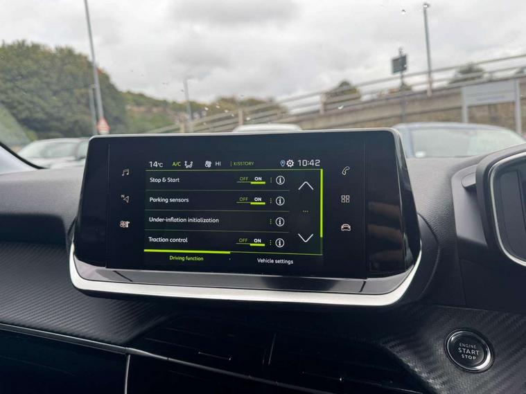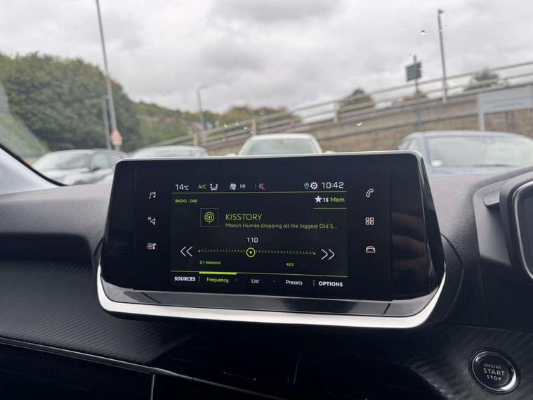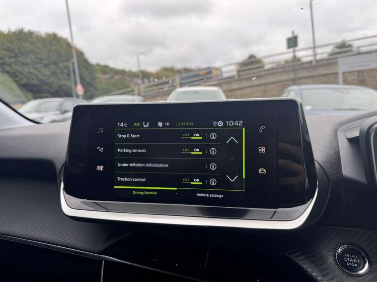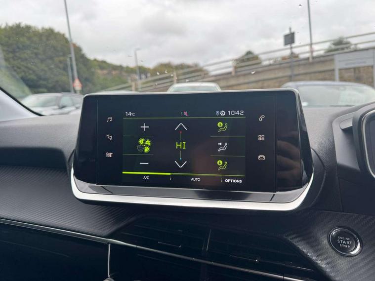 Bluetooth telephone facility, Driver attention warning, Emergency call service, Exterior temperature indicator with ice warning, Lane keep assist, Mirror screen with mirror link, apple carplay and android auto, Multi function trip computer, PEUGEOT i-Cockpit with compact steering wheel, PEUGEOT i-Cockpit with configurable 3D headup instrument panel, Push button start, Smart phone docking station, Speed limit recognition and recommendation, Start/stop system, Visio Park 1 with 180 degree Colour reversing camera, 2 front USB socket with USB-C, 2x USB sockets in rear, 6 speakers radio with mp3 compatible, DAB Digital radio, Voice recognition for radio, navigation and telephony features, 2 X Rear number plate lights, Automatic hazard light activation upon heavy brake application, Automatic lights, Automatic windscreen wipers, Body coloured exterior door handles, Dark tinted rear side and tailgate windows, Diamond black rear spoiler, Eco LED headlights, Electric front windows + one touch + anti-pinch, Electric rear windows with one touch/anti-pinch, Electrically adjustable, heated and power folding door mirrors, Electrochrome rear view mirror, Follow me home headlights, Gloss black finish on B pillar, Gloss black rear cluster connecting strip, Gloss black window surround, Headlights left on audible warning, LED daytime running lights with 3 claw headlight with distinctive tooth design, LED side indicator lights integrated into door mirrors, LED third brake light, Model designation badges front and rear, Nera black door mirror shells, Radiator grille chrome chequered, Rear bumper with gloss black finish, Rear full LED 3D peugeot signature claw effect lights with daylight function, Rear reversing lights, Rear side wing doors, Rear windscreen wiper triggered automatically in reverse gear, Roof mounted aerial, Roof spoiler, Single exhaust tailpipe, Tailgate with heated rear windscreen and wiper blade, Variable front intermittent wipers, 1/3 to 2/3 split folding rear seats, 12V socket, 3 seat bench in 2nd row, Automatic air conditioning, Black rods on rear headrests, Black wheel nut covers, Driver and front passenger comfort seats, Driver and front passenger seat manual adjustment in longitudinal and back rest angle, Driver seat mechanical height adjustment, Electric power steering with reach and rake adjustable steering column, Front centre armrest with storage compartment, Front interior light with 2 reading spotlights, Gear shift indicator, High centre console with 2 cup holders, Leather steering wheel, Map pockets on the backs of the front seats, Piano keys gloss black plated toggle switches to access main functions of the vehicle, Rear centre headrest, Roof lining - light grey, Satin chrome gear lever, Seatbelt unfastened on the move audible and visual alert for front and rear seats, Single front passenger seat, Tri material cloth/leather upholstery, 2x Isofix child seat fitting on outer rear seats, 3 rear 3 point seatbelts, ABS (Anti-lock Braking System) with EBD (Electronic Brakeforce Distribution) and EBA (Emergency Braking Assistance), Adaptive driver and front passenger airbags with passenger airbag deactivation function, Child locking functionality on rear doors, Driver/front passenger side airbags, Electric parking brake, ESP with Hill Assist, Front and rear curtain airbags, Front and rear disc brakes, Front optimised safety headrests and 3 x rear retractable headrests with height adjustable, Front three point retractable seatbelts with force limiters, Pedestrians active safety brake, Tyre pressure sensor, Acoustic vehicle alert system (AVAS), Automatic door locking when moving off, Deadlock, Electronic code immobiliser, Remote central locking, Thatcham cat. 1 alarm with anti lift sensor, Carbon effect Dashboard, front and rear door panel finish, 16" Soho diamond cut alloy wheels, Tyre puncture repair kit,