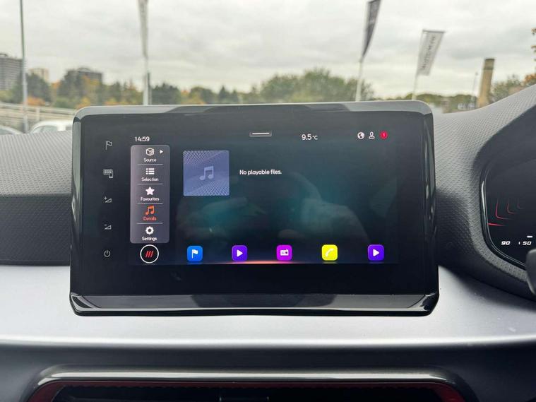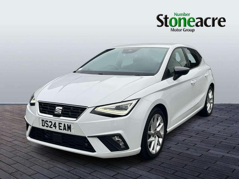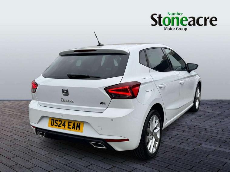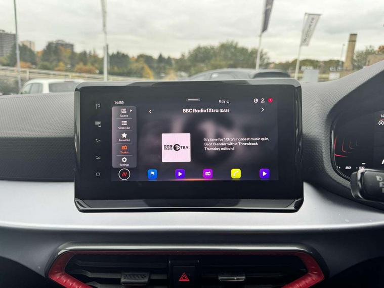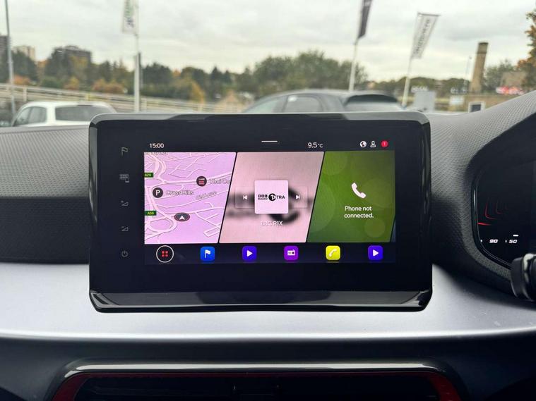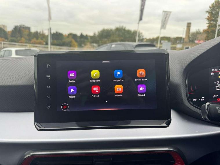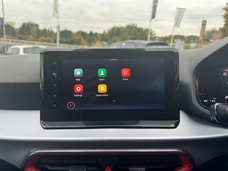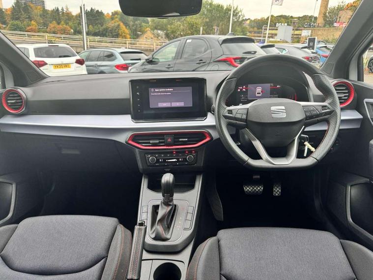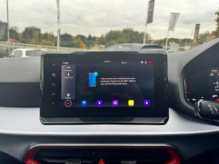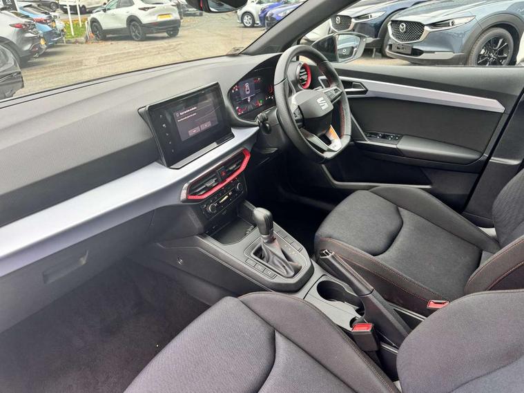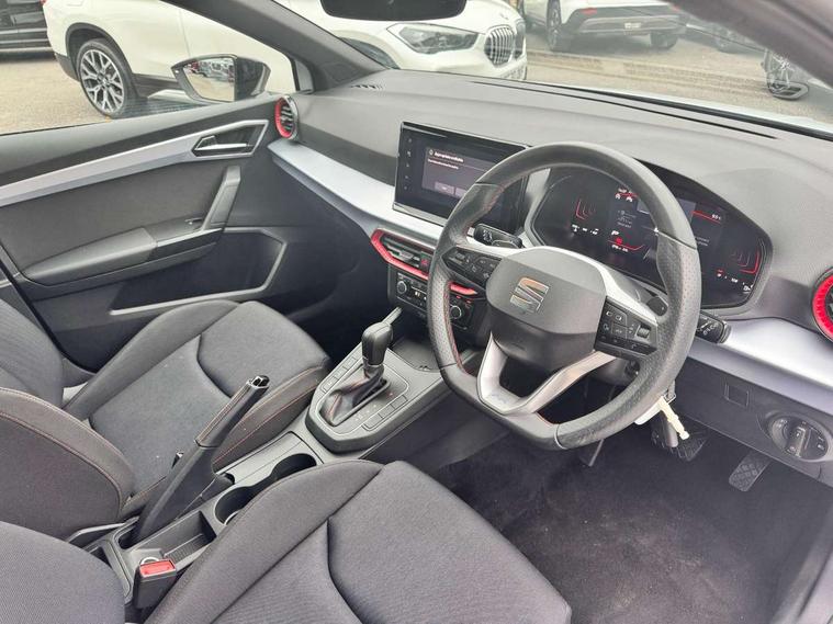 'Lights On' Reminder warning buzzer, 8" Digital cockpit, 9.2" touchscreen navigation system with type C USB socket, Voice control and DAB/AM/FM radio, Auto start and stop system, Bluetooth audio streaming with handsfree system, Digital clock, E-call, Full link smartphone integration with mirror link, wireless apple carplay, Google android auto + USB Type C cable for apple and android devices, Lane assist, Low fuel warning light, Outside temperature gauge, Power Steering, Rear parking sensor, Seat connect plus with safety, service, remote and online, SEAT drive profiles and ECO function, SEAT logo boot release, Speed limiter, Traffic sign recognition, Trip computer, Sports suspension, Auxiliary input socket, Radio/MP3 player, SD card slot, Steering wheel mounted controls, Anti theft roof antenna, Auto dimming rear view mirror, Automatic rain sensing wipers, Black door mirror caps, Body colour bumpers, Body colour door handles, Brilliant black window surrounds, Dark tinted rear windows, Electric adjustable/heated/folding door mirrors, Electric front windows, Electric headlight adjustment, Electric rear windows, Front/rear fog lights, FULL LED automatic headlights with dynamic headlight range control, coming and leaving home, LED daytime running lights, LED tail lights, Rear roof spoiler with FR twin exhausts, Rear side wing doors, Rear wiper, Third brake light, 3 seat bench in 2nd row, 60/40 split folding rear seat, Ambient interior lighting, Chrome detailing and black headlining, Cloth upholstery, Dual zone climate control with combination filter, Front courtesy lights, Front cupholders x 2, Front reading lights, Gear shift indicator, Glovebox, Height adjustable front and rear headrests (five), Height adjustable front seats, Height/reach adjust steering wheel, Illuminated air vent surrounds, Illuminated boot, Instrument lighting with brightness control, Isofix, Leather multifunction flat bottomed sports steering wheel with gearshift paddles, Passenger sunvisor, Single front passenger seat, Sports seats, Sunvisors with mirror and driver side card holder, Safety and driving pack (S) - Ibiza, 3 point seatbelts on all 3 rear seats, ABS, Active front headrests, Child locks on rear doors, Electronic stability control, Energy recovery system, Front driver and passenger side airbags with curtain airbag and front passenger airbag deactivation, Hill hold control, Multi-Collision braking, Seat belt reminder for front and rear seats, Tiredness recognition system, Tyre pressure monitoring system, Electronic engine immobiliser, Locking wheel bolts, Perimeter alarm and interior monitoring inc.backup horn, tow away protection and electronic engine immobiliser, Remote central locking + deadlocks, 17" Alloy wheels in Brilliant silver,