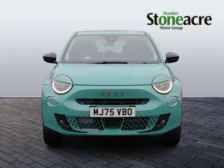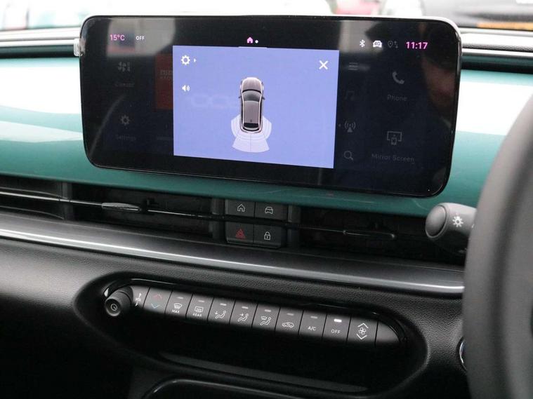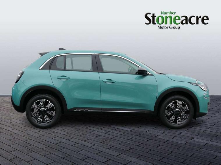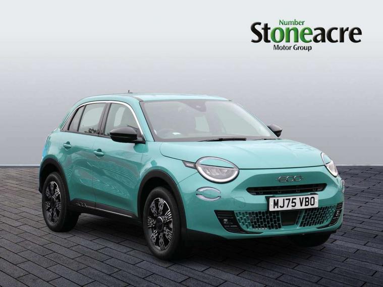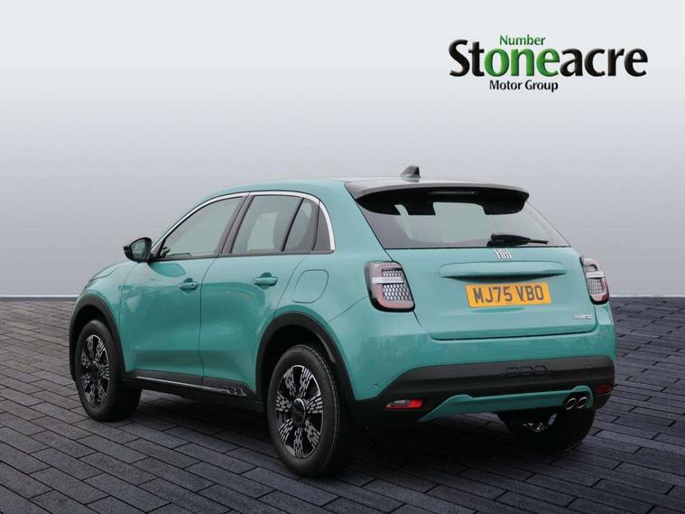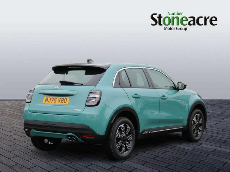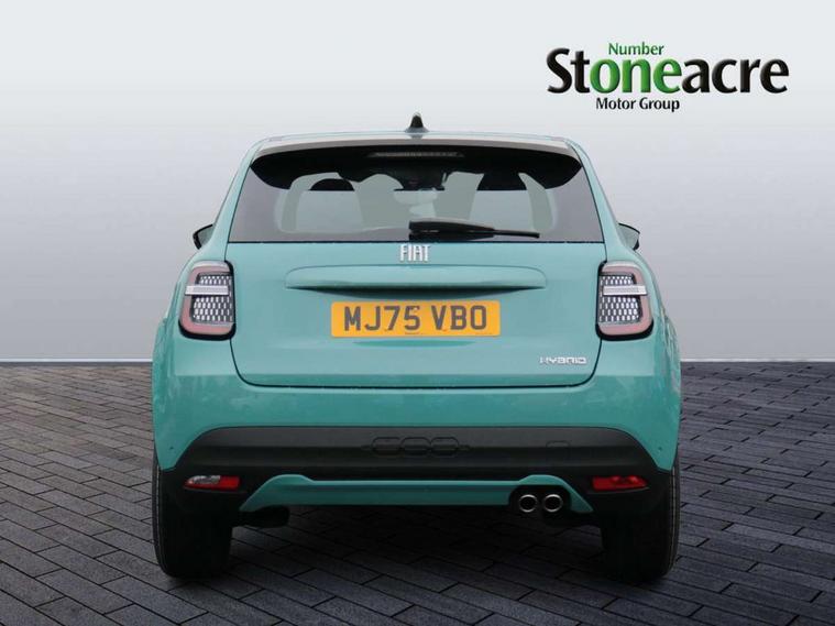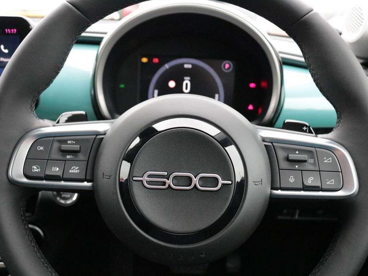 7" TFT digital cluster, Bluetooth connectivity, BSRF connectivity box, Connected services, Cruise control, Drowsy driver detection, Emergency E-call assist, Engine emission level default, GSR II step 1, Intelligent speed assist, Lane keeping assistant (LKA), Odometer, Power assist steering, Rain and dusk sensors, Rear parking sensors, Traffic sign recognition, Wireless apple car play/android Auto, Without drive mode selector, L2-AGM 12V battery, 1st Row USB type-A and USB type-C, 4 speaker audio system, Radio, Uconnect infotainment 10.25" touchscreen with DAB, All power windows express Up/Down, Auto dimming frameless rear view mirror, Automatic headlights, Body coloured door handles, Chrome day light openings, Electric adjustable door mirrors, Exterior chrome accents, Front and rear Chromed 600 logo, Gloss black finish B pillar, Gloss black shark fin antenna, Glossy black door mirrors, Heated windscreen wiper blade area, LED 3rd brake light, LED daytime running lights, LED Fog lamps with cornering function, LED front signature lighting, LED front turn indicators and position lights, LED rear lights, LED rear signature lighting, LED reflector headlamps, Matt black side skirts with 600 chromed logo, Rear bumper embossed 600 logo, Rear roof spoiler, Rear side wing doors, Rear wiper, 2 Spoke synthetic leather steering wheel with audio control, 3 rear headrests, 3 seat bench in 2nd row, 4 way manually adjustable passenger seat, 6 way manually adjustable drivers seat, Auxilliary 12V power socket, Body colour dashboard fascia, Chrome interior door handles, Dark metachrome dashboard ring, English handbook, Front centre armrest, Front headrests, Front passenger grab handle, Front seatback pockets, ISOFIX attachment on front passenger and rear passenger seats, Manual climate control, Metachrome central compartment bezel, Monogram fabric upholstery, Paddle shifts, Partial body cover for shipment, Predisposal for accessory upgrade to default tunnel pad cover (dedicated prnd bezel), Rear seat 40/60 split, Single front passenger seat, Smart 15L storage central tunnel with tunnel pad cover, Sunvisor label ciao Fiat, Sunvisors with vanity mirrors, 3x3 point rear seatbelts, 6 airbags, ABS, Autonomous Emergency Brake (AEB) & Vulnerable Road User (VRU) Protection, Child locks on rear doors, Electronic parking brake with auto hold, ESC (Electronic Stability Control), Front passenger airbag deactivation, Seatbelt reminder and pretensioners for all seats, Anti-theft volumetric alarm, Anti-theft wheel bolts, Keyless Go, 17" Diamond cut alloy wheels, Fix and go puncture repair kit,