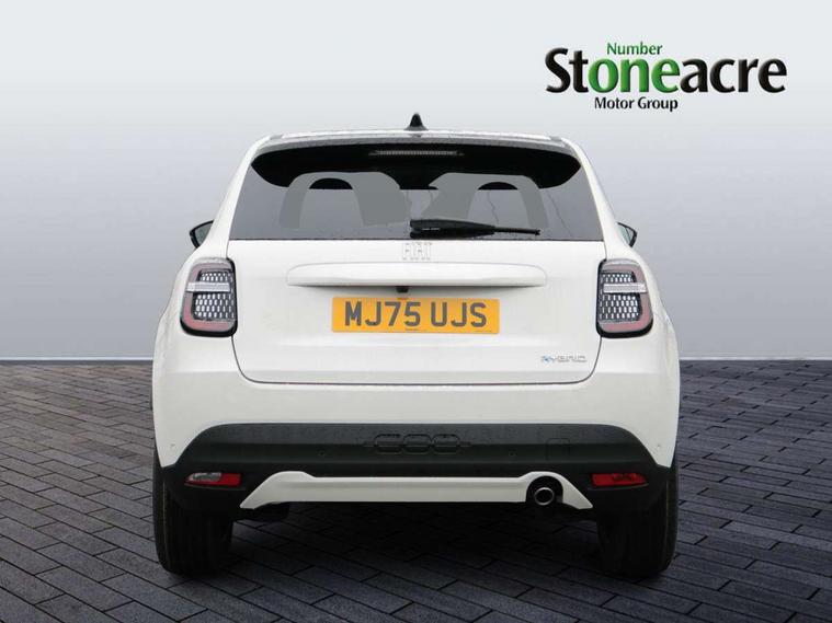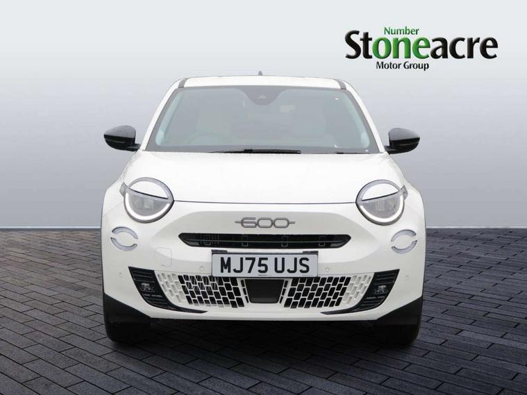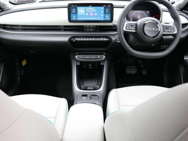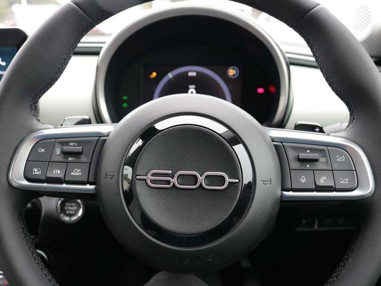 360 degree parking sensors with 180 degree rear view camera, 7" TFT digital cluster, Autonomous driving level 2: Adaptive cruise control with stop & go and lane centering, Blind spot detection, Bluetooth connectivity, BSRF connectivity box, Connected services, Drowsy driver detection, Emergency E-call assist, Engine emission level default, GSR II step 1, Hands free power liftgate, Intelligent speed assist, Lane keeping assistant (LKA), Odometer, Power assist steering, Rain and dusk sensors, Semi-automatic parking with Visiopark 1 system, Traffic sign recognition, Wireless apple car play/android Auto, Wireless charging pad for smartphones, Without drive mode selector, L2-AGM 12V battery, 1st Row USB type-A and USB type-C, 2nd Row USB type-C, 6 speaker audio system, Radio, Uconnect infotainment 10.25" touchscreen with integrated navigation system and DAB, All power windows express Up/Down, Auto dimming frameless rear view mirror, Automatic headlights, Automatic high/low beam, Body coloured door handles, Chrome day light openings, Chromed exhaust tip, Electric adjustable/heated/folding door mirrors, Exterior chrome accents, Front and rear Chromed 600 logo, Gloss black finish B pillar, Gloss black shark fin antenna, Glossy black door mirrors, Heated windscreen wiper blade area, LED 3rd brake light, LED daytime running lights, LED Fog lamps with cornering function, LED front signature lighting, LED front turn indicators and position lights, LED rear lights, LED rear signature lighting, LED reflector headlamps, Matt black side skirts with 600 chromed logo, Privacy glass, Puddle lights, Rear bumper embossed 600 logo, Rear roof spoiler, Rear side wing doors, Rear wiper, 2 Spoke synthetic leather steering wheel with audio control, 3 rear headrests, 3 seat bench in 2nd row, 6 way manually adjustable front passenger seat, 6 way power adjustable driver seat with lumbar support and massage function, Adjustable trunk floor, Automatic climate control, Auxilliary 12V power socket, Cargo flex fit, Chrome interior door handles, Dark metachrome dashboard ring, English handbook, Front centre armrest, Front headrests, Front passenger grab handle, Front seatback pockets, Heated front seats, ISOFIX attachment on front passenger and rear passenger seats, Matt Ivory painted dashboard fascia, Metachrome central compartment bezel, Monogram Synthetic leather upholstery, Paddle shifts, Partial body cover for shipment, Predisposal for accessory upgrade to default tunnel pad cover (dedicated prnd bezel), Rear seat 40/60 split, Single front passenger seat, Smart 15L storage central tunnel with La prima tunnel pad cover, Sunvisor label ciao Fiat, Sunvisors with vanity mirrors, Velour floor mats, 3x3 point rear seatbelts, 6 airbags, ABS, Autonomous Emergency Brake (AEB) & Vulnerable Road User (VRU) Protection, Child locks on rear doors, Electronic parking brake with auto hold, ESC (Electronic Stability Control), Front passenger airbag deactivation, Seatbelt reminder and pretensioners for all seats, Anti-theft volumetric alarm, Anti-theft wheel bolts, Passive entry and keyless go, 18" Diamond cut alloy wheels, Fix and go puncture repair kit,