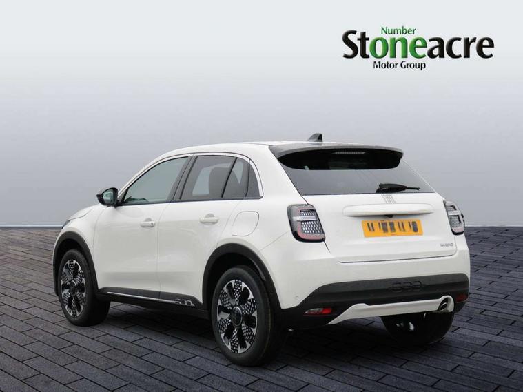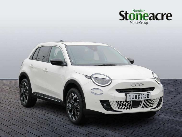 360 degree parking sensors with 180 degree rear view camera, 7" TFT digital cluster, Autonomous driving level 2: Adaptive cruise control with stop & go and lane centering, Blind spot detection, Bluetooth connectivity, BSRF connectivity box, Connected services, Drowsy driver detection, Emergency E-call assist, Engine emission level default, GSR II step 1, Hands free power liftgate, Intelligent speed assist, Lane keeping assistant (LKA), Odometer, Power assist steering, Rain and dusk sensors, Semi-automatic parking with Visiopark 1 system, Traffic sign recognition, Wireless apple car play/android Auto, Wireless charging pad for smartphones, Without drive mode selector, L2-AGM 12V battery, 1st Row USB type-A and USB type-C, 2nd Row USB type-C, 6 speaker audio system, Radio, Uconnect infotainment 10.25" touchscreen with integrated navigation system and DAB, All power windows express Up/Down, Auto dimming frameless rear view mirror, Automatic headlights, Automatic high/low beam, Body coloured door handles, Chrome day light openings, Chromed exhaust tip, Electric adjustable/heated/folding door mirrors, Exterior chrome accents, Front and rear Chromed 600 logo, Gloss black finish B pillar, Gloss black shark fin antenna, Glossy black door mirrors, Heated windscreen wiper blade area, LED 3rd brake light, LED daytime running lights, LED Fog lamps with cornering function, LED front signature lighting, LED front turn indicators and position lights, LED rear lights, LED rear signature lighting, LED reflector headlamps, Matt black side skirts with 600 chromed logo, Privacy glass, Puddle lights, Rear bumper embossed 600 logo, Rear roof spoiler, Rear side wing doors, Rear wiper, 2 Spoke synthetic leather steering wheel with audio control, 3 rear headrests, 3 seat bench in 2nd row, 6 way manually adjustable front passenger seat, 6 way power adjustable driver seat with lumbar support and massage function, Adjustable trunk floor, Automatic climate control, Auxilliary 12V power socket, Cargo flex fit, Chrome interior door handles, Dark metachrome dashboard ring, English handbook, Front centre armrest, Front headrests, Front passenger grab handle, Front seatback pockets, Heated front seats, ISOFIX attachment on front passenger and rear passenger seats, Matt Ivory painted dashboard fascia, Metachrome central compartment bezel, Monogram Synthetic leather upholstery, Paddle shifts, Partial body cover for shipment, Predisposal for accessory upgrade to default tunnel pad cover (dedicated prnd bezel), Rear seat 40/60 split, Single front passenger seat, Smart 15L storage central tunnel with La prima tunnel pad cover, Sunvisor label ciao Fiat, Sunvisors with vanity mirrors, Velour floor mats, 3x3 point rear seatbelts, 6 airbags, ABS, Autonomous Emergency Brake (AEB) & Vulnerable Road User (VRU) Protection, Child locks on rear doors, Electronic parking brake with auto hold, ESC (Electronic Stability Control), Front passenger airbag deactivation, Seatbelt reminder and pretensioners for all seats, Anti-theft volumetric alarm, Anti-theft wheel bolts, Passive entry and keyless go, 18" Diamond cut alloy wheels, Fix and go puncture repair kit,