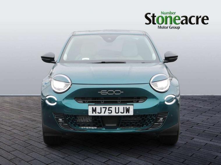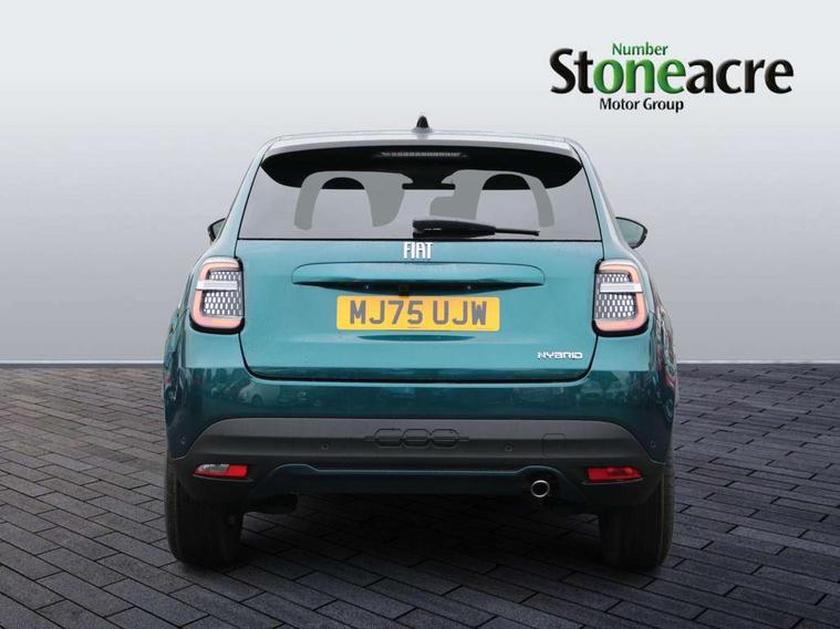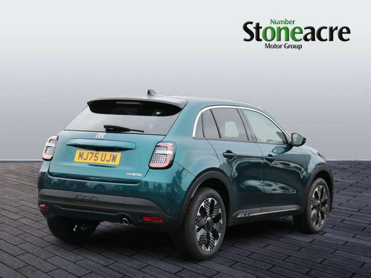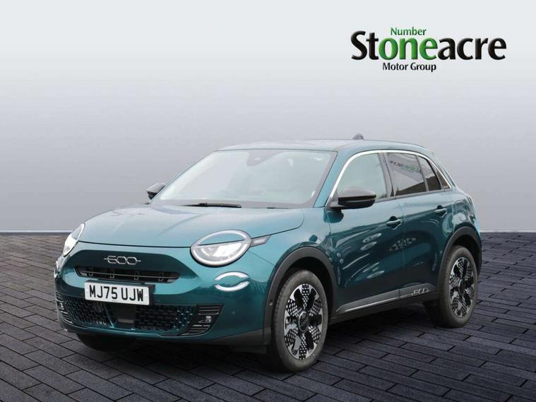 360 degree parking sensors with 180 degree rear view camera, 7" TFT digital cluster, Autonomous driving level 2: Adaptive cruise control with stop & go and lane centering, Blind spot detection, Bluetooth connectivity, BSRF connectivity box, Connected services, Drowsy driver detection, Emergency E-call assist, Engine emission level default, GSR II step 1, Hands free power liftgate, Intelligent speed assist, Lane keeping assistant (LKA), Odometer, Power assist steering, Rain and dusk sensors, Semi-automatic parking with Visiopark 1 system, Traffic sign recognition, Wireless apple car play/android Auto, Wireless charging pad for smartphones, Without drive mode selector, L2-AGM 12V battery, 1st Row USB type-A and USB type-C, 2nd Row USB type-C, 6 speaker audio system, Radio, Uconnect infotainment 10.25" touchscreen with integrated navigation system and DAB, All power windows express Up/Down, Auto dimming frameless rear view mirror, Automatic headlights, Automatic high/low beam, Body coloured door handles, Chrome day light openings, Chromed exhaust tip, Electric adjustable/heated/folding door mirrors, Exterior chrome accents, Front and rear Chromed 600 logo, Gloss black finish B pillar, Gloss black shark fin antenna, Glossy black door mirrors, Heated windscreen wiper blade area, LED 3rd brake light, LED daytime running lights, LED Fog lamps with cornering function, LED front signature lighting, LED front turn indicators and position lights, LED rear lights, LED rear signature lighting, LED reflector headlamps, Matt black side skirts with 600 chromed logo, Privacy glass, Puddle lights, Rear bumper embossed 600 logo, Rear roof spoiler, Rear side wing doors, Rear wiper, 2 Spoke synthetic leather steering wheel with audio control, 3 rear headrests, 3 seat bench in 2nd row, 6 way manually adjustable front passenger seat, 6 way power adjustable driver seat with lumbar support and massage function, Adjustable trunk floor, Automatic climate control, Auxilliary 12V power socket, Cargo flex fit, Chrome interior door handles, Dark metachrome dashboard ring, English handbook, Front centre armrest, Front headrests, Front passenger grab handle, Front seatback pockets, Heated front seats, ISOFIX attachment on front passenger and rear passenger seats, Matt Ivory painted dashboard fascia, Metachrome central compartment bezel, Monogram Synthetic leather upholstery, Paddle shifts, Partial body cover for shipment, Predisposal for accessory upgrade to default tunnel pad cover (dedicated prnd bezel), Rear seat 40/60 split, Single front passenger seat, Smart 15L storage central tunnel with La prima tunnel pad cover, Sunvisor label ciao Fiat, Sunvisors with vanity mirrors, Velour floor mats, 3x3 point rear seatbelts, 6 airbags, ABS, Autonomous Emergency Brake (AEB) & Vulnerable Road User (VRU) Protection, Child locks on rear doors, Electronic parking brake with auto hold, ESC (Electronic Stability Control), Front passenger airbag deactivation, Seatbelt reminder and pretensioners for all seats, Anti-theft volumetric alarm, Anti-theft wheel bolts, Passive entry and keyless go, 18" Diamond cut alloy wheels, Fix and go puncture repair kit,