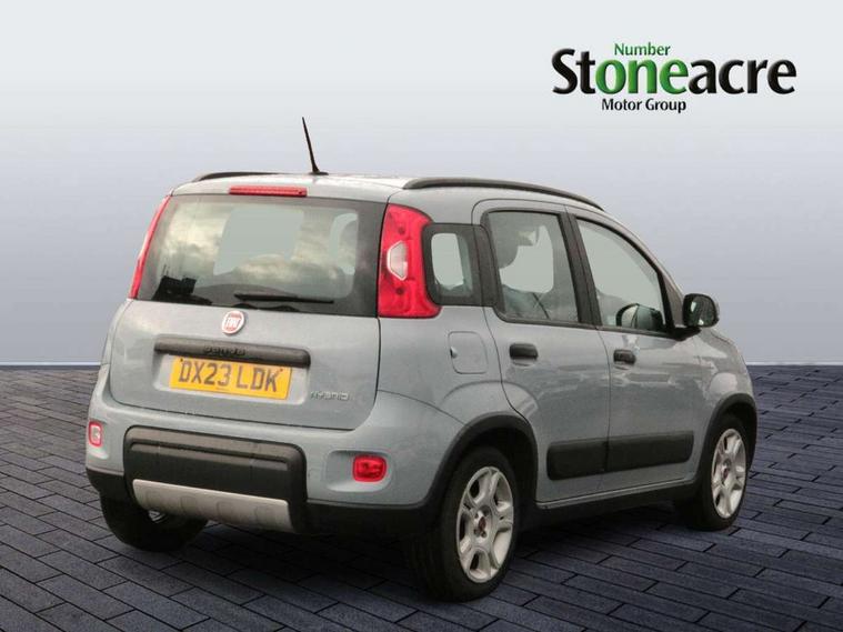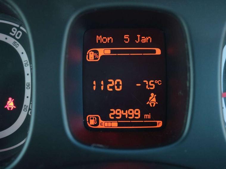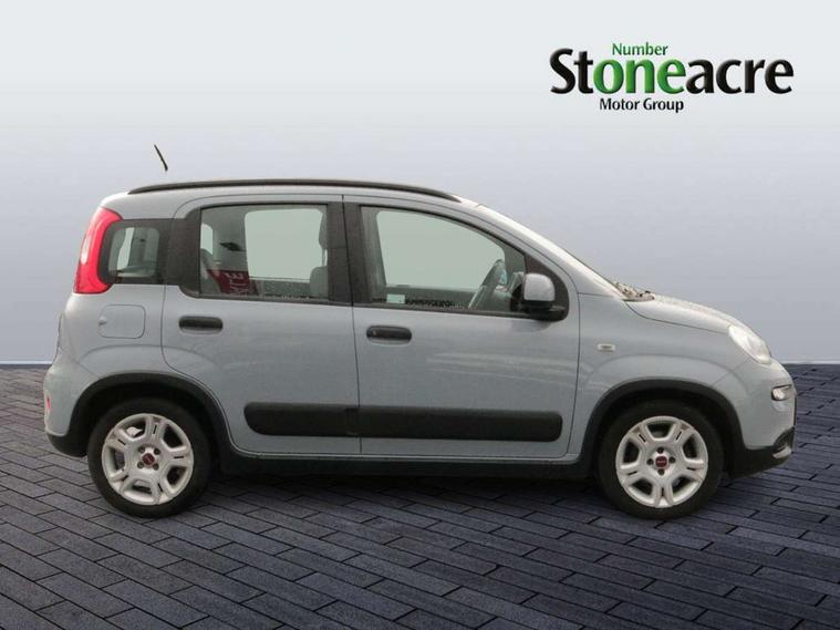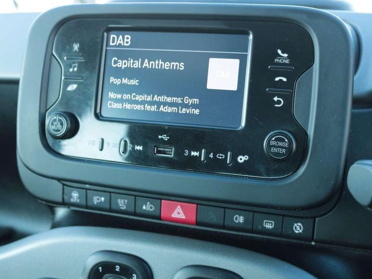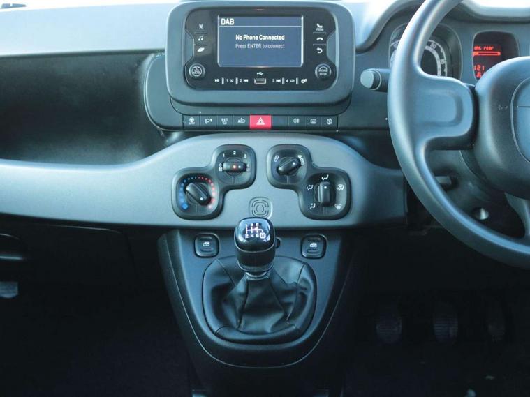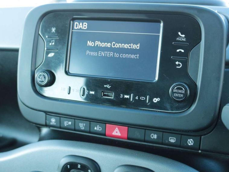 Apple car play and Android auto, Dual drive PAS, Emergency services call system, Outside temperature display, Outside temperature sensor, Stop/start system, Tailgate, Trip computer, 5" touchscreen, Bluetooth radio with Smartphone cradle, USB and DAB, Black bodyside mouldings, Black door handles, Black longitudinal roof bars, Black side skirts, Body colour door mirrors, Body coloured bumpers, Daytime running lights, Electric front windows, Heated rear window+rear wash/wipe, LED Headlights, Rear side wing doors, Thermal windows, Third brake light, Variable front intermittent wipers, 12V power sockets, 2 rear head restraints, 2 seat bench in 2nd row, 60/40 split rear seats, Bi-colour cloth upholstery, Driver's sun visor with vanity mirror, Height adjustable driver's seat, Height adjustable steering wheel, Isofix attachments on outer rear seats, Luggage compartment lighting, Passenger sunvisor with vanity mirror, Single front passenger seat, Comfort kit - Panda, ABS/EBD, Anti-whiplash front headrests, Brake assist function, Child locks on rear doors, Default brake calipers, Driver and passenger airbags, ESC with ASR + hill holder, Front passenger airbag deactivation, Front seatbelt pretensioners, Seat belt reminder, Tyre pressure monitoring system, Window airbags, Immobiliser, Remote control central door locking, Easy tricot black door panels, Titanio dashboard, 15" Style steel wheels,