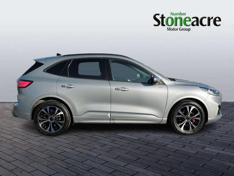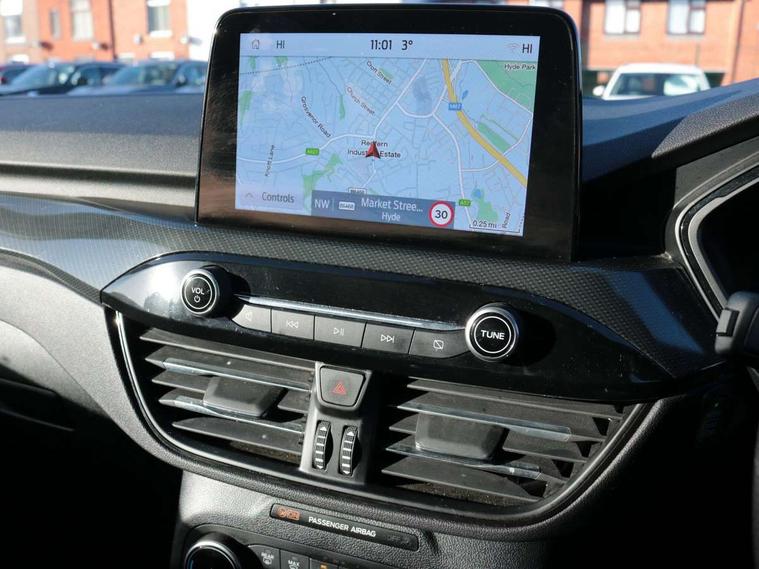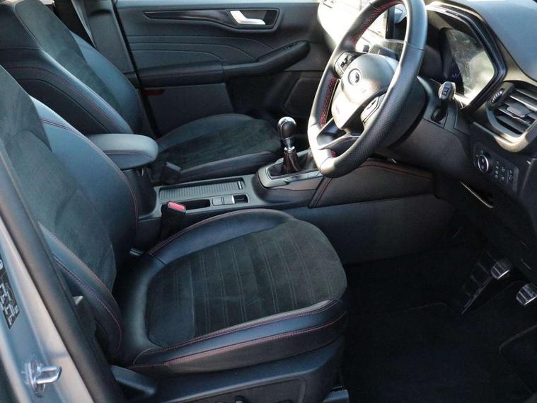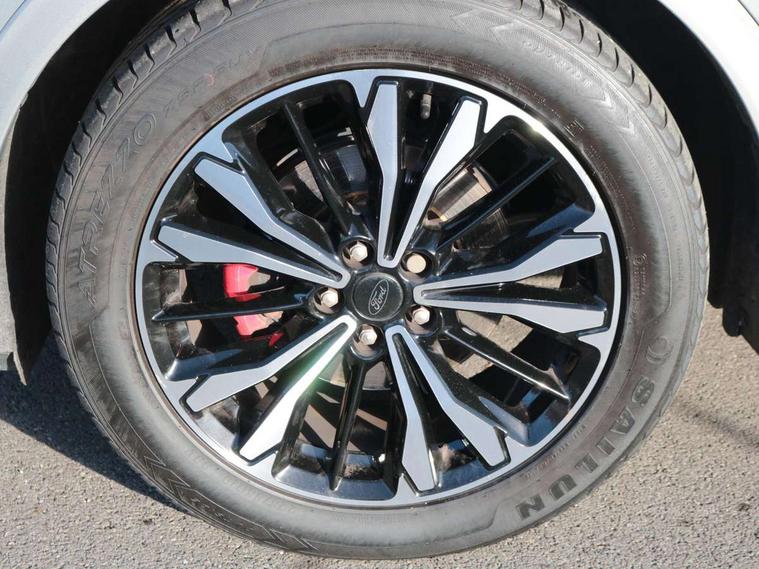 12.3" digital colour instrument cluster, Ford easy fuel, Ford SYNC 3 with 8" TFT LCD touchscreen, App Link, andriod auto/apple carPlay, emergency assistance and navigation with Ford pass connect, Front and rear parking sensors, Hands free power tailgate, Lane keeping aid with lane departure warning, Power assist steering, Rear view camera, Selectable drive modes, Service interval indicator, Sports suspension, Twist beam rear suspension, B&O premium audio system with 10 speakers and subwoofer, 2 USB ports, DAB radio/CD, Auto headlamps with high and low beam, Black roof rails, Body colour bumpers, Day/night rear view mirror, Front LED fog lamps, Large rear roof spoiler, LED daytime running lights, LED rear lights, Power folding, electrically adjustable and heated door mirrors with puddle lights, Power front/rear windows with global close, Power opening panoramic roof, Quickclear heated windscreen, Rain sensing wipers, Rear privacy glass, Rear side wing doors, Rear wiper, ST Line body styling kit with unique front and rear fascia and bumper, rear painted diffuser, front painted skid plates, dark mesh upper grille, ST Line front scuff plates, Third brake light, Twin exhausts, 2nd row sliding seats with 60:40 split, Alloy pedals, Centre console with electronic parking brake, Dark headlining and pillars, Electronic automatic temperature control (EATC), Flat bottomed leather steering wheel in sensico with red stitching, Front and rear head restraints, Heated passenger and driver seats, Heated rear seats, Heated steering wheel, Partial premium touch Sensico with black cloth inserts and red stitching, Rear centre head restraint, Single front passenger seat, Sports seats, ST Line front and rear floor mats, ST Line gear knob, 3x3 point rear seatbelts, Airbags - front driver/passenger, front and rear curtain, Drivers knee airbag, Electronic stability control (ESC) and ABS, Ford MyKey Gen 2 safety system, Manual child proof rear door locks, Post collision braking, Pre collision assist with autonomous emergency braking, Rear seat Occupancy alert, Red brake calipers, Tyre pressure monitoring system, Engine immobiliser, Keyless entry and Ford power start button (Keyless start), Locking wheel nuts, Remote powered central double locking doors, Thatcham category 1 alarm,