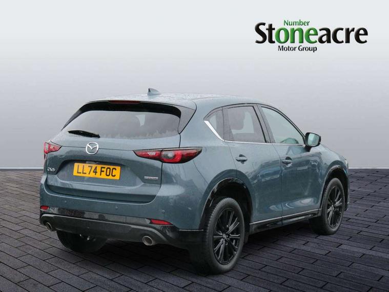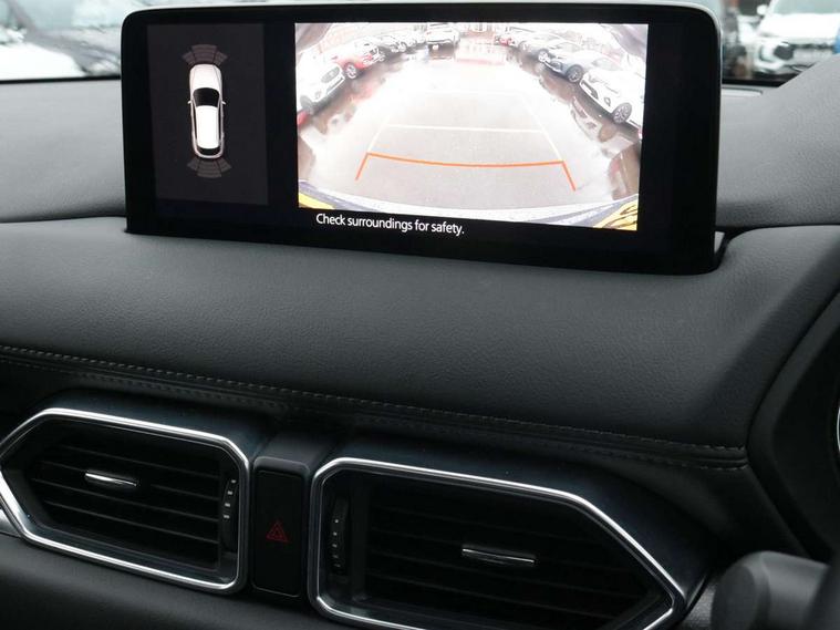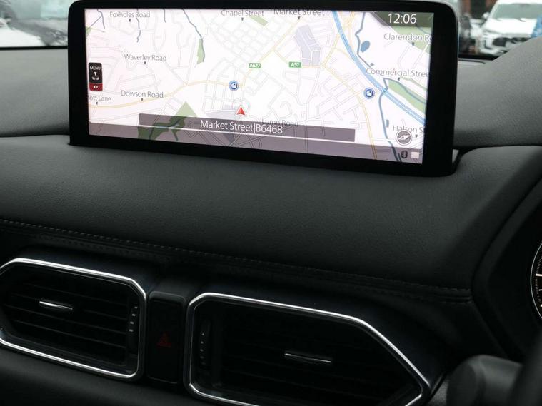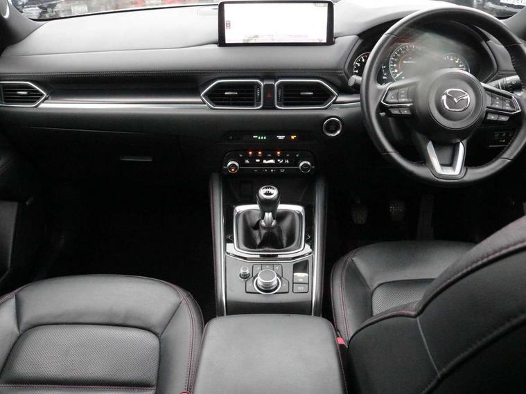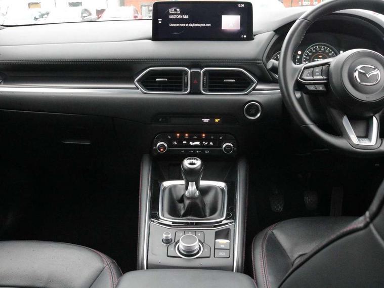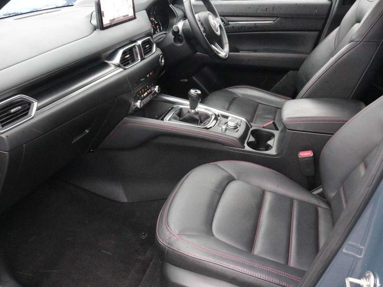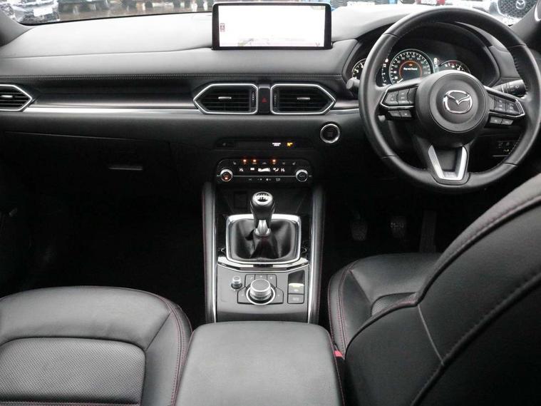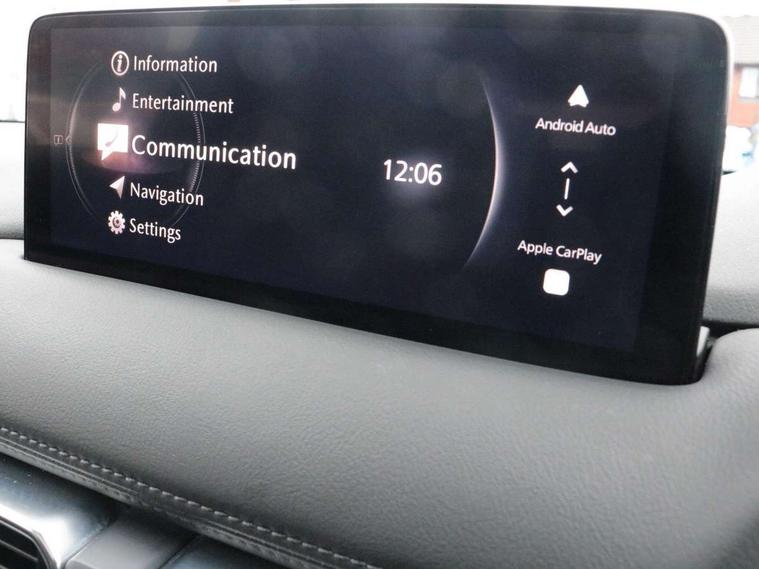 10.25" display with Mazda Connect infotainment, 7" colour TFT display, Advanced blind spot monitoring, Bluetooth connectivity with voice control, Collision prevention assist, Connected services, Cruising Traffic Support, Electric power steering, Emergency stop signalling system, Engine start/stop button, Forward collision warning, Front and rear parking sensors, Integrated navigation system, Intelligent speed assist, Lane departure warning system, Lane keep assist, Power liftgate, Qi wireless phone charging, Radar cruise control, Rear cross traffic alert, Reversing camera, Service indicator, Traffic sign recognition (TSR), Trip computer, Windscreen projected colour active driving display (HUD) with memory, Wireless apple car play/android Auto, Cylinder Deactivation, i-stop, AM/FM radio, Bluetooth audio streaming, Bose premium sound system with 10 speakers, DAB Digital radio, Multimedia Commander including separate volume dial, Steering wheel mounted audio controls, Adaptive front lighting system, Auto dimming rear view mirror, Automatic headlights, Black honeycomb door trim decoration panel, Black honeycomb interior decoration panel, Body colour roof spoiler, Coming/leaving home lighting function, Door mirror integrated indicators, Dual large chrome tailpipes, Dusk sensitive headlamps, Electric front/rear windows with one touch auto up/down, Front grille in gloss black finish, Front grille in gloss black with red accent + gloss black signature wing, Gloss black B and C pillars garnish, Gloss black door mirrors, Gloss black front and rear lower bumper mouldings, Gloss black tire arch and side mouldings, High beam assist, Intermittent rear wash/wipe, LED auto levelling, LED daytime running lights, LED front fog lights, LED Headlights, LED third brake light, Power folding and heated door mirrors, Power tilt/slide sunroof, Privacy glass (rear side windows only), Rain sensing front wipers, Rear side wing doors, Red front grille accent, Red stitching and accents on door trim, knee pad, console lid, steering wheel, shift boots, Scuff plates, Shark fin antenna, Signature LED rear combination lights, Variable intermittent front wash/wipe, Windscreen wiper de-icer, 12v electrical power outlet, 3 seat bench in 2nd row, 3 stage heated front seats, 40:20:40 Karakuri fold-flat seat system, 6 way electric adjustable passenger seat, 8 way electric driver seat with lumbar support + memory, Black roof lining, Cargo room flat floor board with waterproof undertray, Driver seat power slide, recline and height adjustment, Driver, Front passenger and two rear grab handles with coat hooks, Driver/passenger front seatback pockets, Driver/passenger sunvisors + illuminated vanity mirrors (drivers with ticket holder), Dual zone climate control, Folding centre armrest with 2 cup holders, Front and rear door pockets, Front centre storage with two cupholders, Front passenger seat power slide, recline and height adjustment, Gear shift indicator, Heated steering wheel, Humidity sensor, Illuminated glovebox, Interior dome light with integral spotlight, ISOFIX child seat anchorage points attached on outer rear seats, Karakuri tonneau cover, Leather upholstery, Leather wrapped steering wheel and gear knob, Luggage compartment LED lighting, Luggage compartment power outlet, Rear air vents, Rear headrests, Rear seat recline, Roof mounted sunglasses holder, Single front passenger seat, Three height adjustable head restraints, Tilt/height adjustable steering wheel, USB Connectivity (2x front Type-C, 2x rear Type-B), White interior LED illumination lighting, 3 point front seatbelts with pre-tensioners, 3 rear 3 point seatbelts, ABS, Advanced Smart City Brake Support - SCBS, Child locks on rear doors, Driver and front passenger side airbags, DSTC-Dynamic Stability and Traction Control, Dual front airbags, Electronic brake force distribution, Electronic parking brake with auto hold, ESP, Front and rear curtain airbags, Front passenger airbag deactivation, G-Vectoring control, Hill hold assist, Seatbelt reminder front and rear, Single stage passenger airbags, Smart brake support with forward obstruction warning, Tyre pressure monitoring system, Automatic door locking when moving off, Deadlock, Immobiliser, Power door locks, Remote central locking, Smart keyless entry, Thatcham Cat.1 alarm, 19" Black alloy wheels, Tyre repair kit,