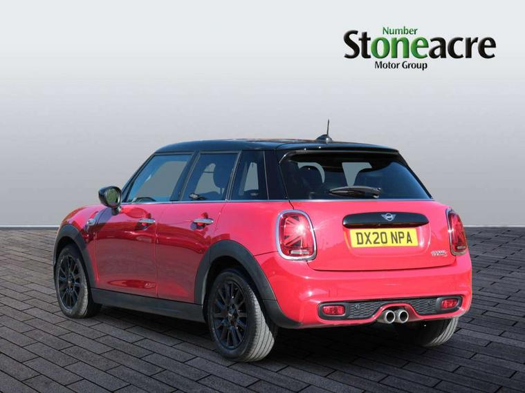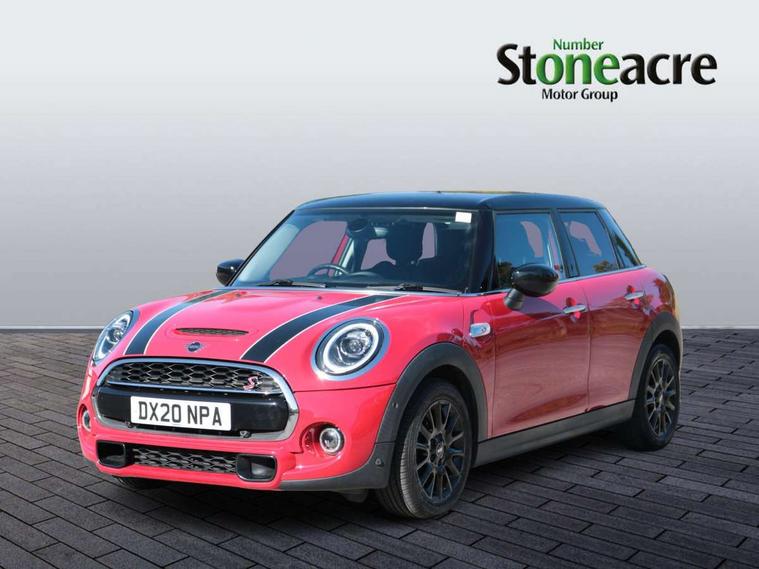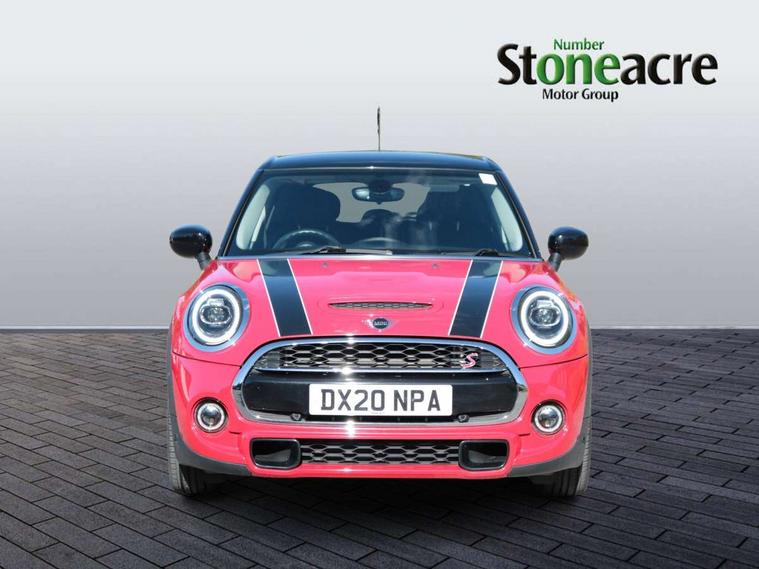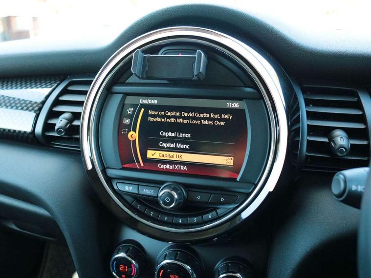 Automatic start/stop function with brake energy recuperation, Compatible mobile phone bluetooth with audio streaming, Electro-mechanical speed dependant steering assistance, Instrument cluster, Mini E-call, MINI TeleServices, On board computer, Service interval indicator, Double Vanos system, Fully variable valve control, High precision injection, Performance Control, 6.5" touchscreen with LED ring, FM tuner and DAB digital radio, Automatic headlight activation switch, Bonnet scoop, Chrome border honeycomb structure radiator grille with S badge, Chrome plated fuel cap, Dynamic brake lights, Electric front+rear windows, Heated rear window, Heated windscreen washer jets, LED headlight with closed ring and daytime driving lights, Metal door sill strips with Cooper S imprint, Model logo Cooper S on right of tailgate, Rain sensor window wipers, Rear fog lights, Rear LED lights with union jack design, Rear window wiper, Side scuttle panel with integrated indicator, Sun/heat protection glass, Two central exhaust tailpipes with chrome finisher, White indicator lenses, 12V Accessory socket in centre console, 4 lashing eyes in luggage compartment, 60/40 split folding rear seat, Chrome interior highlights, Colour line - Carbon black, Cupholders, Front and rear head restraints, Front and rear isofix with front passenger airbag deactivation, Glove compartment, Height and length steering column adjustment, Interior lighting with 12 basic colours selectable via toggle switch in roof, Leather gearshift lever and handbrake gaiters, LED reading lights, vanity mirror lights, front foot well light and spotlight on front seats, Manual air conditioning, Mechanical seat adjustment, driver seat height adjust, forward/back and front seats backrest, Mini logo projection on floor from drivers exterior mirror, Multifunction steering wheel, Satellite grey headlining, Storage compartments in doors, Storage pocket on back of front seats, Sunvisors with vanity mirrors, Tool kit, 3 point seatbelts on all five seats, 6 Airbags - front, side, head and seat belt tensioners, Anti-lock braking system (ABS), DSC - Dynamic Stability Control, Front and rear disc brakes, Hill start assist, Two tone horn, Tyre pressure monitoring system, Alarm system with tilt sensor, monitoring doors, bonnet interior and tailgate, Electronic vehicle immobiliser, Start/stop toggle with keyless go,