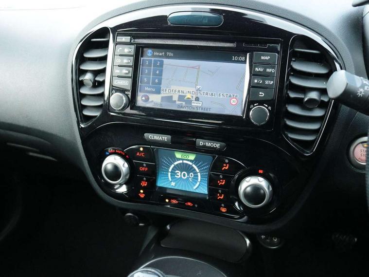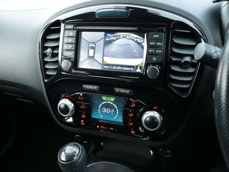 Around View Monitor, Blind spot monitoring, Bluetooth system, Colour rear view camera, Cruise control + speed limiter, Electric speed sensitive power steering, Lane departure warning system, Moving object detection, Nissan connect sat nav system, Push button starter, Service interval indicator, Trip computer, 6 speakers, Aux input, DAB Digital radio, Steering wheel mounted audio controls, Stereo radio/CD player and MP3 facility, USB port, 2 speed wipers+variable intermittent wipe, Automatic headlights, Body colour bumpers, Body colour door handles, Dusk sensor, Electric door mirrors, Electric folding door mirrors, Electric front/rear windows, Front fog lights, Heated door mirrors, LED daytime running lights, Privacy glass, Rain sensor, Rear wiper, 12V socket, 60/40 split folding rear seat, Climate control, Front armrest, Front cupholders x 2, Front door pockets with bottle holders, Front head restraints, Front seat belt pre-tensioners with load limiters, Gear shift indicator, Glovebox, Heated front seats, Height adjustable driver's seat, Internal chrome door handles, Isofix child seat preparation, Leather steering wheel and gear knob, Leather upholstery, Luggage area under floor storage box, Map reading lamp, Passenger seat back pocket, Pollen filter, Rear headrests, Rear tonneau cover integrated into tailgate, Sports seats, Steering wheel rake adjustment, ABS + EBD + EBA, Child locks on rear doors, Driver and passenger airbags, Driver and passenger side airbags, ESP + traction control, Front and rear curtain airbags, Height adjustable front seatbelts, Passenger airbag deactivate switch, Three 3 point rear seatbelts, Tyre pressure monitoring system, VDC Dynamic Vehicle Control, Warning triangle and first aid kit, Alarm, Immobiliser, Intelligent Key, Remote central locking, 17" Urban alloy wheels, Tyre repair kit,