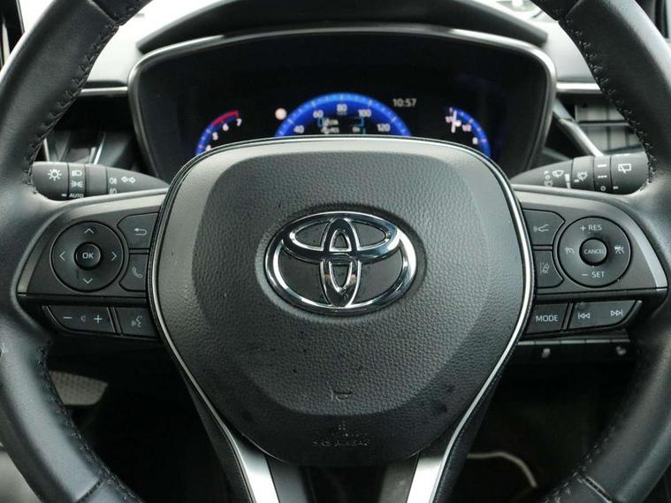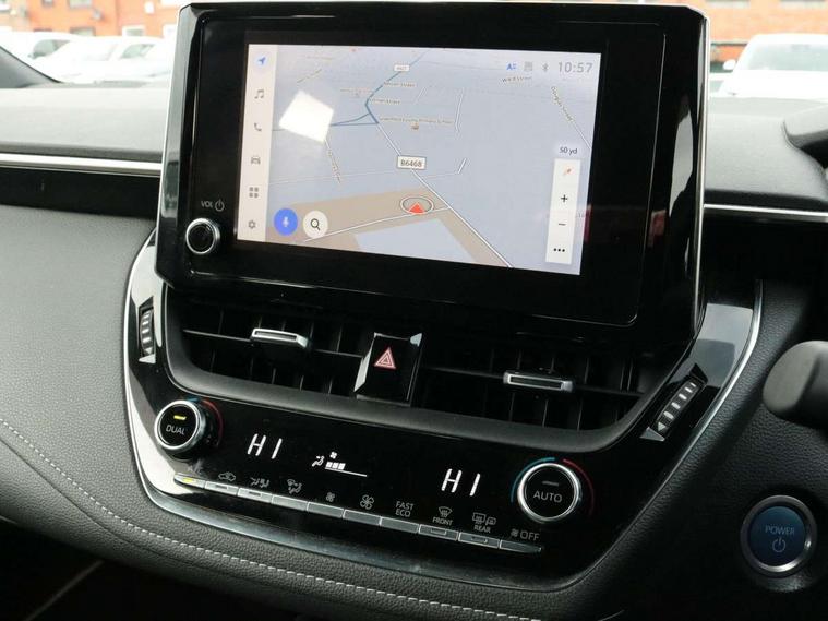 7" Multi information display screen, Bluetooth telephone connectivity, Connected car functionality upgrade, tracker, remote status and e-care, Dynamic radar cruise control (with RSA) including switch on steering wheel, E-call, Electrically assisted power steering, EV drive indicator, Intelligent park assist, Lane Departure Alert (LDA) switch on steering wheel, Memory on adjustable speed limiter, Push button start, Reversing camera, Smartphone integration with Apple CarPlay and Android auto, Gasoline particulate filter, Vehicle Stability Control (VSC), 6 speakers, 8" Touchscreen with MM19 Multimedia system and voice recognition, AM/FM radio, DAB Digital radio, Toyota touch 2 with go navigation system, USB and Aux in connectors + 12V front outlet, USB charging port in centre storage box, Aluminium roof rails, Anti-jam protection on power windows, Auto up and down function on all power windows, Automatic headlights with high beam assist, Black metallic surround on lower front grille, Black toyota logo in front, Body colour rear spoiler, Body coloured bumpers, Body coloured door mirrors, Body coloured outside door handles, Follow me home headlights, LED daytime running lights, LED front fog lights, LED Headlights, LED High mounted stop light, Manual day/night rear view mirror, Noise reduction layer on front windows, Power adjustable heated door mirrors, Power front windows, Power rear windows, Rain sensor, Rear side wing doors, Rear window defogger, Rear window wiper, Shark fin antenna, Time adjustment on intermittent wiper, Turning signal integrated indicators in door mirrors, Unique lower skirt, Unique side rocker with black insert, UV-filter on driver and passenger windows, 12v power outlet - luggage side, 3 rear headrests, 3 seat bench in 2nd row, 3 spoke leather steering wheel + gear knob, 60/40 split folding rear seat, Adjustable speed limiter switch on steering wheel, Audio, multimedia and telephone switches on steering wheel, Boot light, Boot underfloor storage, Clean air filter, Driver and front passenger personal light, Driver and passenger assist grip, Driver and passenger sun visor with mirror and light, Dual sided deck board in boot, Dual zone automatic air conditioning with ECO mode switch, Fabric armrests, Front and rear cup and bottle holders, Front and rear door pockets, Front head restraints, Front passenger seat, Heated driver and front passenger seats, Illuminated entry system in room lamp, ISOFIX seat fixing (2 fixings on rear outer seats), Leather gear shift with satin chrome on gear shift console, Manual height adjustable for driver and front passenger seat, Passenger seat back pocket, Pollen filter, Power adjustable lumbar support on driver seat, Power window switches with satin chrome inserts, Quilted fabric upholstery with grey stitches seats, Rear armrest with 2 cupholders, Rear passenger air vents, Rear passenger coat hooks (2), Rear passenger personal lights, Retractable tonneau cover with luggage partition net, Satin chrome inside door handles, Shopping bag hooks in luggage compartment, Side storage in boot, Sliding armrest on centre console box, Slow opening glovebox with lights, Tilt/telescopic steering column, Tonneau cover with under floor storage, Voice recognition switch on steering wheel, Whiplash Injury Lessening (WIL) feature (active headrest) for seats, Parking pack - Corolla, Toyota safety sense 2 pack - Corolla, 3x3 point rear seatbelts, Adjustable driver and front passenger seat belt extender to top anchor point, Anti lock braking system + Electronic brake force distribution, Brake assist function, Child locks on rear doors, Downhill Assist Control (DAC), Electronic parking brake, Emergency brake light signal (EBS), Front passenger airbag on/off switch, Front seatbelt reminder, HAC - Hill start assist control, Rear seat belt reminder, Seatbelt pretensioners and force limiters, Supplemental restraint system (SRS) 7 airbags - dual driver, dual side curtain, side impact and driver knee airbags, Traction control, Tyre pressure warning system, Acoustic vehicle alert system (AVAS), Alarm with motion sensor and immobilizer, Remote central locking + deadlocks, Smart entry, Satin chrome dash trim, Soft touch texture on upper dashboard, Stitching on lower dashboard, Space saver spare wheel, Unique wheel finish with red wheel cap,