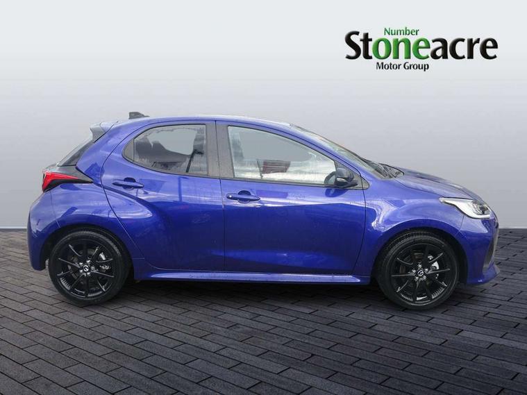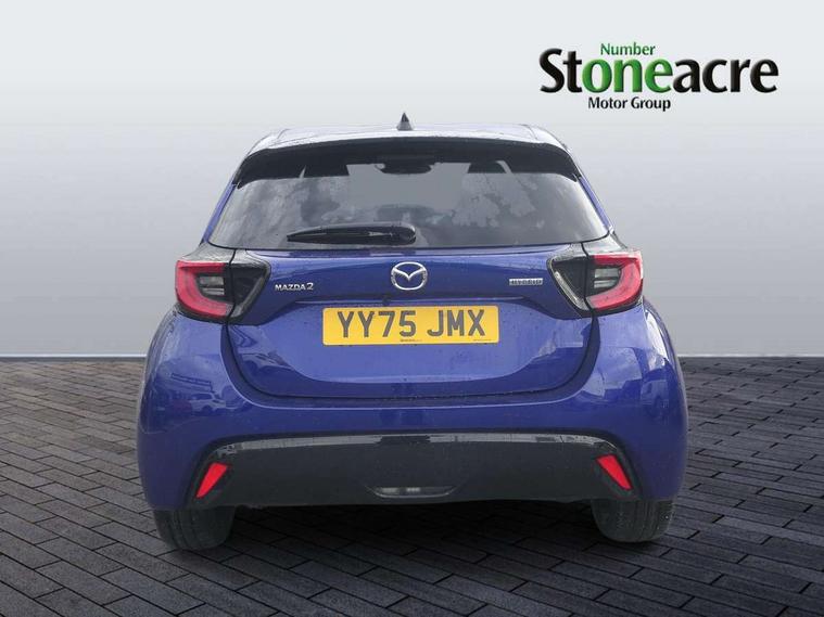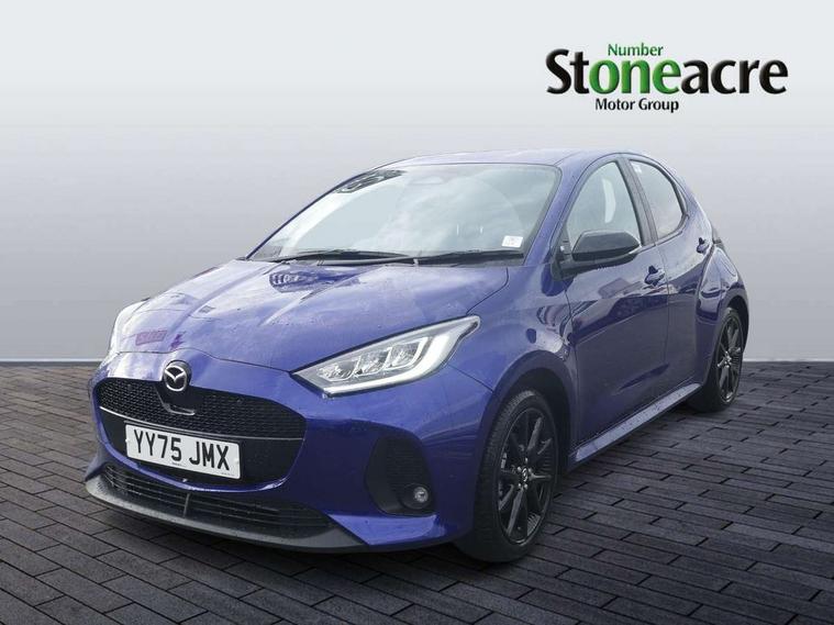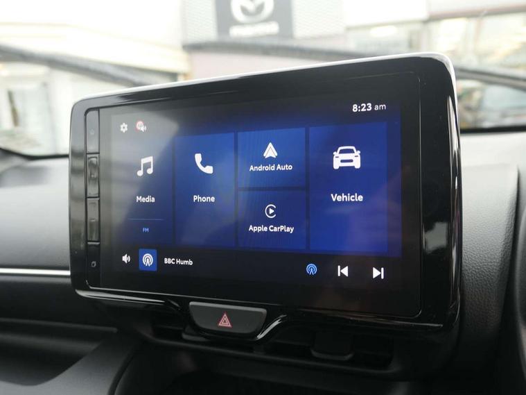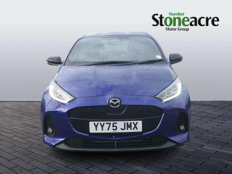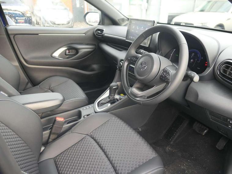 7" Digital instrument cluster with speedometer and hybrid system indicator, Adjustable speed limiter, Drive mode selector (Eco, Normal and Power), Driver attention alert system, Dynamic radar cruise control, E-call with GPS, EV drive mode, Front and rear parking sensors, Integrated bluetooth, Lane tracing assist includes Lane centering, Lane departure alert, Steering assist and Vehicle sway warning, Multi-information display, PAS, Push button start and stop, Qi wireless charging, Rear cross traffic alert with auto braking, Reversing camera, Road sign assist - RSA, Service indicator, Tailgate, Trip computer, Wireless Apple CarPlay and wired Android Auto, i-stop, 6 speaker audio system and 9" colour screen centre display, DAB Digital radio, Steering wheel mounted audio/bluetooth controls, USB type C port, Auto dimming rear view mirror, Auto folding door mirrors, Automatic high beam - AHB, Body coloured front bumper, Body coloured rear bumper with gloss black lower mouldings, Coming home function, Dusk sensing headlights, Front and rear electric windows, Gloss black electric adjustable/heated door mirrors, Gloss black front grille, Gloss black rear roof spoiler, Hybrid badge, LED front fog lights, LED headlights with manual headlight levelling and LED daytime running lights, LED rear combination light with LED turn signals, LED third brake light, Mazda unique tailgate garnish, Piano black lower window garnish, Privacy glass in rear side and rear windows, Rain sensing front wipers with adjustable sensitivity and speed, Rear side wing doors, Rear wash wiper, Shark fin antenna, Welcome lighting, 12V power outlet, 3 seat bench in 2nd row, 60/40 split fold down rear seats, Ambient lighting, Black roof lining in pillar and ceiling, Cloth/Synthetic leather upholstery, Driver, front passenger and two rear door storage, Driver, Front passenger and two rear grab handles with coathooks, Drivers seat manual slide recline and height adjustment, Drivers/front passengers with covered vanity mirrors and light, Dual zone climate control, Front centre armrest with console storage, Front head restraints, Front passenger seat manual slide, recline and height adjust, Front sport seats, Glovebox, Interior courtesy light with LED illumination, ISOFIX child seat anchorage points attached on outer rear seats, Leather handbrake, Leather wrapped gearshift, Leather wrapped steering wheel with telescopic and tilt adjustment, Luggage compartment light, Seatback pocket at rear of the front passenger seat, Single front passenger seat, Three height adjustable rear head restraints, 2x3 point front seatbelts with pre-tensioners, 3 point seatbelts on all rear seats, Airbags - driver and front passenger, Anti-lock braking system (ABS), Blind spot monitoring with rear cross parking support brake function, Collision mitigation braking system, Driver and passenger central airbags, Dynamic stability control + Traction control, Electronic parking brake with auto-hold and auto-disengage function, Emergency brake light signal (EBS), ESP, Front and rear curtain airbags, Front passenger airbag cut-off switch, Front side airbags, Hill start assist control (HAC), Manual child lock in rear doors, Pre-crash safety system - PCS, Rear parking support brake, Regenerative braking system, Seatbelt reminder audible warning, Tyre pressure monitoring system, Deadlocking system, Remote central locking, Smart keyless entry, Thatcham approved immobiliser and alarm, 17" Alloy wheels, Emergency tyre repair kit,