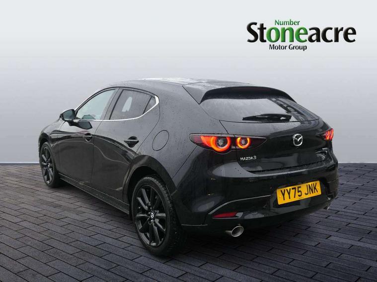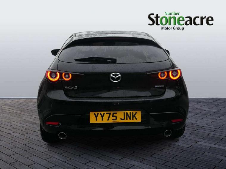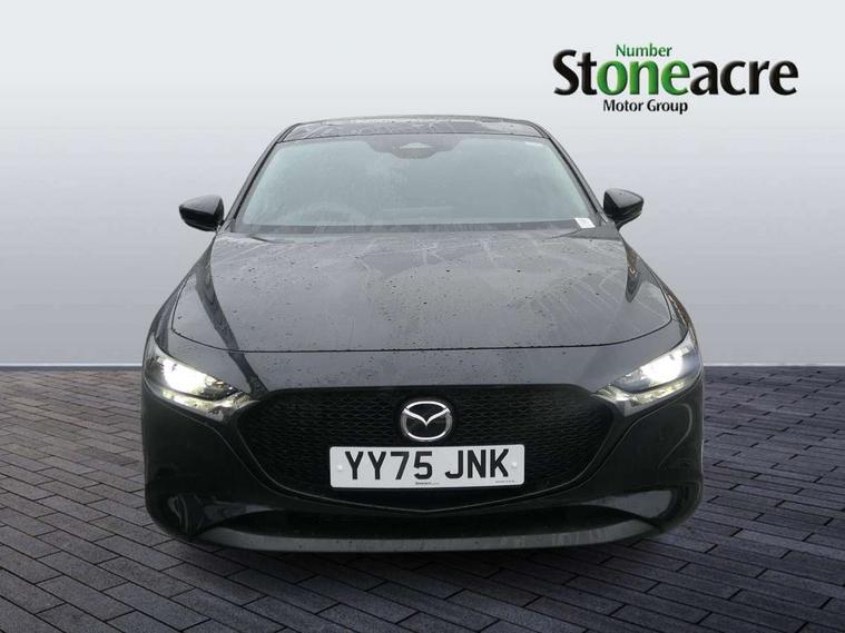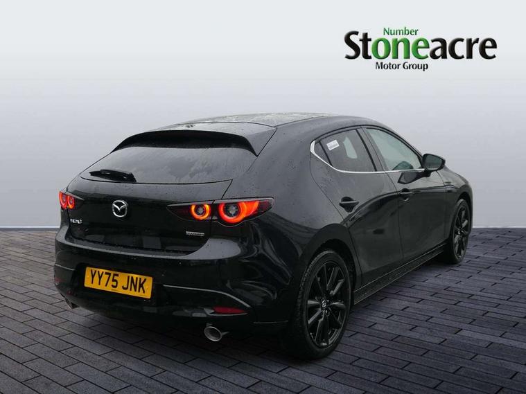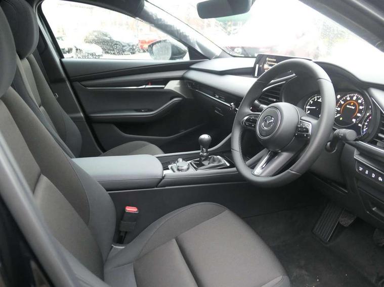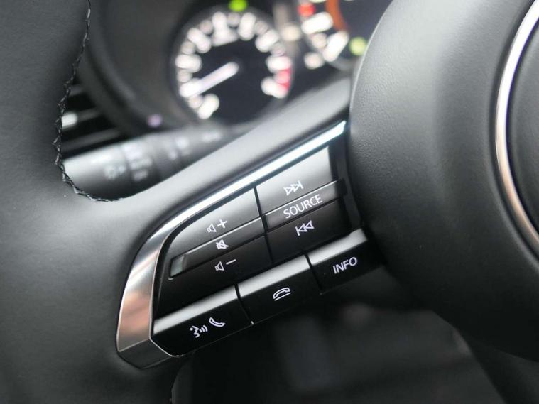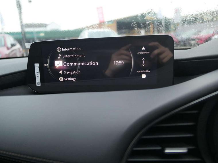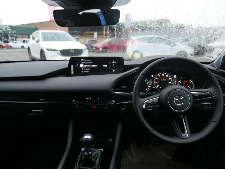 10.25" display with Mazda Connect infotainment, 7" colour TFT display, Adjustable speed limiter, Advanced E-call with GPS, Alexa in-car voice assistant, Audio transfer from bluetooth devices, Blind spot monitoring with rear cross traffic alert, Car finder, Colour active driving display inc Windscreen projected, Traffic Sign Recognition, turn-by- turn navigation and Mazda Radar Cruise Control information, Digital instrument cluster, Driver attention alert system, Emergency stop signalling system, Engine start/stop button, Front and rear parking sensor with audible and visual warning, Head up Display, Integrated bluetooth with steering wheel mounted controls, Intelligent speed assist, Lane keep assist system (LAS) with Lane departure warning system (LDWS), Mazda connected services, Mazda Navigation System with european mapping, Mazda Radar Cruise Control, Mobile App interface, Multimedia Commander, PAS, Qi wireless charging, Reversing camera, Service indicator, Tailgate, Traffic sign recognition (TSR), Trip computer, Wireless Apple CarPlay/Android Auto, i-stop, 2 USB-C ports in the front, Mazda Multimedia System with AM / FM / DAB radio with 12 Speaker Bose sound system, bose centerpoint, bassmatch+audiopilot technology, Adaptive LED Headlights, Auto dimming driver's door mirrors, B-pillar garnish in piano black, Body coloured door mirrors, Coming/leaving home lighting function, Dark metallic finish signature wing, Dual chrome tailpipes tip, Dusk sensing headlights, Electric front/rear windows with one touch/auto up/down, Electrically adjustable, heated auto power folding door mirrors, Frameless auto dimming interior rear view mirror, Front body coloured bumper with black lower bezel, Front kodo turn signal, Gloss black finish front grille, Gloss black rear roof spoiler, LED auto headlight levelling, LED indicator lights, LED third brake light, Power tilt and slide sunroof, Privacy glass with dark tinting on rear side windows and rear window, Rain sensing front wipers with adjustable sensitivity and speed, Rear colour coded bumper with gloss black lower moulding, Rear fog lights, Rear side wing doors, Signature LED daytime running lights, Signature LED rear combination lights, Speed adjustable rear wash wiper with intermittent wipe, 12v electrical power outlet, 3 seat bench in 2nd row, 60/40 split fold down rear seats, Chrome interior trim accents with steering wheel centre bezel, surround of engine start / stop button and glove box handle, Cloth upholstery, Dark cloth door panel inserts, Dark roof headlining, ceiling and pillars, Driver seat manual slide, recline, height and seat tilt adjust, Driver, front passenger and two rear door pockets, Driver, Front passenger and two rear grab handles with coathooks, Driver/passenger sunvisors + vanity mirrors (drivers side with ticket holder), Dual zone climate control air conditioning, Folding rear centre armrest with two cup holders, Front and rear courtesy lamps, Front armrest, Front centre storage with two cupholders, Front head restraints, Front passenger seatback pocket, Front passengers seat manual slide, recline and height adjustment, Gear shift indicator, Heated front seats with 3 stage setting, Illuminated glovebox, Interior colouration dashboard and doorcards in black with dark stitching, ISOFIX child seat anchorage points attached on outer rear seats, Leather wrapped gear shift knob, Leather wrapped steering wheel, LED interior light, LED light in luggage compartment, Power outlet in luggage compartment, Roof mounted sunglasses holder, Single front passenger seat, Three height adjustable rear head restraints, Tilt/height adjustable steering wheel, 3 point ELR front seatbelts with pretensioners, 3 rear 3 point seatbelts with ELR, Anti-lock braking system (ABS), Drivers knee airbag, DSC - Dynamic Stability Control, Dual stage driver and single stage passenger airbags, EBD - Electronic brakeforce distribution, Electronic parking brake with auto disengage function and auto hold function, Front and rear curtain airbags, Front passenger airbag cut-off switch, Front side airbags, Front smart city brake support, G-Vectoring control plus, Hill launch assist, Intelligent Traction Control system, Manual child lock in rear doors, Mild Hybrid system with regenerative braking, Seatbelt reminder audible warning for driver, passenger and rear seats, Tyre pressure monitoring system (TPMS), Auto door lock when driving, Remote central locking + deadlocks, Smart keyless entry, Thatcham accredited alarm and immobiliser, 18" Black alloy wheels, Emergency tyre repair kit,