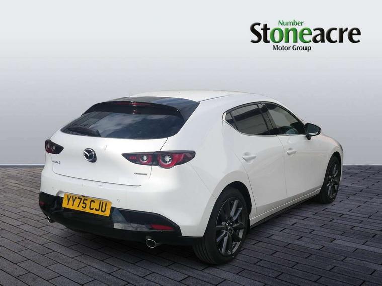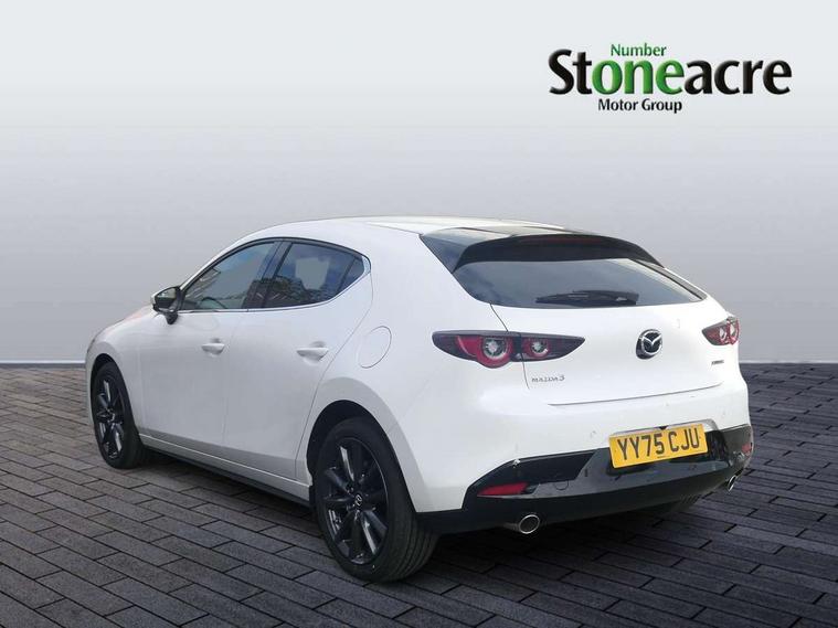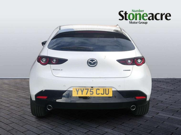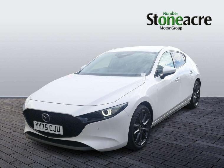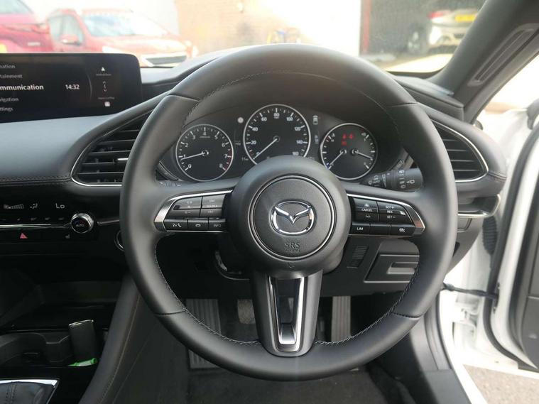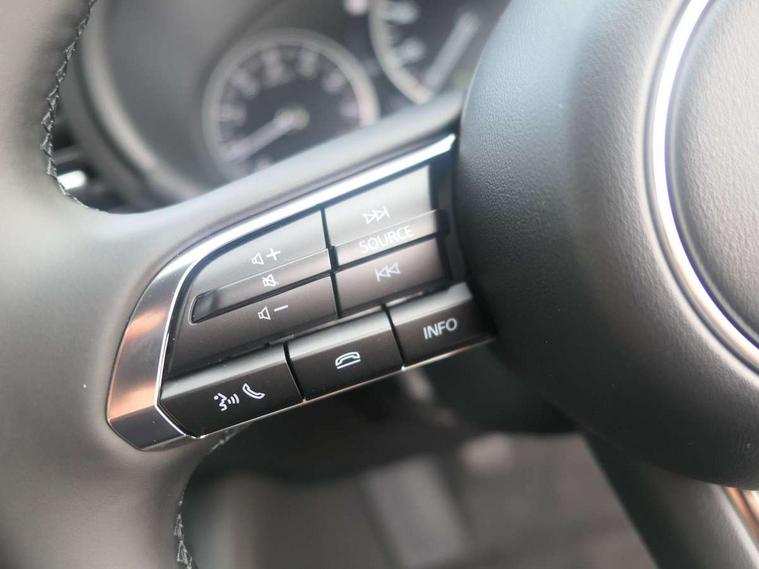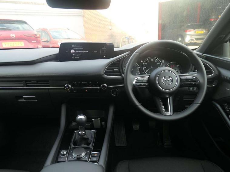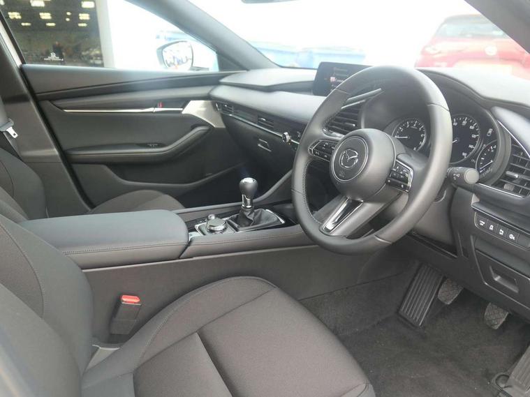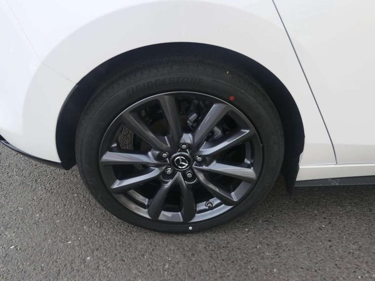 10.25" display with Mazda Connect infotainment, 7" colour TFT display, Adjustable speed limiter, Advanced E-call with GPS, Alexa in-car voice assistant, Audio transfer from bluetooth devices, Blind spot monitoring with rear cross traffic alert, Car finder, Colour active driving display inc Windscreen projected, Traffic Sign Recognition, turn-by- turn navigation and Mazda Radar Cruise Control information, Digital instrument cluster, Driver attention alert system, Emergency stop signalling system, Engine start/stop button, Front and rear parking sensor with audible and visual warning, Head up Display, Integrated bluetooth with steering wheel mounted controls, Intelligent speed assist, Lane keep assist system (LAS) with Lane departure warning system (LDWS), Mazda connected services, Mazda Navigation System with european mapping, Mazda Radar Cruise Control, Mobile App interface, Multimedia Commander, PAS, Qi wireless charging, Reversing camera, Service indicator, Tailgate, Traffic sign recognition (TSR), Trip computer, Wireless Apple CarPlay/Android Auto, Cylinder Deactivation, i-stop, 2 USB-C ports in the front, Mazda Multimedia System with AM / FM / DAB radio with 12 Speaker Bose sound system, bose centerpoint, bassmatch+audiopilot technology, Adaptive LED Headlights, Auto dimming driver's door mirrors, B-pillar garnish in piano black, Body coloured door mirrors, Coming/leaving home lighting function, Dark metallic finish signature wing, Dual chrome tailpipes tip, Dusk sensing headlights, Electric front/rear windows with one touch/auto up/down, Electrically adjustable, heated auto power folding door mirrors, Frameless auto dimming interior rear view mirror, Front body coloured bumper with black lower bezel, Front kodo turn signal, Gloss black finish front grille, Gloss black rear roof spoiler, LED auto headlight levelling, LED indicator lights, LED third brake light, Privacy glass with dark tinting on rear side windows and rear window, Rain sensing front wipers with adjustable sensitivity and speed, Rear colour coded bumper with gloss black lower moulding, Rear fog lights, Rear side wing doors, Signature LED daytime running lights, Signature LED rear combination lights, Speed adjustable rear wash wiper with intermittent wipe, 12v electrical power outlet, 3 seat bench in 2nd row, 60/40 split fold down rear seats, Chrome interior trim accents with steering wheel centre bezel, surround of engine start / stop button and glove box handle, Cloth upholstery, Dark cloth door panel inserts, Dark roof headlining, ceiling and pillars, Driver seat manual slide, recline, height and seat tilt adjust, Driver, front passenger and two rear door pockets, Driver, Front passenger and two rear grab handles with coathooks, Driver/passenger sunvisors + vanity mirrors (drivers side with ticket holder), Dual zone climate control air conditioning, Folding rear centre armrest with two cup holders, Front and rear courtesy lamps, Front armrest, Front centre storage with two cupholders, Front head restraints, Front passenger seatback pocket, Front passengers seat manual slide, recline and height adjustment, Gear shift indicator, Heated front seats with 3 stage setting, Illuminated glovebox, Interior colouration dashboard and doorcards in black with dark stitching, ISOFIX child seat anchorage points attached on outer rear seats, Leather wrapped gear shift knob, Leather wrapped steering wheel, LED interior light, LED light in luggage compartment, Power outlet in luggage compartment, Roof mounted sunglasses holder, Single front passenger seat, Three height adjustable rear head restraints, Tilt/height adjustable steering wheel, 3 point ELR front seatbelts with pretensioners, 3 rear 3 point seatbelts with ELR, Anti-lock braking system (ABS), Drivers knee airbag, DSC - Dynamic Stability Control, Dual stage driver and single stage passenger airbags, EBD - Electronic brakeforce distribution, Electronic parking brake with auto disengage function and auto hold function, Front and rear curtain airbags, Front passenger airbag cut-off switch, Front side airbags, Front smart city brake support, G-Vectoring control plus, Hill launch assist, Intelligent Traction Control system, Manual child lock in rear doors, Mild Hybrid system with regenerative braking, Seatbelt reminder audible warning for driver, passenger and rear seats, Tyre pressure monitoring system (TPMS), Auto door lock when driving, Remote central locking + deadlocks, Smart keyless entry, Thatcham accredited alarm and immobiliser, 18" Grey alloy wheels, Emergency tyre repair kit,