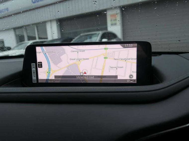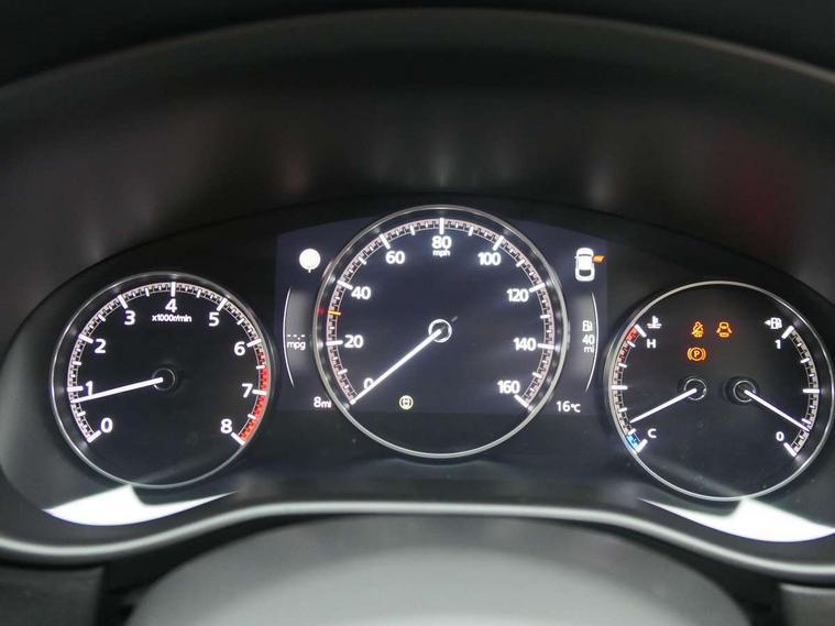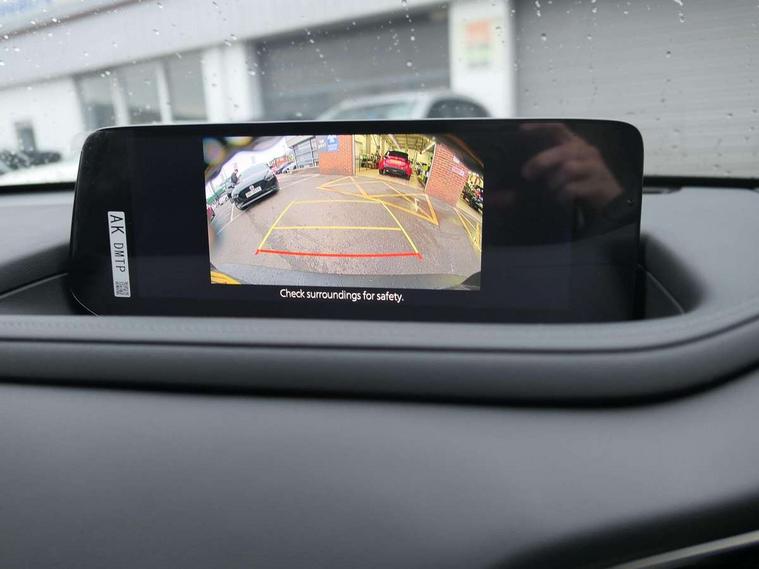 10.25" display with Mazda Connect infotainment, 7" TFT Colour driver instrument panel display, Adaptive cruise control (Mazda radar cruise control), Blind spot monitoring with rear cross traffic alert, Driver attention alert system, E-call with GPS, Emergency stop signalling system, Engine start/stop button, Front and rear parking sensors, Integrated Alexa Voice Assistant, Integrated bluetooth, Integrated Mazda navigation system, Intelligent speed assist, Lane keep assist system (LAS) with Lane departure warning system (LDWS), Mazda connected services, PAS, Power lift gate, Qi wireless charging, Reversing camera, Service indicator, Tailgate, Traffic sign recognition, Trip computer, Windscreen projected colour active driving display (HUD), Wireless Apple CarPlay/Android Auto, Cylinder Deactivation, i-stop, 2 x USB Type-C inputs, AM/FM and DAB radio, Bose surround sound system with 12 Speaker, Bose center point, Bass match and audio pilot technology, Multimedia Commander including separate volume dial, Steering wheel mounted audio/bluetooth controls, Adaptive LED Headlights, Auto dimming driver's door mirror, B-pillar and C-pillar garnishes in gloss black finish, Body coloured, electrically adjustable, heated auto power folding door mirrors with integrated indicators, Chrome finish signature wing in front grille, Coming/leaving home lighting function, Dual bright finish exhaust tip trim, Dusk sensing headlights, Electric front/rear windows with one touch auto up/down, Frameless auto dimming interior rear view mirror, Front kodo turn signal, Gloss black front grille, Gloss black rear roof spoiler, High beam assist, LED auto headlight levelling, LED signature daytime running lights, Privacy glass (rear side windows and rear screen), Rain sensing front wipers with adjustable speed and intermittent wipe, Rear fog lights, Rear side wing doors, Rear wiper, Signature LED rear combination lights, Third brake light, 12V power outlet in centre console, 3 seat bench in 2nd row, 60/40 split fold down rear seats, Bright interior trim accents with steering wheel centre bezel, surround of engine start / stop button and glove box handle, Cloth upholstery with interior accents, Dark cloth door panel inserts, Dashboard, door cards and front centre armrest in black cloth, Driver and front passenger visors with covered vanity mirror and driver ticket holder, Driver seat manual slide, recline, height and seat tilt adjust, Driver, front passenger and two rear door storage, Driver, Front passenger and two rear grab handles with coathooks, Dual zone climate control air conditioning with rear air vents, Folding rear centre armrest with two cup holders, Front and rear (x3) head restraints, Front and rear LED lighting, Front armrest, Front centre storage with two cupholders with lid, Front passenger seatback pockets, Front passengers seat manual slide, recline and height adjustment, Gear shift indicator, Glovebox illumination, Heated front seats with 3 stage setting, ISOFIX child seat anchorage points attached on outer rear seats, Leather wrapped gear shift knob, Leather wrapped steering wheel with telescopic and tilt adjustment, LED luggage compartment lighting, Light roof headlining and pillars, Roof mounted sunglasses holder, Single front passenger seat, 3 point ELR front seat belts x2 with pretensioners, 3 point ELR rear seat belts, Anti-lock braking system (ABS), Drivers knee airbag, DSC - Dynamic Stability Control, Electronic parking brake with auto disengage function and auto hold function, Front and rear curtain airbags, Front dual stage driver and single stage front passenger airbags, Front passenger airbag cut-off switch, Front side airbags, Front smart city brake support, G-Vectoring control plus, Hill launch assist, Manual child lock in rear doors, Mild Hybrid system with regenerative braking, Seatbelt reminder for driver/front passenger and rear seats, Traction control system (TCS), Tyre pressure monitoring system (TPMS), Remote central locking with deadlocking and automatic door lock when driving, Smart keyless entry, Thatcham accredited alarm and immobiliser, 18" Silver metallic alloy wheels, Emergency tyre repair kit,