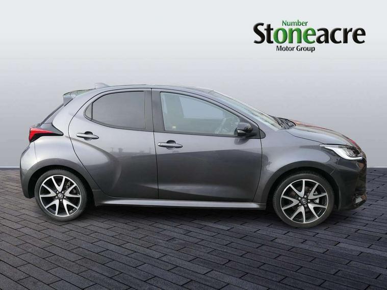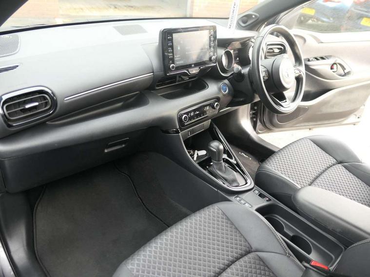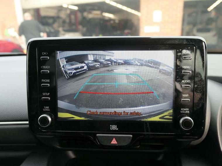 Adaptive cruise control, Adjustable speed limit with speed warning, Bluetooth connectivity, Colour binocular inspired displays with digital speedometer, E-call, Electric power steering, Hybrid energy display, Multi information display switches on steering wheel, Reversing camera, Smartphone integration with Apple CarPlay and Android auto, Vehicle Stability Control (VSC), 8" Multimedia display touch screen, JBL Premium sound system with 8 speakers, Toyota Touch 2 with DAB, USB connection, Acoustic windscreen glass, Automatic headlights, Automatic windscreen wipers with rain sensor, Body coloured door mirrors, Electric adjustable heated door mirrors, Follow me home headlights, Front auto power windows with anti jam protection, Full LED rear lights, LED daytime running lights, LED front fog lights, LED Headlights, LED High mounted stop lamp, Painted front grille, Rear auto power windows with anti jam protection, Rear privacy glass, Rear side wing doors, Rear spoiler, Rear wiper, Shark fin antenna, Turning signal integrated indicators in door mirrors, 3 adjustable rear headrests, 3 seat bench in 2nd row, 3 spoke leather steering wheel, 60/40 split folding rear seat, Active headrests, Adjustable boot height, Coat hooks in rear grab handles, Cup holders (2 front & door), Data Communication Module (DCM) connected services, Dual zone automatic air conditioning, Fabric seat with partial synthetic leather upholstery, Front armrest, Front sport seats, Glovebox, Height adjustable driver's seat, Height adjustable passenger seat, Isofix seat fixing, Leather gearshift, Map pockets on the backs of the front seats, Pollen filter, Shopping bag hooks, Single front passenger seat, Tilt/telescopic steering column, 3 point seatbelts on all rear seats, ABS+EBD+Brake assist, Electronic parking brake, Emergency brake light system (EBS), Front passenger airbag on/off switch, Front seatbelt reminder, Hill start assist control (HAC), Rear child proof door locks, Rear seat belt reminder, Supplemental Restraint System (SRS) 8 airbags: Driver & passenger's airbags, dual side curtain airbags, side impact airbags, front centre airbag, Toyota Safety Sense 2, Precollison + Night time Pedestrian & Cyclist Detection, Lane Trace Assist, Auto High Beam, Intelligent ACC & Road Sign Assist, Tyre pressure warning system, Alarm/immobiliser, Keyless smart entry with push button start, Remote powered central double locking doors, Piano black interior trim, Soft touch instrument panel, Space saver spare wheel,