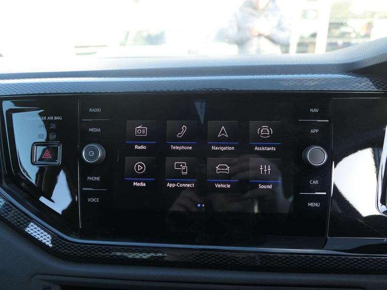 Advanced driver attention and drowsiness monitor, Bluetooth mobile phone interface, Dynamic road sign display, Emergency call service, Multifunction front facing camera for distance control, Park distance control, Power assisted speed sensitive steering, Predictive adaptive cruise control without follow-to-stop and speed limiter, Preparation for navigation system with media and internet package, Preparation for We connect and We connect plus, Rear view camera, Speedo and rev counter, electronic odometer, trip, service interval display and exterior temperature gauge, Standard rear axle, Travel Assist - Lane keeping system and traffic jam assist, Travel assist including emergency assist, Trip computer, Warning signal and warning light for front and rear seatbelts not fastened, Washer fluid level indicator, Wireless app connect, Front wheel drive, Rear shock absorpion, Start-stop system with battery regeneration (recuperation - energy recovery during braking), DAB Digital radio, Diversity antenna for FM reception, Front and rear 6 speakers, Automatic dimming interior rear view mirror, Automatic headlight control with LED separate daytime running lights with coming/leaving home function, Body colour bumpers with chrome inserts, Body colour door handles, Body colour door mirrors, Electric front windows, Engine badge deletion, Headlight range adjustment, Heat insulating and laminated safety glass windshield, LED Headlights, LED rear combination lamps, Power folding adjustable/heated exterior mirrors and front passenger exterior mirror lowering function, Rain sensor, Rear electric windows, Rear fog light, Rear side wing doors, Rear tinted glass from B-pillar backwards approx 65% tinted, Rear windscreen washer and wiper with interval delay, Third brake light, 12V power socket in centre console, 2 front and 2 rear reading lights with switch off delay and dimmer, 2 USB-C ports in the front, 2 USB-C charging sockets on the center console in the rear, 3 rear head restraints, 60/40 split folding rear seat and rear seat bench not split, Ceramique roof lining, Chrome plated radiator grille inserts, air vent surrounds and light switch surrounds, Door and side trim panel, Driver and front passenger seat height adjustment, Driver/passenger sunvisors with illuminated vanity mirrors, Front centre armrest, Front seat backrest storage pockets, Front standard seats, Handbrake lever handle in leather, Hartley/Thomas cloth upholstery, Headliner in recycled material, Isofix child seat preparation easy-fit (for two outer rear seats, and front passenger seat) compatible with I-size, Leather trimmed gear knob, Luggage compartment cover, Luggage compartment lighting, Removable luggage compartment floor, Single front passenger seat, Standard climatic zones, Standard pedal cluster, Three spoke leather wrapped multifunction steering wheel with shifting paddles, Light and vision pack - Polo, 3 point height adj front seatbelts + pretensioners, 3 point seat belt for centre rear seat, 3 point seatbelts, outer rear with ECE lable, ABS, Driver and front passenger airbag with front passenger airbag deactivation, Drivers and front passengers safety optimised head restraints, ESC (Electronic stability control) + EDL (Electronic Differntial lock) and ASR (Traction control), Extended and predictive pedestrian/ cyclist protection, Front assist with autonomous emergency braking (for Adaptive Cruise Control ACC up to 130 mph), Front curtain and side airbags with center airbag, Front disc brakes, Hill hold control, Manual child lock in rear doors, Rear drum brakes, Single tone horn, Tyre pressure loss indicator, Alarm with interior protection, Anti-theft alarm system with interior monitoring, backup horn, and towing protection, Anti-theft wheel bolts, Electronic engine immobiliser, Lava stone black gloss/matt decorative inserts in dash and front door panels, 16" Torsby alloy wheels, Low rolling resistance tyres,