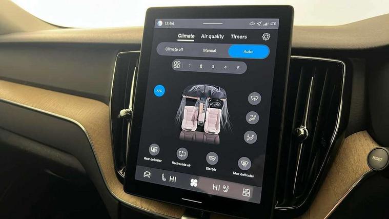11.2" centre console touch screen, 12.3" Progressive Driver Display, 360 degree surround view parking camera with side proximity sensors, Adaptive cruise control, Adjustable steering wheel force, Android auto (Wired), Apple carplay (wired), Bluetooth handsfree system, Drive mode settings, Driver alert control with lane keeping aid, Emergency services call system, Front and rear park assist, Google Automotive Services, Intelligent speed assistance, Oncoming Lane Mitigation, PAS, Power operated tailgate with handsfree opening and closing, Service interval indicator, Speed limiter, Speed sensitive steering, Trip computer, Volvo cars services with app, Volvo on call with App, Wireless/Inductive Mobile Phone Charging, 2 phase on board charger 6.4kW (home charging limited to 3.7kW), 6m 3 phase 16amp Type 2 / mode 3 charge cable, 8 speed automatic transmission with start/stop + manual change functions, Electric rear axle drive, Recharging port located in nearside front wing, DAB Digital radio, Low speed exterior sound speaker, Premium Sound by Harman Kardon, dirac unison, dolby pro logic II surround sound, 13 speakers/600W output and fresh air subwoofer, Steering wheel remote infotainment controls, Adaptive brake lights with high level LED brake lights, Auto dimming interior + exterior mirrors, Automatic headlight levelling system, Automatic LED Headlights + Active high beam incorporating daytime running lights, Electric adjustable/heated/auto power folding door mirrors, Electric front+rear windows, Front aluminium tread plates, Heated front windscreen, High gloss black door mirrors and window surround, High gloss black front and rear bumper decoratives, High gloss black mesh front grille with high gloss black surround, Home safe and approach lighting, Integrated roof rails in high gloss black, Puddle lights, Rain sensor with automatic windscreen wiper activation, Rear side wing doors, Rear wiper, Roof antenna, Roof spoiler, Tinted windscreen, Visible VIN plate, 12V socket in front tunnel console and luggage compartment, 2 zone electronic climate control with Clean zone air quality system and pollen filter, 3 seat bench in 2nd row, 3 Spoke tailored steering wheel with chrome trim, A-pillar parking ticket holder, Air purifier particulate matter (PM) 2.5 filter, B Pillar ventilation, Bright metal luggage scuff plate, Centre console cupholders and storage, Charcoal floor mats, Front and rear courtesy lights, Front and rear door pocket illumination, Front cupholder illumination, Front footwell illumination, Front reading lights, Front seat cushion extensions, Glovebox compartment with illumination, Head restraints for all seats, Heated front seats, Heated steering wheel, Height/reach adjustable steering column, Illuminated luggage compartment, Illuminated vanity mirrors + ticket holder, Inner door release handle illumination, ISOFIX attachment on outer rear seats, Load cover, Load protection net, Multi directional lumbar support, Power driver seat with memory + exterior mirrors memory, Power height adjustable passenger seat, Power passenger seat with memory, Quilted nordico leather upholstery, Rear armrest with cupholder, Rear footwell and front and rear side step illumination, Rear reading lights, Rear seat concealed storage, Single front passenger seat, Tailgate illumination and ambient door lighting, Underfloor stowage compartment, Versatile split folding rear seat - 60/40, Driver assist pack without Adaptive cruise control - XC60, 5 three point seatbelts, City safety with steering support with Pedestrian + cyclist + front collision warning with full auto brake and rear auto brake, Drivers knee airbag, Dual stage driver/passenger airbags, Electronic parking brake with auto hold, First aid kit, Front seats SIPS airbags, Hill descent control - Off-road drive mode, Hill start assist, IC (Inflatable Curtains) - Full Length, Passenger airbag cut-off device, Power child locks on rear doors, Road sign information display, Run off Road Mitigation, Run off Road Protection, Seatbelt reminder and pretensioners, SIPS (Side Impact Protection System), Slippery road and hazard light alert, Stability and Traction Control with Spin control, Engine Drag Control and Corner Traction Control, Tyre pressure monitoring system, Vehicle deceleration control with Anti-lock Brake System, Electronic Brake Distribution and Emergency Brake Assist, Warning triangle, WHIPS whiplash protection system - front, Anti-theft alarm including immobiliser/volume sensor + level sensor, Key integrated remote control central locking + fuel flap with deadlocking system and auto open/close power windows, Keyless Drive (includes Keyless Entry and Keyless Start), Locking wheel nuts, Private locking for tailgate, Summer tyres, Tyre sealant kit + 12v compressor,