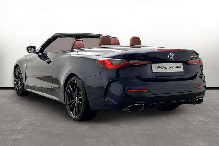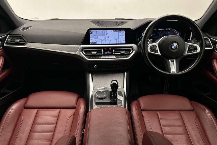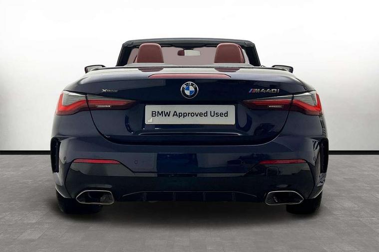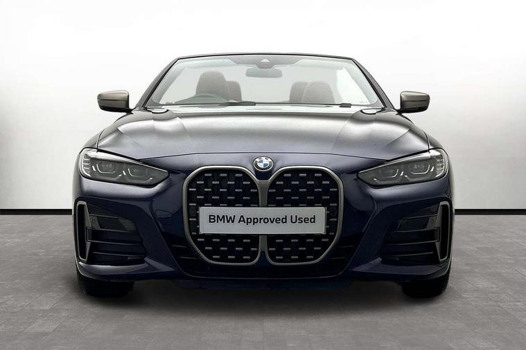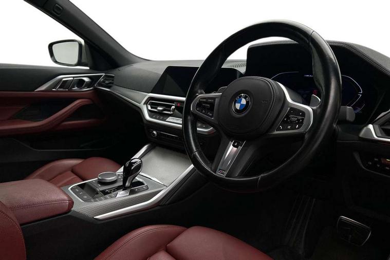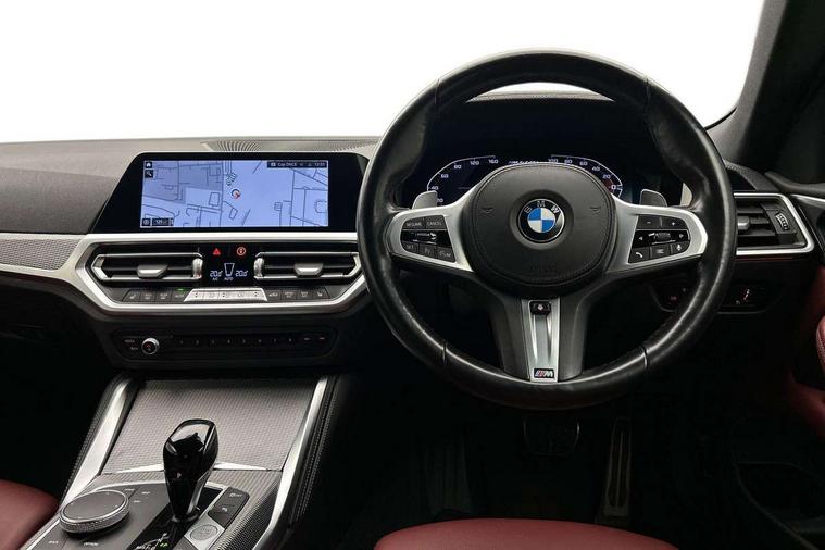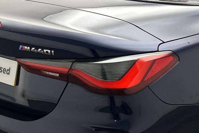 Active guard plus, Attentiveness assist, Auto start-stop, BMW ConnectedDrive online services, BMW iDrive controller on centre console, BMW Live Cockpit Professional Nav with 12.3" instrument display + 10.25" display, Intelligent Voice Assist, BMW OS 7, HDD, 2USB, 4G LTE connect, BMW service history, BMW Teleservices, Brake pad wear indicator in front and rear, Check Control warning system for monitoring of lights and door/luggage compartment open warning, Condition based service, Electric power steering with Servotronic steering optimised at all speed ranges, Gearshift time display in manual mode, Instrument cluster with speedometer with mph readout, tachometer, fuel gauge and oil temperature gauge, Integrated owners handbook, Oil sensor for level and grade, warning by check control system, On board computer - average speed, fuel consumption, outside temp display with acoustic warning, clock/date, service interval, odometer/trip meter, Optimum shift indicator, Variable sport steering, 48V Mild hybrid technology, 8 speed automatic steptronic transmission with gearshift paddles, Adaptive M suspension, Balanced 50/50 weight distribution, Driving experience modes - Comfort, ECO PRO, Sport and Sport+ mode, Low centre of gravity, M Sport differential, Petrol Particulate Filter, Stroke dependent dampers, xDrive system permanent all-wheel drive variable torque distribution, DAB tuner, Electronic service booklet, Acoustic glazing, Automatic headlight beam throw control with load dependent regulating reaction, dynamic compensation of braking dive and acceleration squat, Automatic windscreen wipers and automatic headlight, Automatically dimming electrochromatic rear view mirror, BMW emblem on engine compartment lid and tailgate, Body colour fuel filler flap, Body colour roof fin, Brushed aluminium inserts in the front door sill finishers with BMW designation, Dynamic brake lights, Electric windows - front and rear, with open/close fingertip control, anti trap facility and comfort closing function all round, Exterior mirrors - electrically folding with anti-dazzle, Fading support, Follow me home headlights, Front and rear bumper system, Front apron plastic in body colour, Green tinted heat protection glazing, Illuminated bow type door handles in body colour drivers side with door lock, Interior rear view electrochromatic mirror with automatic anti dazzle function, LED daytime running lights, Licence plate panel integrated into front bumper and tailgate, Lightweight engineering, M designation on front side panels, left and right, One piece front bumper cover including towing eye cover in body colour, Preparation for high beam assistant, Rear boot, Reversing light, Side frame decorative moulding black matt, Third brake light, Twin exhaust tailpipes x2, Two part LED tailights in L-shape with components in smoked glass, brake light, LED turn indicator and rear fog light, Visible VIN plate, Welcome lights in interior and door handle area, Widened track and increased camber values for max transverse dynamics, agility and steering precision, Window recess cover black high gloss, Windscreen wipers with integrated heated washing jets, xDrive designation on left tailgate, 12V power socket in front centre console, 2 2nd row folding seats, 2 front cupholder in centre console with clamping elements and matt black inlay, 2 Rear seat headrests, 2nd row centre armrest with built-in cupholders, 3 spoke M sport leather multifunction steering wheel, 3 zone automatic air conditioning, 4 pieces lashing eyelets in luggage compartment, Ambient lighting with welcome carpet light, Armrest integrated in front and rear door trim + front centre console armrest, Electric seat adjustment with memory, Four grab handles integrated in roof lining, Front and rear door pockets, Front and rear footwell lights, Front and rear reading lights, Front headrests, Front sport seats, Heated driver and front passenger seats, Height adjustable mechanically and infinitely variable steering column, Illuminated armrest storage compartment, Illuminated glove compartment with separate small compartment, Luggage compartment light, Make-up mirror lights, Single front passenger seat, Storage compartment in rear centre console, Sunvisors with vanity mirrors and ticket pocket, Toolkit located in luggage compartment, USB type - C cable charging function in the rear centre console, Velour front floor mats, Connected professional package - 4 Series, M sport exterior styling pack - 4 Series M440i, 2 x 3-point rear seatbelts, Battery safety cut-off, BMW emergency call, Brake energy regeneration, Braking pre-tensioning, Child proof rear door locking, Child seat ISOFIX attachment for the two outer rear seats, Coasting in idle in ECO PRO mode, Cornering brake control (CBC), Crash sensor activating of airbags, Unlocking doors, hazard warning lights, interior light, safety battery terminal, Driver and front passenger side airbags, integrated in the door side seat backrest bolsters for all seat variants, Driver/Front Passenger airbags, Dry braking, Dynamic brake control, Dynamic stability control + (DSC+) - Anti-lock Braking System (ABS) with brake assist and cornering brake control + Automatic Stability Control (ASC), Dynamic Traction Control - DTC, Electric parking brake including automatic hold function and automatic release of the parking brake when driving off, Electronic differential lock control (EDLC), Front and rear ventilated brake disc, Front passenger manual airbag deactivation, Head airbags for all 4 outer seats, Hill start assistant, M Sport seatbelts, Seat belt security check for driver and front passenger, Seat belt with belt stopper, pyrotechnic belt tensioners and belt force limiters, Side impact protection, Tyre pressure monitoring with three level warning strategy, Warning triangle and first aid kit, Alarm system (Thatcham 1) with remote control and electronic engine immobiliser, Central locking switch for all doors, fuel filler cap and luggage 
