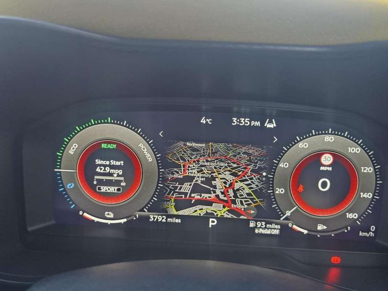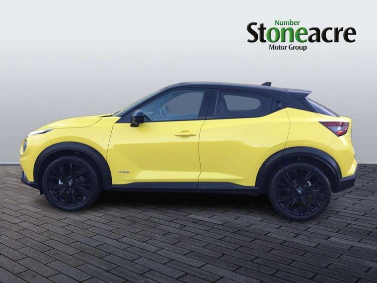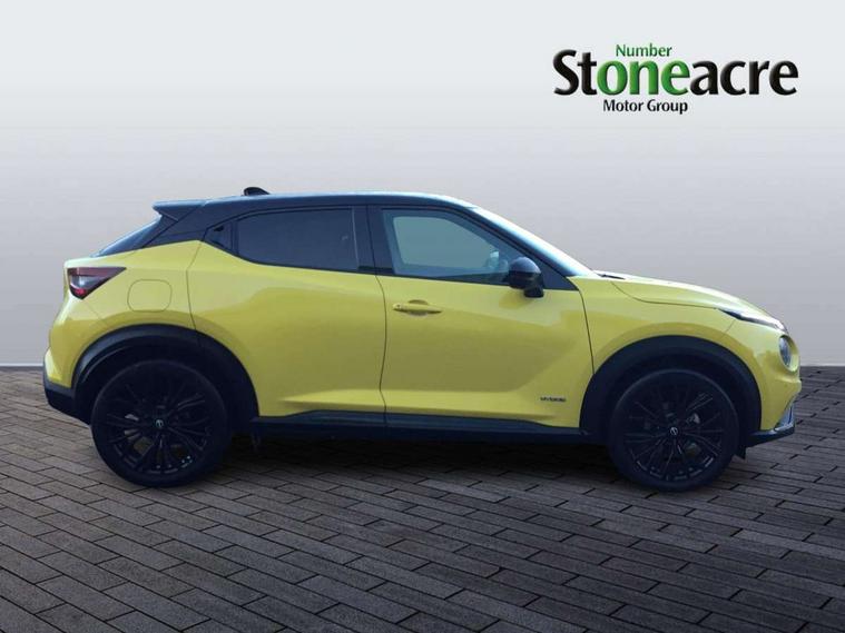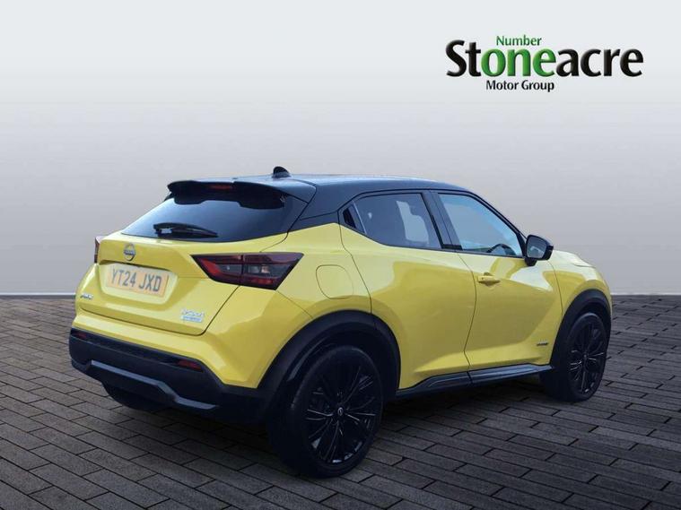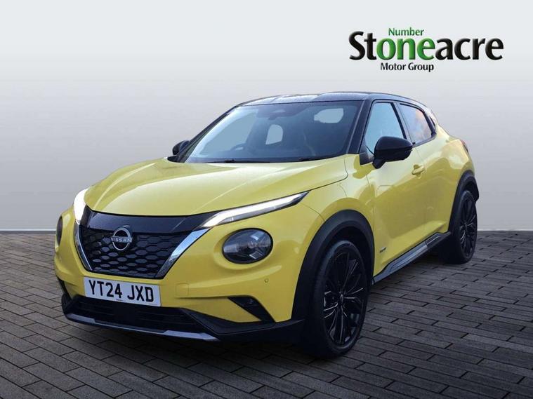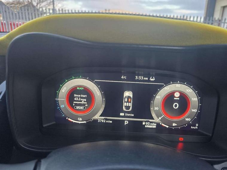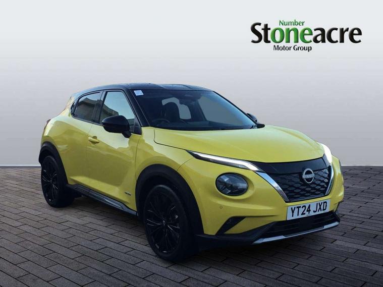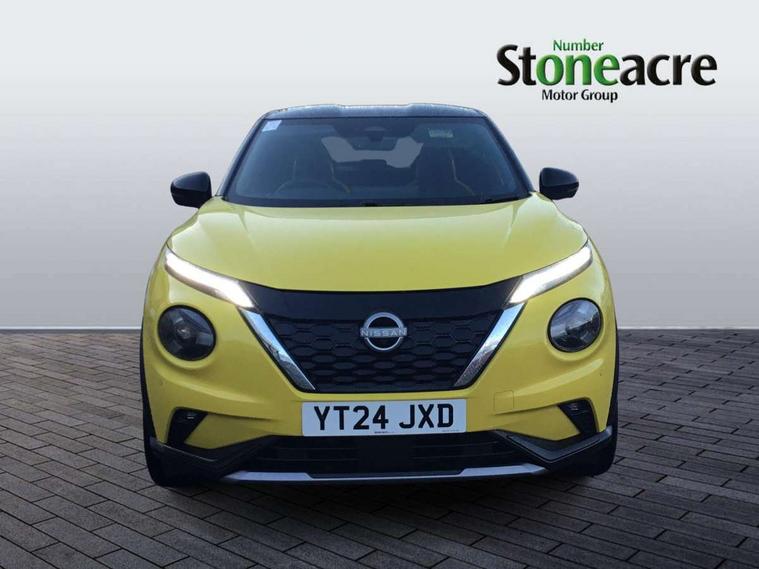12.3" full colour TFT screen combimeter, Drive modes select (Eco, normal and sport), e-Pedal step, Emergency and breakdown call, EV mode selector, Front parking sensor, Intelligent driver alert system, Intelligent lane intervention, Lane departure warning system, Nissan connect 12.3" touch screen entertainment system, Nissan connect nav with TomTom traffic, Nissan connect services and Wifi connection, Outside temperature sensor, Power Steering, Rear parking sensor, Stop/start button, Traffic sign recognition, Trip computer, Voice recognition, Wireless Apple CarPlay and Google Android auto, Wireless Smartphone charger, 10 Bose speakers 6 speakers and 2 headrest speakers for driver/passenger seats, 2 X Rear console USB port, Bluetooth system, USB, Aux-in and 12V socket, Bose personal sound stage control, DAB Digital radio, Auto dimming frameless rear view mirror, Automatic hazard signal with emergency stop signal, Body colour door handles, Electrically adjustable door mirrors with integrated indicators, Follow me home headlights, Front and rear electric window with one touch driver window, Heated and auto folding door mirrors, High beam assist, LED 3rd brake light, LED daytime running lights, LED front fog lights, LED headlamps, LED rear fog lamp, LED rear lamps, One touch passenger window, Rain sensor windscreen wipers, Rear privacy glass, Rear side wing doors, Rear wiper, Roof spoiler, Shark fin roof antenna in solid Black, Three blink turn signal, 3 height adjustable rear headrests, 3 seat bench in 2nd row, 60/40 split folding rear seat, Automatic climate control, Card holder on driver sunvisor, Door ambient lighting, Driver seat back pocket, Driver side rear coat hanger, Driver/passenger sunvisors and vanity mirrors, Front and rear cabin lights, Front armrest, Front door pockets with bottle holders, Front head restraints, Front/rear passenger grab handles, Gear console ambient circle lighting, Height adjustable driver's seat, Internal chrome door handles, Leather gearshift knob, Leather steering wheel, Luggage space lighting, Monoform sporty seats, Multifunction steering wheel, Passenger seat back pocket, Rear door bottle holders, Single front passenger seat, Synthetic leather kneepad, Telescopic steering wheel adjustment, Two cupholders in front centre console, Two rear isofix child seat anchorage points with top tether, Welcome light and console tray ambient lighting, Gloss black exterior personalisation pack - Juke, Heat pack with height adjustable passenger seats - Juke, Interior personalisation pack - Juke, ProPilot pack - Juke Auto, ABS with EBD and brake assist, Active ride control, Active Trace Control, Driver and passenger airbags, Driver and passenger side airbags, Electric handbrake with auto hold function, Electronic Stability Programme (ESP), Front and rear curtain airbags, Height adjustable seatbelts, Hill start assist, Intelligent emergency braking with pedestrian and cyclist recognition, Rear door child safety locks, Seatbelt reminder for driver/front passenger and rear seats, Three 3 point rear seatbelts, Traction control, Tyre pressure monitoring system, VDC Dynamic Vehicle Control, Alarm, Immobiliser, Intelligent key and start push button with walk away lock and approach unlock functions, Remote central locking,