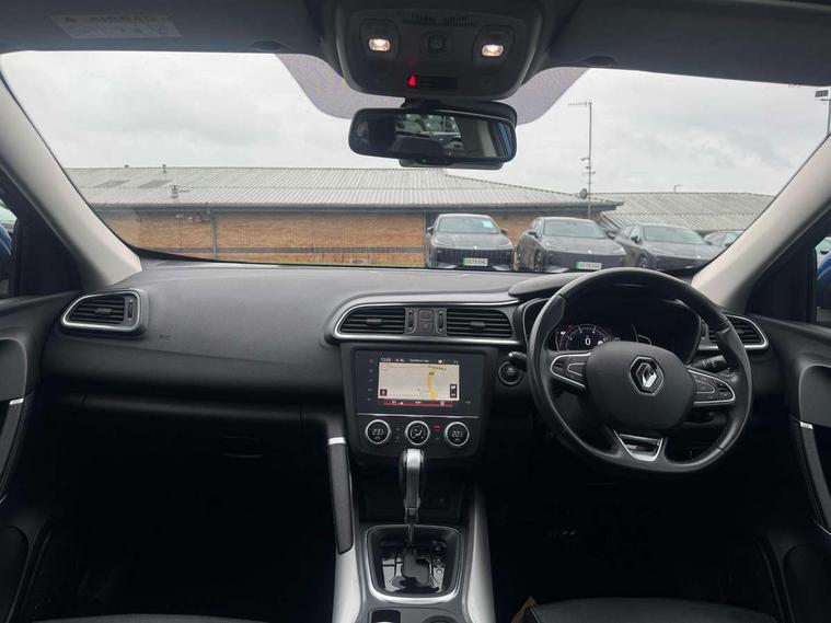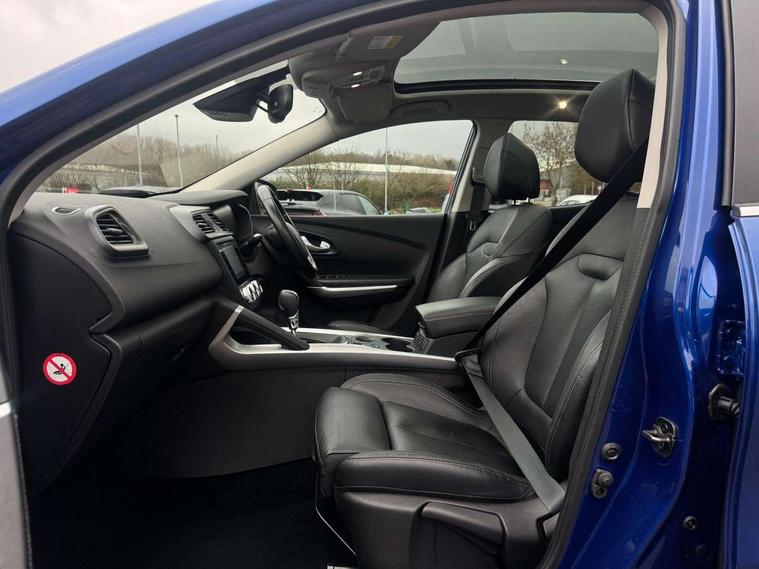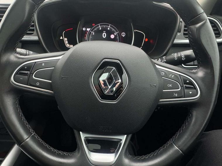 Blind spot warning with lateral sensors, Cruise control + speed limiter, Digital speedometer with 7 TFT screen, Door/boot open warning light, Eco mode, Exterior temperature indicator, Gear change indicator, Hands free parking system with 360 degree parking sensors, Lane departure warning system, Low fuel level warning light, Multi function trip computer, Oil level gauge, Over speed and traffic sign recognition, PAS, R-Link 2 Multimedia system + 7" touchscreen, TomTom + West European Map, DAB/FM/AM radio, bluetooth + hands free, USB/AUX, voice control, Rev counter, Smartphone integration with Apple CarPlay and Android auto, Gasoline particulate filter, Bose sound system with 7 speakers/digital amplifier + 1 Subwoofer, Fingertip controls for audio system, Two rear USB sockets, Adamantium front and rear skid plates, Auto dimming rear view mirror, Automatic headlights, Automatic high/low beam, Automatic windscreen wipers with variable speed adjustment, Body colour door handles, Body coloured bumpers, Body coloured door mirrors, Bodyside mouldings with chrome inserts, Chrome fog light surround, Chrome front grille, Chrome roof rails, Chrome window surround, Electric adjustable/heated/folding door mirrors, Extra tinted glass in rear windows and tailgate, Fixed panoramic glass sunroof, Flank protection, Front and rear electric windows, Front and rear towing rings, Heated rear windscreen, Integrated C shape indicators with side repeaters, Integrated fuel filler cap, LED daytime running lights, LED front fog lamps with cornering function, LED high and low beam headlights with LED turn indicators, LED rear fog light, Puddle lamps, Rear wiper, Shark fin antenna, Side and boot kick plates, 12V socket in front, 3 height adjustable rear headrests, 3 seat rear bench, 60/40 split folding rear seat, Accessory power point, Adjustable dashboard illumination, Air recirculation system, Centre rear armrest with cup holder, Driver and front passenger seat cushion extension, Driver sunblind with illuminated mirror and ticket holder, Driver's seat with lumbar adjustment, Driver/passenger reading lights, Dual zone automatic climate control, Easy life quick folding rear seat, Electric adjust driver's seat, Front courtesy lights, Front footwell illumination, Front/rear floor mats, Heated front seats, Height adjustable front headrests, Height adjustable passenger seat, Height/reach adjust steering wheel, Illuminated boot, Illuminated centre console, ISOFIX child seat anchorage points attached on outer rear seats, Leather steering wheel, Multi positional boot floor, Pollen filter, Rear courtesy lights, Rear passenger air vents, Sliding front centre armrest, Storage glovebox, 3 point inertia reel seatbelts, ABS/EBD, Active emergency braking system, Driver/passenger 2 stage auto adaptive airbags, Electronic parking brake, ESP with ASR and UCL (understeer control logical), Front and rear curtain airbags, Front lateral airbags, Front seat belts warning, Height adjustable front seatbelts with double pretensioners, Hill start assist, Manual passenger airbag deactivation function, Protective rear disc brake, Rear seatbelt warning indicator, Side impact protection, Three point rear center seatbelt, Traction control, Tyre pressure monitor, Deadlocks, Insurance approved Cat 1 alarm system, Insurance Approved Immobiliser, Key card hands free with walk away lock function, RAID (Renault Anti-Intruder Device) with automatic door locking, Remote central locking, 19" Poseidon diamond cut alloy wheels,