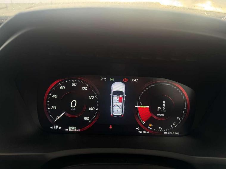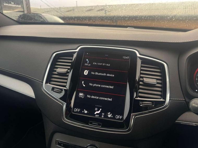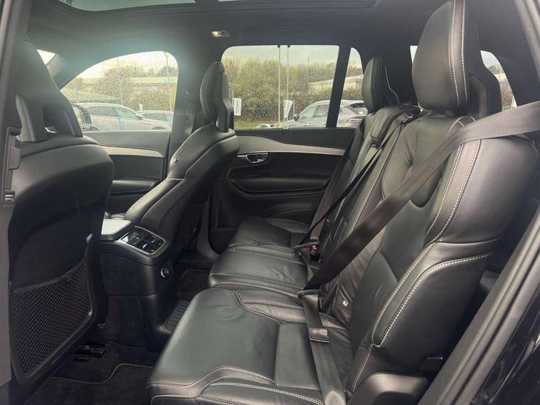 12.3" Active TFT crystal driver's instrument display, 9" centre console portrait touch screen, Adjustable steering wheel force, Bluetooth hands free telephone connection, Drive mode settings, Driver alert control with lane keeping aid, Emergency call service, Front and rear park assist, Handsfree power tailgate opening and closing, Intellisafe assist - Adaptive cruise control with pilot assist, Oncoming Lane Mitigation, Sensus navigation with European mapping and traffic information, Service interval indicator, Speed limiter, Speed sensitive steering, Trip computer, Voice activated control for key functions, Volvo on call, Wireless internet connection, 8 speed automatic transmission with start/stop + manual change functions, Active four C chassis - four corner adaptive dampers with electronic air suspension, All wheel drive system, Electric rear axle drive, Lithium-ion battery, Recharging port located in nearside front wing, Touring chassis, DAB Radio (Digital Audio Broadcasting), Steering wheel audio controls, Steering wheel remote infotainment controls, Active bending headlights with adaptive shadow technology, Adaptive brake lights with high level LED brake lights, Auto dimming interior + exterior mirrors, Automatic headlight levelling system, Automatic LED Headlights + Active high beam incorporating daytime running lights, Body colour bumpers, Colour coordinated auto folding and heated power door mirrors, Dark tinted windows for rear side windows and cargo area, Dual integrated exhaust pipes with high gloss black surround, Front and rear power windows, High gloss black Deco lower front bumper, High gloss black door mirrors, High gloss black mesh front grille with silk metal surround, High gloss black window surround, Home safe and approach lighting, Integrated roof rails in high gloss black, Puddle lights, Rain sensor with automatic windscreen wiper activation, Rear side wing doors, Rear wash/wipe with intermittent wipe setting, Roof antenna, Roof spoiler, Visible VIN plate, 12V socket in front + rear tunnel console, rear passenger compartment and cargo area, 2 seat bench in 3rd row, 2nd Row centre armrest with storage and cupholders, 3 seat bench in 2nd row, 3 spoke leather steering wheel and illuminated gear knob with chrome trim, 4 Zone electronic climate control + cooled glovebox, A-pillar parking ticket holder, Air conditioning for 3rd row of seats, Auxiliary fuel fired heater with pre conditioning functions, B Pillar ventilation, Bright metal luggage threshold, Cargo divider with grocery bag holder, Centre console cupholders and storage, Charge cable bag, Driver's side lower dashboard storage compartment, Front and rear door pocket and front cupholder illumination, Front footwell and side step illumination, Front headrests, Front seat cushion extensions, Heated front seats, Height/reach adjustable steering column, Illuminated front and rear R-Design tread plates, Illuminated luggage compartment, Illuminated tailgate, Illuminated vanity mirrors + ticket holder, Illumination lockable glovebox compartment, Load protection net, Multicolour theatre lighting, Nappa Leather Key Integrated Remote, Outboard armrest with cupholder and storage for third row passengers, Passenger seat electric height adjuster, Passenger seat lumbar support, Pollen filter, Power driver seat with multi directional lumbar support and memory for seat and exterior mirrors, Rear footwell and side step illumination, Rear headrests, Semi automatic load cover, Single front passenger seat, Sports floor mats, Sports leather gear knob, Sports pedals, Sports steering wheel with gear shift paddles, Underfloor cargo storage, 7 three point seatbelts, City safety includes pedestrian, cyclist and large animal detection and front collision warning with full auto brake, Drivers knee airbag, Dual stage driver/passenger airbags, First aid kit, Front and rear curtain airbags, Front seat side impact airbags, Front seats SIPS airbags, Hill descent control, Hill start assist, IC (Inflatable Curtains) - Full Length, Passenger airbag cut-off switch, Power parking brake with auto hold function, Run off Road Mitigation, Run off Road Protection, Seatbelt reminder and pretensioners for all seats, SIPS (Side Impact Protection System), Slippery road and hazard light alert, Stability and Traction Control with Spin control, Engine Drag Control and Corner Traction Control, Tyre pressure monitoring system, Vehicle deceleration control with Anti-lock Brake System, Electronic Brake Distribution and Emergency Brake Assist, Warning triangle, WHIPS whiplash protection system - front, Anti-theft alarm including immobiliser/volume sensor + level sensor, Key integrated remote control central locking + fuel flap with deadlocking system and auto open/close power windows, Keyless drive (includes keyless entry and keyless start) with remote tag, Locking wheel nuts, Private locking for glovebox and tailgate, Tailored Instrument Panel and Door Tops with Contrast Stitching, Tyre sealant kit + 12v compressor,