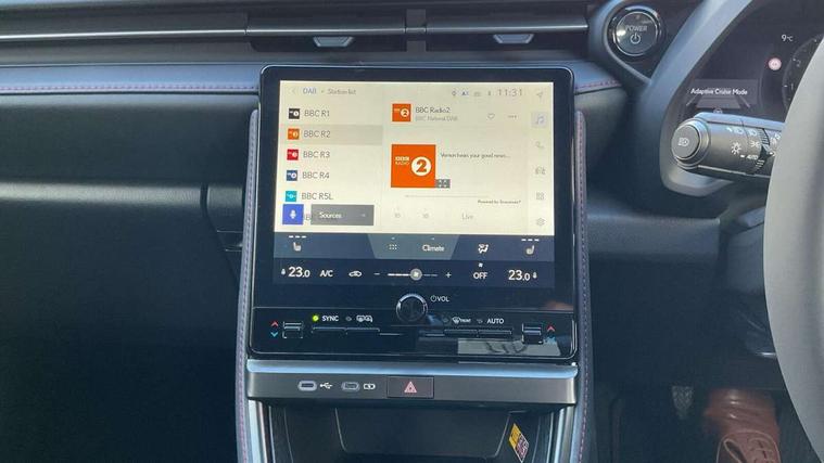 12.3" Digital instrument binnacle, Bluetooth connectivity, Cloud navigation, e-Call (emergency call), Electric power steering, Extended Lexus safety system+ 3 includes blind spot monitor, safe exit assist, camera washer and rear cross traffic alert, Front and rear parking sensors with intelligent clearance sensor, Front and rear smart entry, Head up Display, Lane change flasher function, Lexus link connected services, Lexus safety systems+ 3 includes dynamic radar cruise control, pre collision system day and night, lane tracing assist, road sign assist, Pre-collision system with driver monitor, Push button start, Rear view camera, Tailgate, Wireless Apple CarPlay and wired Android Auto, Wireless Smartphone charger, Vehicle dynamic integrated management (VDIM), 1 USB (Type-C) charging ports in bottom of the instrument panel, 1 USB (Type-C) multimedia communication ports in bottom of the instrument panel, 1 USB (Type-C) ports inside front console box, 6 speaker audio system, AM/FM and DAB radio, Lexus Link Connect with 9.8" Touchscreen, Rear side monitor, Auto dimming interior rear view mirror, Auto headlights, Black wheel arches, Electric adjustable/heated/auto folding door mirrors, Front and rear electric windows, Full body colour bumpers, LED 3rd brake light, LED daytime running lights, LED rear lights, Power back door without kick function, Privacy UV glass, rear doors and tailgate, Rain sensing wipers, Rear side wing doors, Rear wiper, Single bulb LED headlights with auto high beam, Wet arm wipers, 12V accessory connector in front console box, 3 bench rear seats in 2nd row, 3 rear headrests, 6 way manually adjustable front seats, 60/40 split folding rear seat, Aluminium scuff plates, Armrest with sliding cup holder, Centre armrest with storage, Cup holder in centre console, Driver and passenger door pocket, Driver's lumbar support, Dual zone automatic air conditioning, Front headrests, Glovebox, Heated front seats, Illuminated entry system (cabin, footwell, console and door handles), Nanoe-X Technology, Single colour ambient lighting, Single passenger seat, Storage tray under audio panel and lower tray, Synthetic leather gear lever, Synthetic leather steering wheel, Touch Sensor Buttons on Steering Wheel, Tsuyasumi interior ornamentaion, Under deck storage, 2 x Isofix child rear seat restraints, 3 point ELR (Emergency Locking Retractor) front seat belt with pretensioners, 3x3 point rear seat belts, ABS, Adjustable seatbelt anchor points, Driver and front passenger side airbags, Driver and front passenger single stage airbags, Driver knee airbag, E-Latch electric door release, Electronic parking brake, ESP, Front and rear curtain shield airbags, Front centre airbag, Manual rear child locks, Passenger airbag cut-off switch, Tyre pressure monitoring system, Alarm/anti-theft (with siren and 2 sensors), Engine immobiliser, Thatcham approved locking wheel nuts, Two motion door lock with double lock, VIN etching, Tyre repair kit,