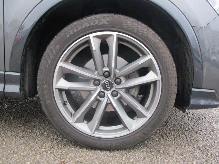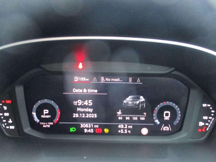 Audi connect safety and service (e-call), Audi drive select, Audi lane departure warning, Audi Virtual Cockpit - 10.25" display, Bluetooth interface, Camera based traffic sign recognition, MMI Navigation Plus with high resolution 10.1 inch touchscreen colour display, Power operated tailgate, Progressive steering, Service interval indicator, Smartphone interface includes wireless Apple carplay/Android Auto, Start stop system with recuperation, Voice control system with natural language interaction, 48V Mild hybrid technology, Sports suspension, 2 USB-C ports with charge and data functions, 6 passive loudspeakers, DAB digital radio module, Acoustic windscreen, Auto dimming frameless rear view mirror, Diffuser grille in grained matt black, Diffuser trim in selenite silver, Electrically folding, adjustable and heated door mirrors with integrated LED side indicators and kerb view function for passenger side, Front and rear electric windows, Front fog lights, Front side air inlets in selenite silver, Front underbody protection in manhattan grey paint finish, High gloss black finish B and C pillars, LED headlights with LED daytime running lights, LED rear lights, LED third brake light, Privacy glass dark tinted rear and rear-side windows (from B-pillar backwards), Rain and light sensors, Rear side wing doors, Rear underbody protection in matt black, Rear wiper, Variable front intermittent wipers, 12V socket in rear centre console, 3 seat bench in 2nd row, 40:20:40 folding with manual adjustment for 60:40 forwards/backwards position and backrest angle, Adjustable rear seat bench/backrest with centre armrest and cupholder, Black cloth headlining, Dual zone electronic climate control, Front and rear black floor mats with contrast stitching, Front and rear headrests, Front and rear roof module including reading lights, Front centre armrest, Glove compartment lighting, Height and reach adjustable steering wheel, Illuminated door sill trims with S logo, ISOFIX child seat mounting for front passenger with airbag deactivation and outer rear seat including top tether attachment point for outer rear seats, Luggage compartment light right in white, Luggage compartment sill protection in stainless steel, Manual front seats with height adjustment, Perforated leather gearknob, Single front passenger seat, Stainless steel pedals, Black styling pack - Q3, Non smoking pack - Q3, 3x3 point rear seatbelts, 6 airbags - Driver, front passenger, curtain and side windows, Audi pre-sense front with pedestrain and cyclist recognition, Electromechanical parking brake, Electronic stabilisation control including ABS, ASR and EDL, Front seatbelt reminder, Hill descent control, Hill hold assist, Manual child lock in rear doors, Pre sense basic, Seatbelt monitoring, Tyre pressure warning, Warning triangle and first aid kit, Anti theft alarm, Anti theft wheel bolts, Immobiliser, Remote central locking, Black dashboard, Detail dashboard around MMI touch colour display in glass look, black with surround in aluminium look, Leatherette door armrest, Piano black inlay, Tool kit, Tyre repair kit,