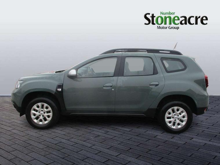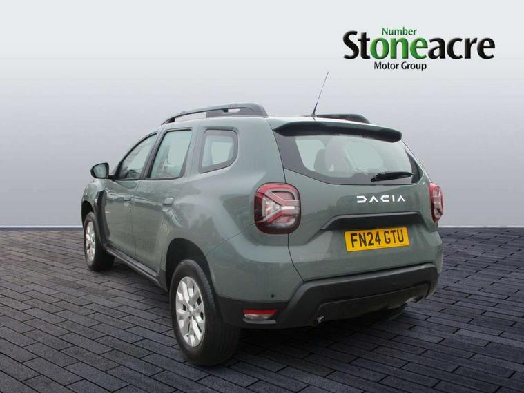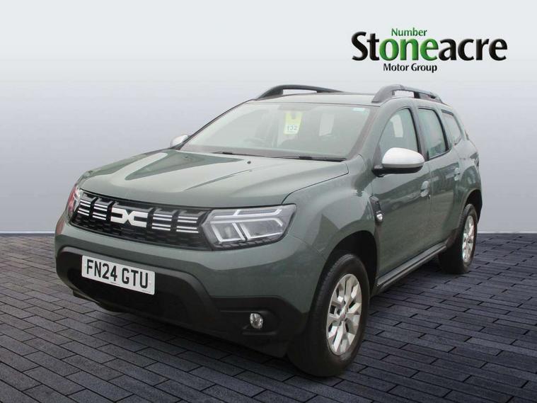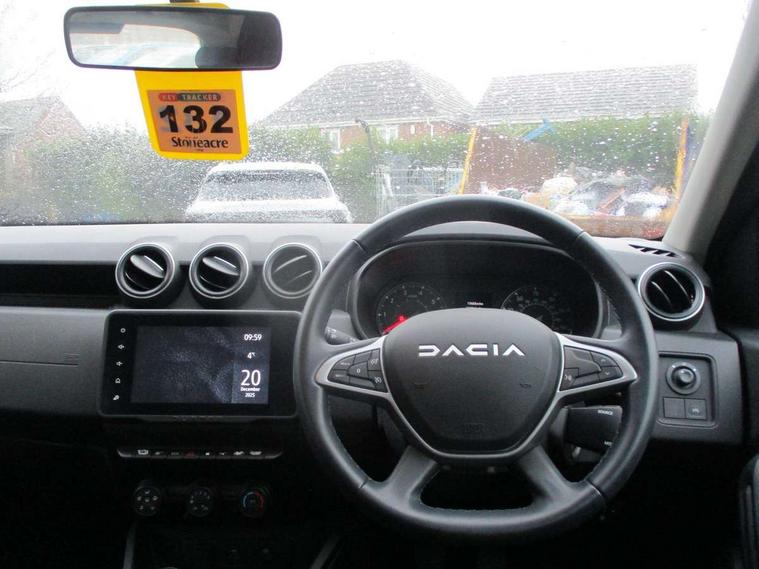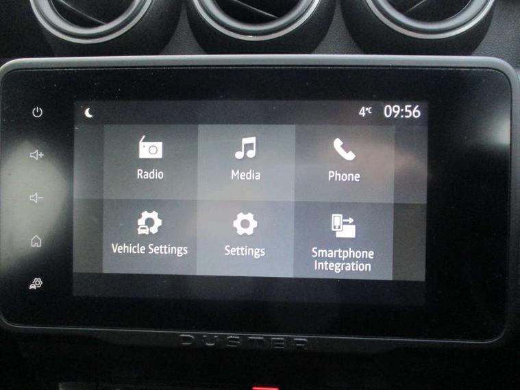 Cruise control and speed limiter, eCall emergency system, Eco mode, Electric power assisted steering, On board computer, odometer, trip computer, average fuel consumption, average speed, service indicator, outside temperature gauge, Rear parking sensors, Rev counter, Reversing camera, Stop/start system, 8" Media display with smartphone replication, 2 usb sockets and 6 speakers, Dacia plug and radio/MP3/USB/bluetooth/DAB/steering wheel control, 3 speed windscreen wipers, Black longitudinal roof bars with Duster inscription, Black side sills, Black/satin chrome tailgate trim with Duster inscription in black background and lettering, Body coloured door handles, Chrome front grille with hot stamping, Chrome logo surround on steering wheel, Daytime running lights, Drivers window one touch up/down, Dusk sensor, Electric adjustable/heated door mirrors, Electric front windows, Electric rear windows, Front and rear body coloured bumpers, Front door sill protection strip, Front fog lights, Heated rear window, High level third rear brake light, Rain sensor, Rear side wing doors, Rear spoiler, Rear wash/wipe, Satin chrome door mirrors, Tinted windows, Underbody protection skid plates, Y shaped LED headlights with rear LED lights, 3 rear height adjustable headrests, 3 seat bench in 2nd row, 60/40 split folding rear seat, Backlighted steering wheel buttons, Boot light, Driver seat lumbar adjustment, Fabric decorative insert on door panels, Fabric upholstery, Front head restraints, Front passenger reading light, Gear shift indicator, Height adjustable driver seat, Height adjustable front and rear headrests, Height and depth adjustable steering wheel, High centre console with driver armrest, Isofix points for child seats in both outer rear seats, Manual air conditioning, Map pocket on front seat backs, Passenger sunvisor with vanity mirror, Rear passenger reading light, Satin chrome interior door handles, Satin chrome lower steering wheel insert, Single front passenger seat, Soft feel leather steering wheel, 3x3 point rear seatbelts, ABS and Emergency brake assist, ASR traction control with Electronic stability control, Child locks on rear doors, Door open visual and audible warning, Driver airbag, Driver and passenger seatbelt not fastened - visual and audible warning, EBD - Electronic brakeforce distribution, Front passenger airbag, Front passenger airbag deactivation, Front seatbelt pretensioners, Front side airbags, Height adjustable front seatbelts, Hill start assist, Tyre pressure monitor, Remote central locking, Thatcham approved engine immobiliser, Charcoal grey central console surround, Matt black central console fascia, Piano black decorative insert on front door panels, Satin chrome air vent surround, Satin chrome instrument dial surrounds, 16" alloy wheels,
