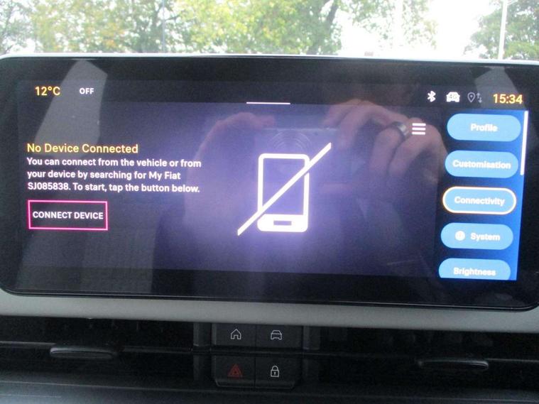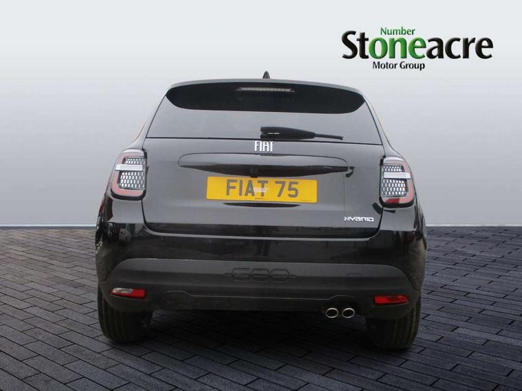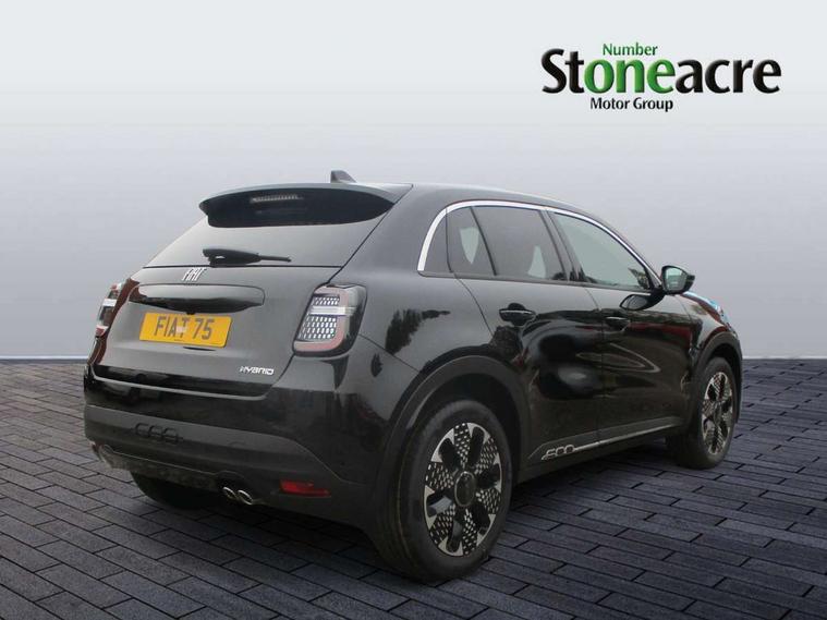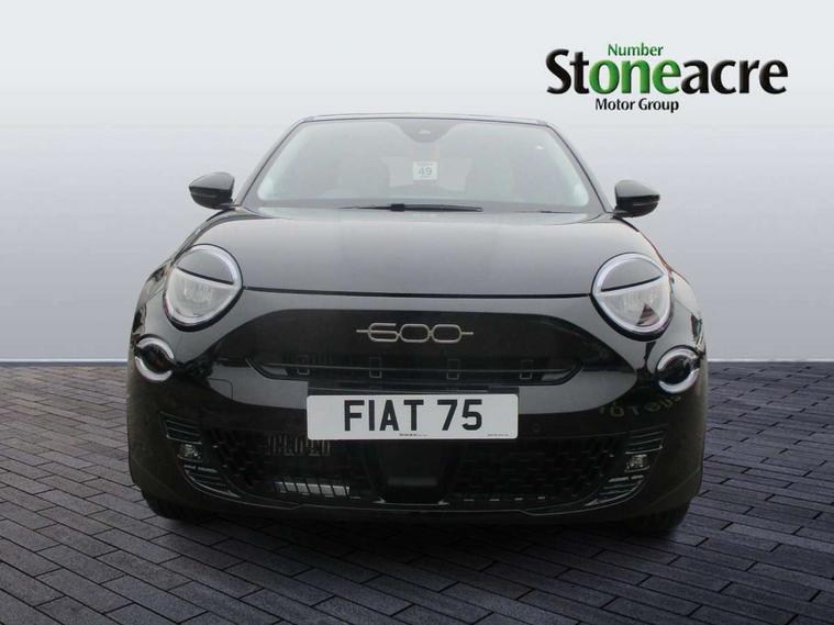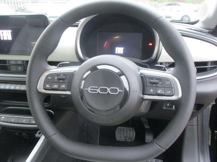 7" TFT digital cluster, Bluetooth connectivity, BSRF connectivity box, Connected services, Cruise control, Drowsy driver detection, Emergency E-call assist, Engine emission level default, GSR II step 1, Intelligent speed assist, Lane keeping assistant (LKA), Odometer, Power assist steering, Rain and dusk sensors, Rear parking sensors, Traffic sign recognition, Wireless apple car play/android Auto, Without drive mode selector, L2-AGM 12V battery, 1st Row USB type-A and USB type-C, 4 speaker audio system, Radio, Uconnect infotainment 10.25" touchscreen with DAB, All power windows express Up/Down, Auto dimming frameless rear view mirror, Automatic headlights, Body coloured door handles, Chrome day light openings, Electric adjustable door mirrors, Exterior chrome accents, Front and rear Chromed 600 logo, Gloss black finish B pillar, Gloss black shark fin antenna, Glossy black door mirrors, Heated windscreen wiper blade area, LED 3rd brake light, LED daytime running lights, LED Fog lamps with cornering function, LED front signature lighting, LED front turn indicators and position lights, LED rear lights, LED rear signature lighting, LED reflector headlamps, Matt black side skirts with 600 chromed logo, Rear bumper embossed 600 logo, Rear roof spoiler, Rear side wing doors, Rear wiper, 2 Spoke synthetic leather steering wheel with audio control, 3 rear headrests, 3 seat bench in 2nd row, 4 way manually adjustable passenger seat, 6 way manually adjustable drivers seat, Auxilliary 12V power socket, Body colour dashboard fascia, Chrome interior door handles, Dark metachrome dashboard ring, English handbook, Front centre armrest, Front headrests, Front passenger grab handle, Front seatback pockets, ISOFIX attachment on front passenger and rear passenger seats, Manual climate control, Metachrome central compartment bezel, Monogram fabric upholstery, Paddle shifts, Partial body cover for shipment, Predisposal for accessory upgrade to default tunnel pad cover (dedicated prnd bezel), Rear seat 40/60 split, Single front passenger seat, Smart 15L storage central tunnel with tunnel pad cover, Sunvisor label ciao Fiat, Sunvisors with vanity mirrors, 3x3 point rear seatbelts, 6 airbags, ABS, Autonomous Emergency Brake (AEB) & Vulnerable Road User (VRU) Protection, Child locks on rear doors, Electronic parking brake with auto hold, ESC (Electronic Stability Control), Front passenger airbag deactivation, Seatbelt reminder and pretensioners for all seats, Anti-theft volumetric alarm, Anti-theft wheel bolts, Keyless Go, 17" Diamond cut alloy wheels, Fix and go puncture repair kit,