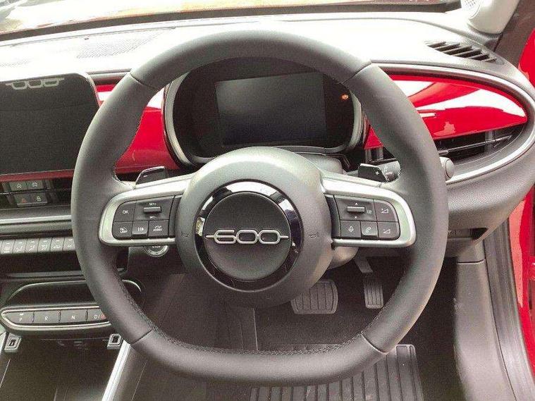 7" TFT digital cluster, Bluetooth connectivity, BSRF connectivity box, Connected services, Cruise control, Drowsy driver detection, Emergency E-call assist, Engine emission level default, GSR II step 1, Intelligent speed assist, Lane keeping assistant (LKA), Odometer, Power assist steering, Rain and dusk sensors, Rear parking sensors, Traffic sign recognition, Wireless apple car play/android Auto, Without drive mode selector, L2-AGM 12V battery, 1st Row USB type-A and USB type-C, 4 speaker audio system, Radio, Uconnect infotainment 10.25" touchscreen with DAB, All power windows express Up/Down, Auto dimming frameless rear view mirror, Automatic headlights, Body coloured door handles, Chrome day light openings, Electric adjustable door mirrors, Exterior chrome accents, Front and rear Chromed 600 logo, Gloss black finish B pillar, Gloss black shark fin antenna, Glossy black door mirrors, Heated windscreen wiper blade area, LED 3rd brake light, LED daytime running lights, LED Fog lamps with cornering function, LED front signature lighting, LED front turn indicators and position lights, LED rear lights, LED rear signature lighting, LED reflector headlamps, Matt black side skirts with 600 chromed logo, Rear bumper embossed 600 logo, Rear roof spoiler, Rear side wing doors, Rear wiper, 2 Spoke synthetic leather steering wheel with audio control, 3 rear headrests, 3 seat bench in 2nd row, 4 way manually adjustable passenger seat, 6 way manually adjustable drivers seat, Auxilliary 12V power socket, Body colour dashboard fascia, Chrome interior door handles, Dark metachrome dashboard ring, English handbook, Front centre armrest, Front headrests, Front passenger grab handle, Front seatback pockets, ISOFIX attachment on front passenger and rear passenger seats, Manual climate control, Metachrome central compartment bezel, Monogram fabric upholstery, Paddle shifts, Partial body cover for shipment, Predisposal for accessory upgrade to default tunnel pad cover (dedicated prnd bezel), Rear seat 40/60 split, Single front passenger seat, Smart 15L storage central tunnel with tunnel pad cover, Sunvisor label ciao Fiat, Sunvisors with vanity mirrors, 3x3 point rear seatbelts, 6 airbags, ABS, Autonomous Emergency Brake (AEB) & Vulnerable Road User (VRU) Protection, Child locks on rear doors, Electronic parking brake with auto hold, ESC (Electronic Stability Control), Front passenger airbag deactivation, Seatbelt reminder and pretensioners for all seats, Anti-theft volumetric alarm, Anti-theft wheel bolts, Keyless Go, 17" Diamond cut alloy wheels, Fix and go puncture repair kit,
