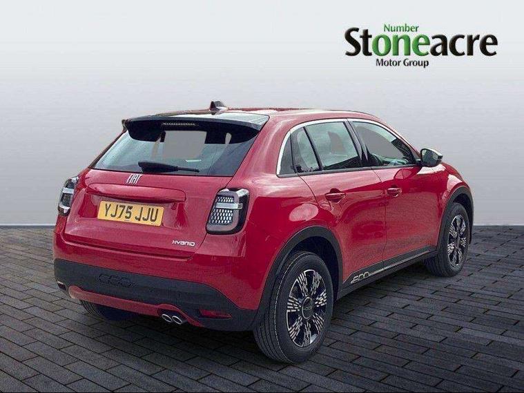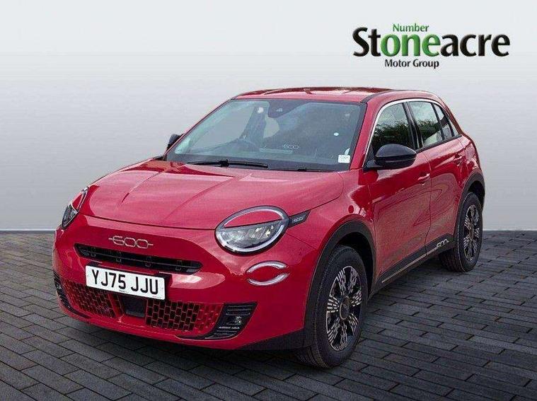7" TFT digital cluster, Bluetooth connectivity, BSRF connectivity box, Connected services, Cruise control, Drowsy driver detection, Emergency E-call assist, Engine emission level default, GSR II step 1, Intelligent speed assist, Lane keeping assistant (LKA), Odometer, Power assist steering, Rain and dusk sensors, Rear parking sensors, Traffic sign recognition, Wireless apple car play/android Auto, Without drive mode selector, L2-AGM 12V battery, 1st Row USB type-A and USB type-C, 4 speaker audio system, Radio, Uconnect infotainment 10.25" touchscreen with DAB, All power windows express Up/Down, Auto dimming frameless rear view mirror, Automatic headlights, Body coloured door handles, Chrome day light openings, Electric adjustable door mirrors, Exterior chrome accents, Front and rear Chromed 600 logo, Gloss black finish B pillar, Gloss black shark fin antenna, Glossy black door mirrors, Heated windscreen wiper blade area, LED 3rd brake light, LED daytime running lights, LED Fog lamps with cornering function, LED front signature lighting, LED front turn indicators and position lights, LED rear lights, LED rear signature lighting, LED reflector headlamps, Matt black side skirts with 600 chromed logo, Rear bumper embossed 600 logo, Rear roof spoiler, Rear side wing doors, Rear wiper, 2 Spoke synthetic leather steering wheel with audio control, 3 rear headrests, 3 seat bench in 2nd row, 4 way manually adjustable passenger seat, 6 way manually adjustable drivers seat, Auxilliary 12V power socket, Body colour dashboard fascia, Chrome interior door handles, Dark metachrome dashboard ring, English handbook, Front centre armrest, Front headrests, Front passenger grab handle, Front seatback pockets, ISOFIX attachment on front passenger and rear passenger seats, Manual climate control, Metachrome central compartment bezel, Monogram fabric upholstery, Paddle shifts, Partial body cover for shipment, Predisposal for accessory upgrade to default tunnel pad cover (dedicated prnd bezel), Rear seat 40/60 split, Single front passenger seat, Smart 15L storage central tunnel with tunnel pad cover, Sunvisor label ciao Fiat, Sunvisors with vanity mirrors, 3x3 point rear seatbelts, 6 airbags, ABS, Autonomous Emergency Brake (AEB) & Vulnerable Road User (VRU) Protection, Child locks on rear doors, Electronic parking brake with auto hold, ESC (Electronic Stability Control), Front passenger airbag deactivation, Seatbelt reminder and pretensioners for all seats, Anti-theft volumetric alarm, Anti-theft wheel bolts, Keyless Go, 17" Diamond cut alloy wheels, Fix and go puncture repair kit,