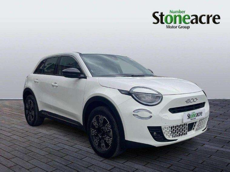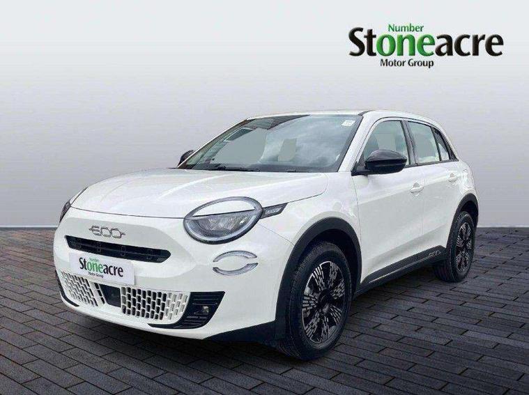 7" TFT digital cluster, Bluetooth connectivity, BSRF connectivity box, Connected services, Cruise control, Drowsy driver detection, Emergency E-call assist, Engine emission level default, GSR II step 1, Intelligent speed assist, Lane keeping assistant (LKA), Odometer, Power assist steering, Rain and dusk sensors, Rear parking sensors, Traffic sign recognition, Wireless apple car play/android Auto, Without drive mode selector, L2-AGM 12V battery, 1st Row USB type-A and USB type-C, 4 speaker audio system, Radio, Uconnect infotainment 10.25" touchscreen with DAB, All power windows express Up/Down, Auto dimming frameless rear view mirror, Automatic headlights, Body coloured door handles, Chrome day light openings, Electric adjustable door mirrors, Exterior chrome accents, Front and rear Chromed 600 logo, Gloss black finish B pillar, Gloss black shark fin antenna, Glossy black door mirrors, Heated windscreen wiper blade area, LED 3rd brake light, LED daytime running lights, LED Fog lamps with cornering function, LED front signature lighting, LED front turn indicators and position lights, LED rear lights, LED rear signature lighting, LED reflector headlamps, Matt black side skirts with 600 chromed logo, Rear bumper embossed 600 logo, Rear roof spoiler, Rear side wing doors, Rear wiper, 2 Spoke synthetic leather steering wheel with audio control, 3 rear headrests, 3 seat bench in 2nd row, 4 way manually adjustable passenger seat, 6 way manually adjustable drivers seat, Auxilliary 12V power socket, Body colour dashboard fascia, Chrome interior door handles, Dark metachrome dashboard ring, English handbook, Front centre armrest, Front headrests, Front passenger grab handle, Front seatback pockets, ISOFIX attachment on front passenger and rear passenger seats, Manual climate control, Metachrome central compartment bezel, Monogram fabric upholstery, Paddle shifts, Partial body cover for shipment, Predisposal for accessory upgrade to default tunnel pad cover (dedicated prnd bezel), Rear seat 40/60 split, Single front passenger seat, Smart 15L storage central tunnel with tunnel pad cover, Sunvisor label ciao Fiat, Sunvisors with vanity mirrors, 3x3 point rear seatbelts, 6 airbags, ABS, Autonomous Emergency Brake (AEB) & Vulnerable Road User (VRU) Protection, Child locks on rear doors, Electronic parking brake with auto hold, ESC (Electronic Stability Control), Front passenger airbag deactivation, Seatbelt reminder and pretensioners for all seats, Anti-theft volumetric alarm, Anti-theft wheel bolts, Keyless Go, 17" Diamond cut alloy wheels, Fix and go puncture repair kit,