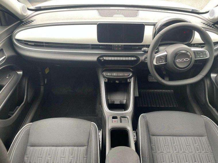 7" TFT digital cluster, Bluetooth connectivity, BSRF connectivity box, Connected services, Cruise control, Drowsy driver detection, Emergency E-call assist, Engine emission level default, GSR II step 1, Intelligent speed assist, Lane keeping assistant (LKA), Odometer, Power assist steering, Rain and dusk sensors, Rear parking sensors, Traffic sign recognition, Wireless apple car play/android Auto, Without drive mode selector, L2-AGM 12V battery, 1st Row USB type-A and USB type-C, 4 speaker audio system, Radio, Uconnect infotainment 10.25" touchscreen with DAB, All power windows express Up/Down, Auto dimming frameless rear view mirror, Automatic headlights, Body coloured door handles, Chrome day light openings, Electric adjustable door mirrors, Exterior chrome accents, Front and rear Chromed 600 logo, Gloss black finish B pillar, Gloss black shark fin antenna, Glossy black door mirrors, Heated windscreen wiper blade area, LED 3rd brake light, LED daytime running lights, LED Fog lamps with cornering function, LED front signature lighting, LED front turn indicators and position lights, LED rear lights, LED rear signature lighting, LED reflector headlamps, Matt black side skirts with 600 chromed logo, Rear bumper embossed 600 logo, Rear roof spoiler, Rear side wing doors, Rear wiper, 2 Spoke synthetic leather steering wheel with audio control, 3 rear headrests, 3 seat bench in 2nd row, 4 way manually adjustable passenger seat, 6 way manually adjustable drivers seat, Auxilliary 12V power socket, Body colour dashboard fascia, Chrome interior door handles, Dark metachrome dashboard ring, English handbook, Front centre armrest, Front headrests, Front passenger grab handle, Front seatback pockets, ISOFIX attachment on front passenger and rear passenger seats, Manual climate control, Metachrome central compartment bezel, Monogram fabric upholstery, Paddle shifts, Partial body cover for shipment, Predisposal for accessory upgrade to default tunnel pad cover (dedicated prnd bezel), Rear seat 40/60 split, Single front passenger seat, Smart 15L storage central tunnel with tunnel pad cover, Sunvisor label ciao Fiat, Sunvisors with vanity mirrors, 3x3 point rear seatbelts, 6 airbags, ABS, Autonomous Emergency Brake (AEB) & Vulnerable Road User (VRU) Protection, Child locks on rear doors, Electronic parking brake with auto hold, ESC (Electronic Stability Control), Front passenger airbag deactivation, Seatbelt reminder and pretensioners for all seats, Anti-theft volumetric alarm, Anti-theft wheel bolts, Keyless Go, 17" Diamond cut alloy wheels, Fix and go puncture repair kit,