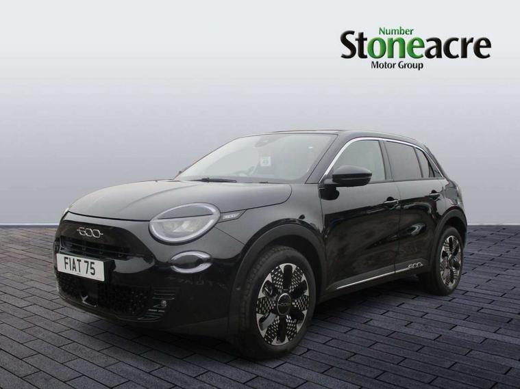 360 degree parking sensors with 180 degree rear view camera, 7" TFT digital cluster, Autonomous driving level 2: Adaptive cruise control with stop & go and lane centering, Blind spot detection, Bluetooth connectivity, BSRF connectivity box, Connected services, Drowsy driver detection, Emergency E-call assist, Engine emission level default, GSR II step 1, Hands free power liftgate, Intelligent speed assist, Lane keeping assistant (LKA), Odometer, Power assist steering, Rain and dusk sensors, Semi-automatic parking with Visiopark 1 system, Traffic sign recognition, Wireless apple car play/android Auto, Wireless charging pad for smartphones, Without drive mode selector, L2-AGM 12V battery, 1st Row USB type-A and USB type-C, 2nd Row USB type-C, 6 speaker audio system, Radio, Uconnect infotainment 10.25" touchscreen with integrated navigation system and DAB, All power windows express Up/Down, Auto dimming frameless rear view mirror, Automatic headlights, Automatic high/low beam, Body coloured door handles, Chrome day light openings, Chromed exhaust tip, Electric adjustable/heated/folding door mirrors, Exterior chrome accents, Front and rear Chromed 600 logo, Gloss black finish B pillar, Gloss black shark fin antenna, Glossy black door mirrors, Heated windscreen wiper blade area, LED 3rd brake light, LED daytime running lights, LED Fog lamps with cornering function, LED front signature lighting, LED front turn indicators and position lights, LED rear lights, LED rear signature lighting, LED reflector headlamps, Matt black side skirts with 600 chromed logo, Privacy glass, Puddle lights, Rear bumper embossed 600 logo, Rear roof spoiler, Rear side wing doors, Rear wiper, 2 Spoke synthetic leather steering wheel with audio control, 3 rear headrests, 3 seat bench in 2nd row, 6 way manually adjustable front passenger seat, 6 way power adjustable driver seat with lumbar support and massage function, Adjustable trunk floor, Automatic climate control, Auxilliary 12V power socket, Cargo flex fit, Chrome interior door handles, Dark metachrome dashboard ring, English handbook, Front centre armrest, Front headrests, Front passenger grab handle, Front seatback pockets, Heated front seats, ISOFIX attachment on front passenger and rear passenger seats, Matt Ivory painted dashboard fascia, Metachrome central compartment bezel, Monogram Synthetic leather upholstery, Paddle shifts, Partial body cover for shipment, Predisposal for accessory upgrade to default tunnel pad cover (dedicated prnd bezel), Rear seat 40/60 split, Single front passenger seat, Smart 15L storage central tunnel with La prima tunnel pad cover, Sunvisor label ciao Fiat, Sunvisors with vanity mirrors, Velour floor mats, 3x3 point rear seatbelts, 6 airbags, ABS, Autonomous Emergency Brake (AEB) & Vulnerable Road User (VRU) Protection, Child locks on rear doors, Electronic parking brake with auto hold, ESC (Electronic Stability Control), Front passenger airbag deactivation, Seatbelt reminder and pretensioners for all seats, Anti-theft volumetric alarm, Anti-theft wheel bolts, Passive entry and keyless go, 18" Diamond cut alloy wheels, Fix and go puncture repair kit,