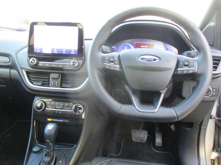 Driver impairment monitor, Emergency call service, Ford easy fuel, Front and rear parking sensors, Full digital 12.3" instrument cluster, Lane keeping aid with lane departure warning, Power assist steering, Selectable drive modes(Normal, sport, Eco, trail, slippery), Speed sign recognition, Sport suspension, Automatic headlights with auto high beam, Automatic rain sensing wipers, Bodyside chrome styling, Fixed LED signature headlamps, Front fog lamps, Gloss black with chrome elements on front and rear bumpers, High chrome waistline, LED daytime running lights, LED rear lamps, Power foldable heated door mirrors with puddle lamps and puma logo protection, Privacy glass to side rear windows and tailgate glass, Quickclear heated windscreen, Rear side wing doors, Rear wiper, Third brake light, Vignale body styling kit with unique grille and large body colour rear spoiler, 3 seat bench in 2nd row, Centre console with armrest and stowage, Ford megabox extended bootspace, Front and rear floor mats, Front and rear head restraints, Manual 4 way driver seat adjust with lumbar adjustment and massage function, Manual 4 way passenger seat adjust with lumbar adjustment and massage function, Premium sensico leather upholstery with metal grey stitching, Premium sensico perforated flat bottomed steering with metal grey stitching, Premium sensico wrapped instrument cluster, Single front passenger seat, Wireless charging pad with electronic air temperature control (EATC), B&O Premium Audio system + Ford SYNC 3 navigation pack - Puma, Winter pack - Puma, 3 rear seatbelts, Child safety lock, Electronic stability control (ESC) and hill start assist, Pedestrian/cyclist detection & post-collision braking, Pre collision assist system, Tyre pressure monitoring system (TPMS), Keyless entry and power start button, Thatcham alarm, Carbon look interior deco spears,
