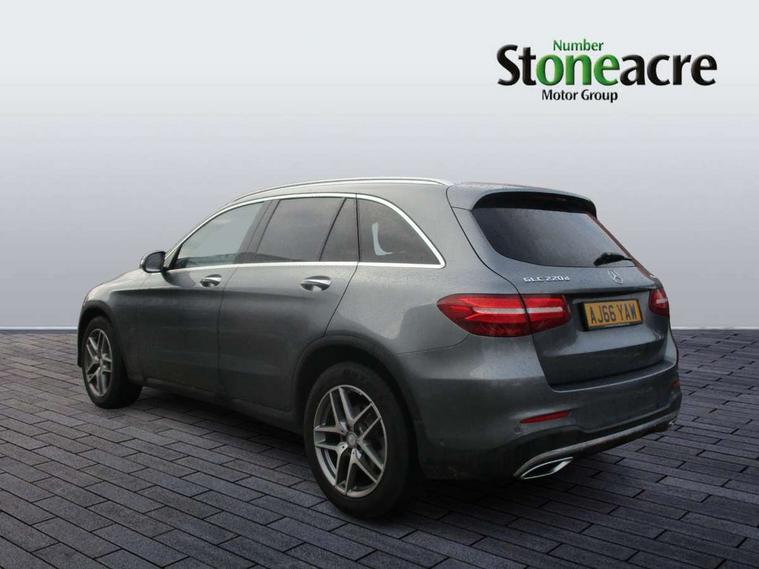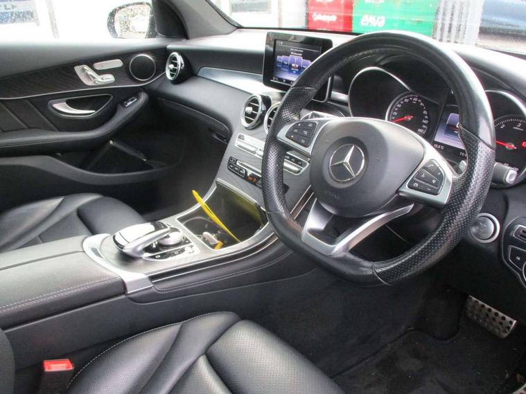 7" colour screen, Active park assist with parktronic system, Attention assist, Bluetooth interface for hands free telephone, Collision prevention assist, Crosswind Assist, Cruise control with speedtronic variable speed limiter, DYNAMIC SELECT with a choice of driving modes (ECO, Comfort, Sport, Sport+ and Individual), Garmin Map Pilot navigation system with SD card, touchpad and voice control, Multi function trip computer, Outside temperature gauge, Power opening/closing tailgate, Remote boot release, Speed sensitive steering, Diesel particulate filter, 5 speakers, DAB Digital radio, Frontbass loudspeakers, Mercedes Audio 20 radio/single CD + telephone keypad, USB connection, Adaptive brake lights, Aerodynamic rear spoiler, AMG bodystyling, Automatic headlights, Body coloured bumpers, Electric panoramic sunroof with sunblind, Electric windows one touch open/close, Electrically adjustable and heated door mirrors, Exhaust tailpipe finisher, Heated windscreen washers, LED daytime running lights, LED rear lamps, Privacy glass (to rear of B post), Rain sensor windscreen wipers, Range adjustable headlights, Rear wiper, Tinted glass all round, 2 cupholders in front centre console, 2 way rear head restraints, 3 spoke flat bottom AMG steering wheel in nappa leather, 4 way adjustable front head restraints, 4 way electric lumbar support for driver and front passenger, 40:20:40 split folding rear seats, AMG floor mats, AMG sports seats, Auto Mercedes-Benz child seat recognition sensor, Automatic climate control, Black roof lining, Dividing net - rear, Electric front seat height adjustment, Front door sills with Mercedes Benz lettering, Gearshift paddles, Heated front seats, Height/reach adjustable steering column, Illuminated glovebox, LED interior illumination, Multifunction steering wheel, Rear top tether child seat ISOFIX attachment, Sports pedals with stainless steel surfaces and rubber studs, Sunvisors with illuminated vanity mirrors, Easy-pack load compartment cover, Interior lighting pack - GLC, Memory pack - GLC, Mirror pack - GLC, Storage pack - GLC, 3 rear 3 point seatbelts, ABS with Brake Assist, Active bonnet, Adaptive brake system, Child proof door locks, Drivers knee airbag, Dual stage driver/passenger airbags, Electronic parking brake, ESP with ASR, Front and rear seatbelt reminder, Front passenger seat occupancy sensor, Front side airbags, Tyre pressure monitoring system, Warning triangle and first aid kit, Window airbags, Alarm system/interior protection/immobiliser, Automatic door locking, Keyless entry and keyless start, Remote central locking, Tyre inflation kit,